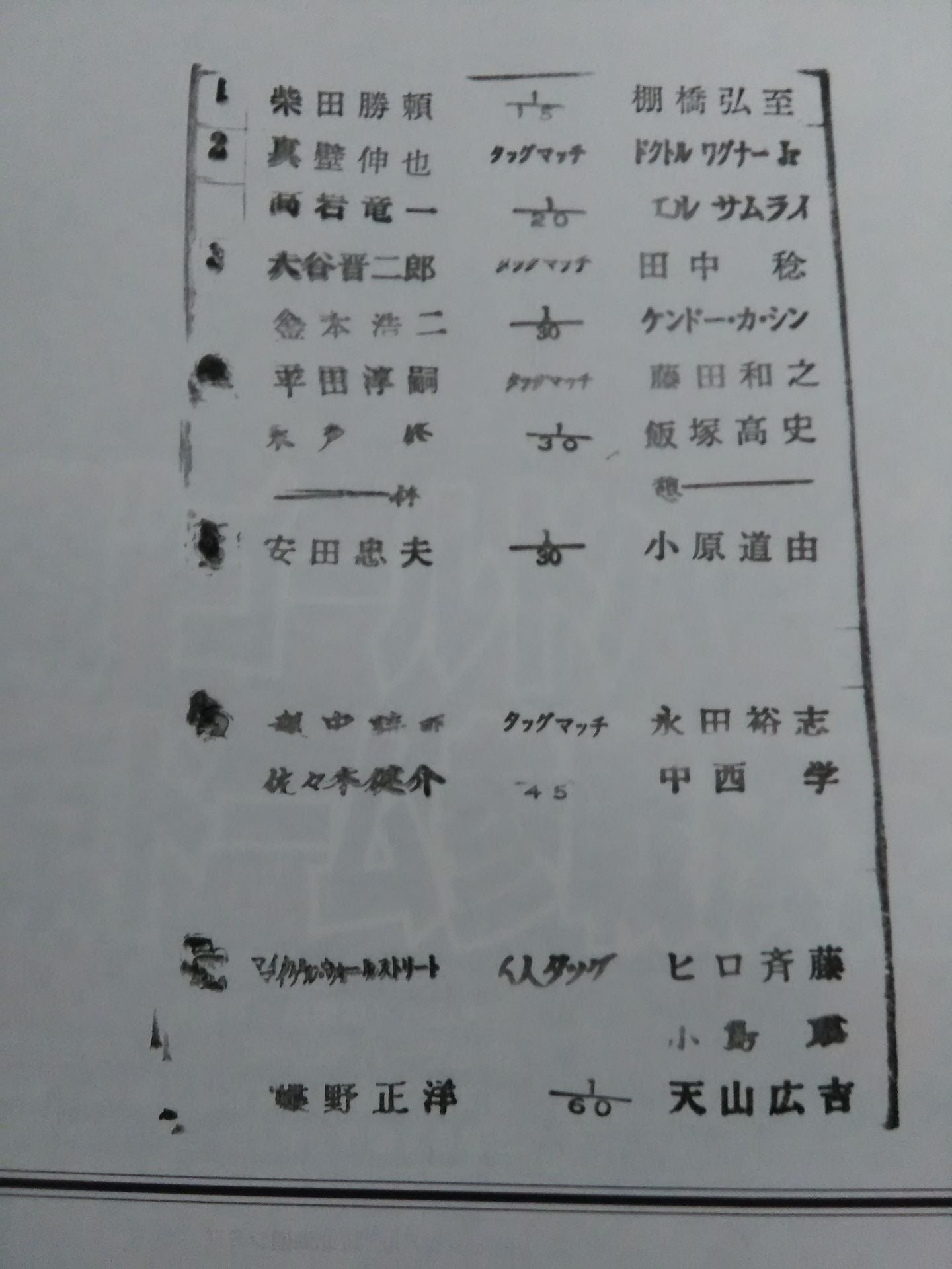 1999 Venue: Utsunomiya City Gymnasium, Tochigi / stamped with list of matches : Masahiro Chono& Blank (Super J) & Michael Wohlstreet vs Hiroyoshi Tenzan & Satoshi Kojima&Hiro Saito BATTLE FINAL 1999 / Battle Final 1999 / Cover: Muto Keiji