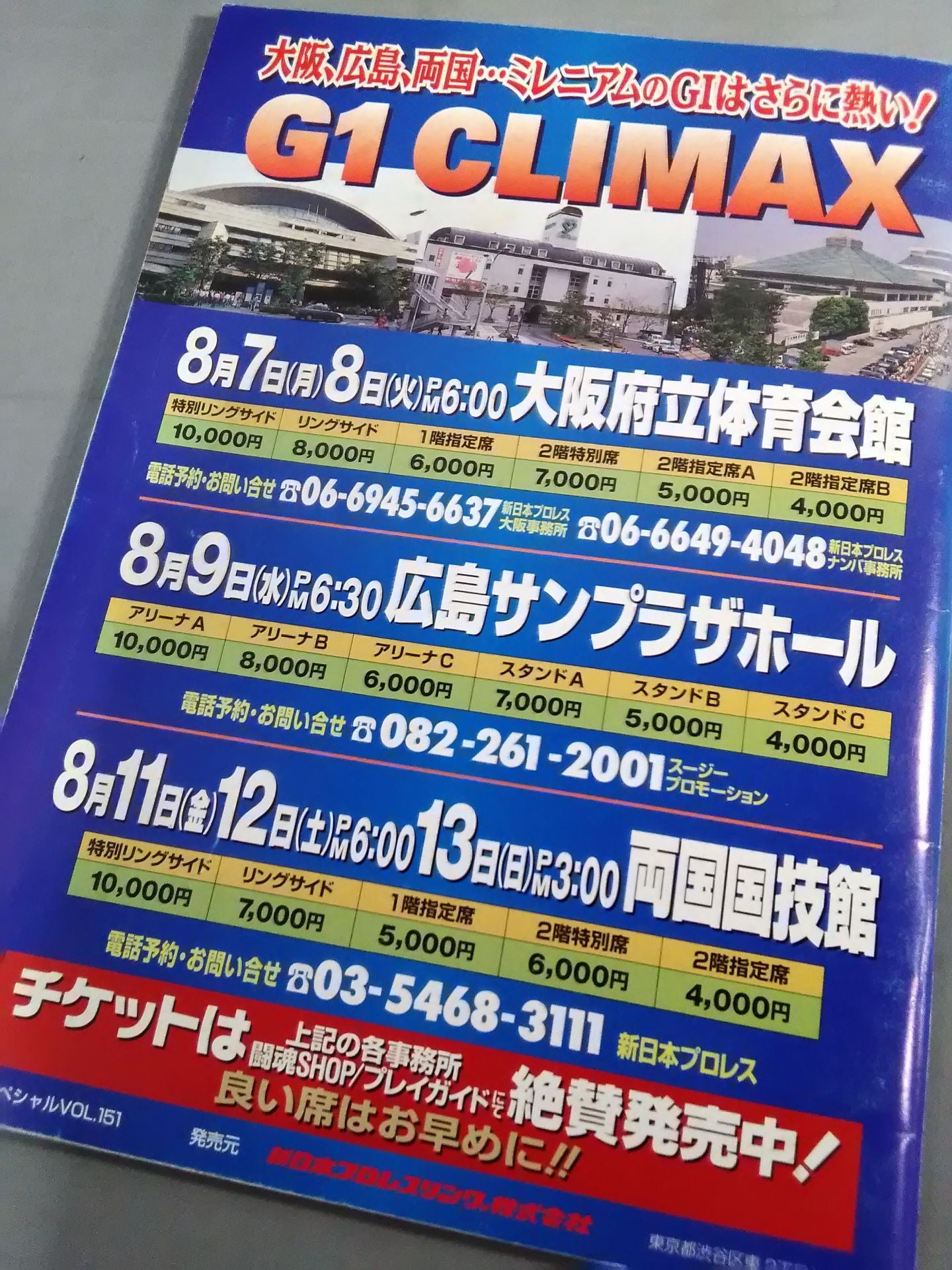 2000 Venue: Aomori Municipal Gymnasium / stamped with list of matches : Takashi Iizuka & Manabu Nakanishi & Yuji Nagata vs Masahiro Chono & Hiroyoshi Tenzan & Satoshi Kojima / Kensuke Sasaki& Jushin Thunder Liger vs Tatsutoshi Goto & AKIRA Summer Struggle 2000