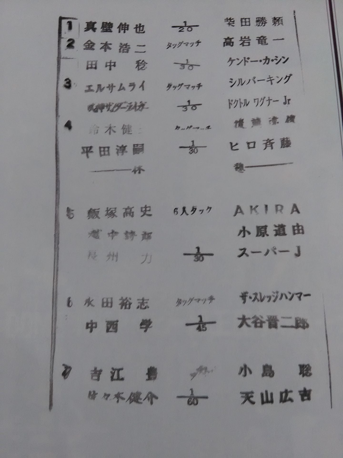 2001 Venue: Okayama Prefectural Gymnasium / stamped with list of matches : Kensuke Sasaki & Yutaka Yoshie vs Hiroyoshi Tenzan & Satoshi Kojima Fighting Spirit 2001