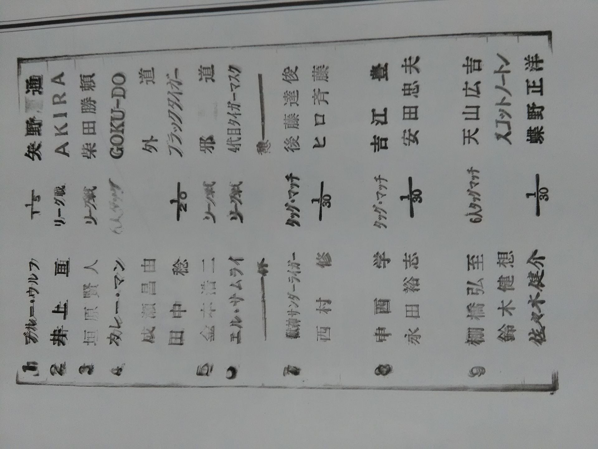 2002 Venue: Saitama / Soka City Sports and Health City Memorial Gymnasium / stamped with list of matches : Kensuke Sasaki& Kensou Suzuki & Hiroshi Tanahashi vs Masahiro Chono & Scott Norton & Hiroyoshi Tenzan / Yuji Nagata & Manabu Nakanishivs Tadao Yasuda & Yutaka Yoshie Best of the Super Junior IX.