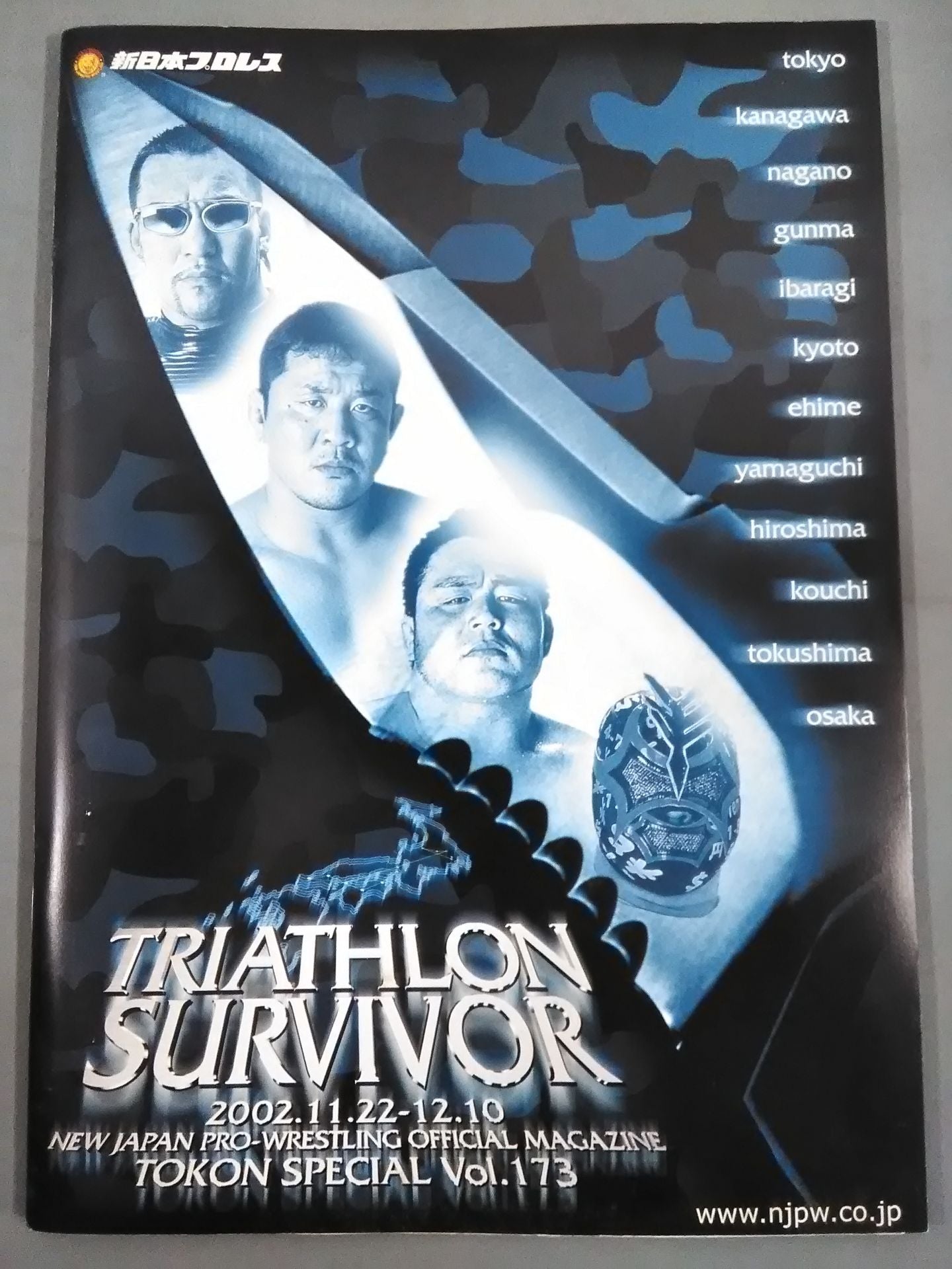 2002 Venue: Akibadai Cultural Gymnasium, Fujisawa City, Kanagawa / stamped with list of matches :【Official Match】 Tatsumi Fujinami & Masahiro Chono & Hiroyoshi Tenzanvs Tadao Yasuda & Ryushi Yanagisawa & Makai No. 1 / [Official Match] Kenso Suzuki & Hiroshi Tanahashi / Blue Wolf vs Scott Norton & Rick Steiner & Shinya Makabe Triathlon Survivor