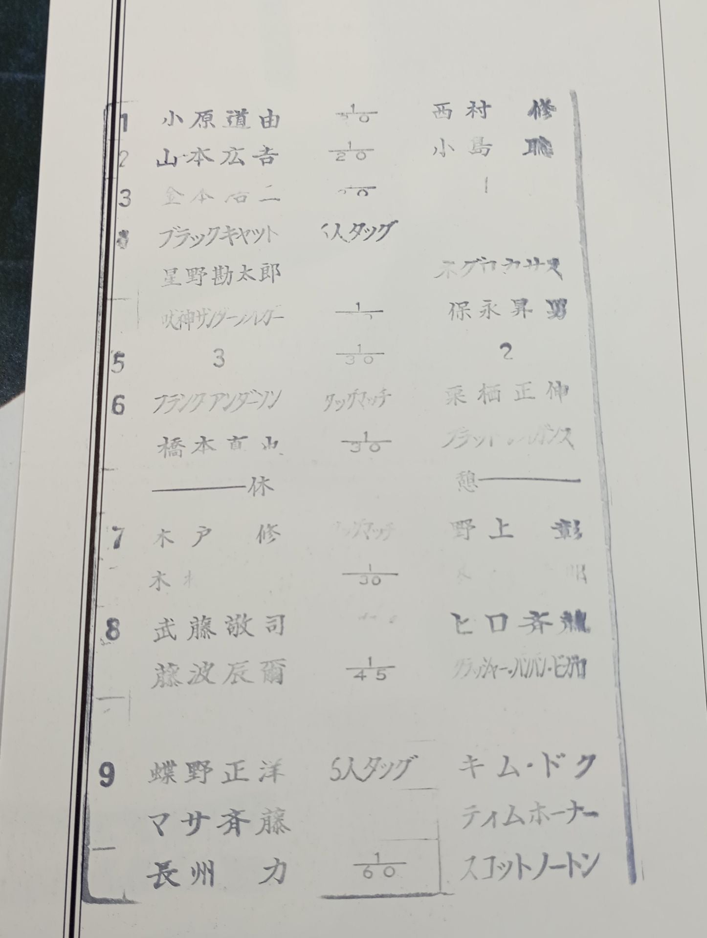 1991 Venue: Kanagawa / Kawasaki City Gymnasium / stamped with list of matches : Riki Choshu & Masa Saito & Masahiro Chono vs Scott Norton & Tim Horner & Kim Duk Battle Final 91