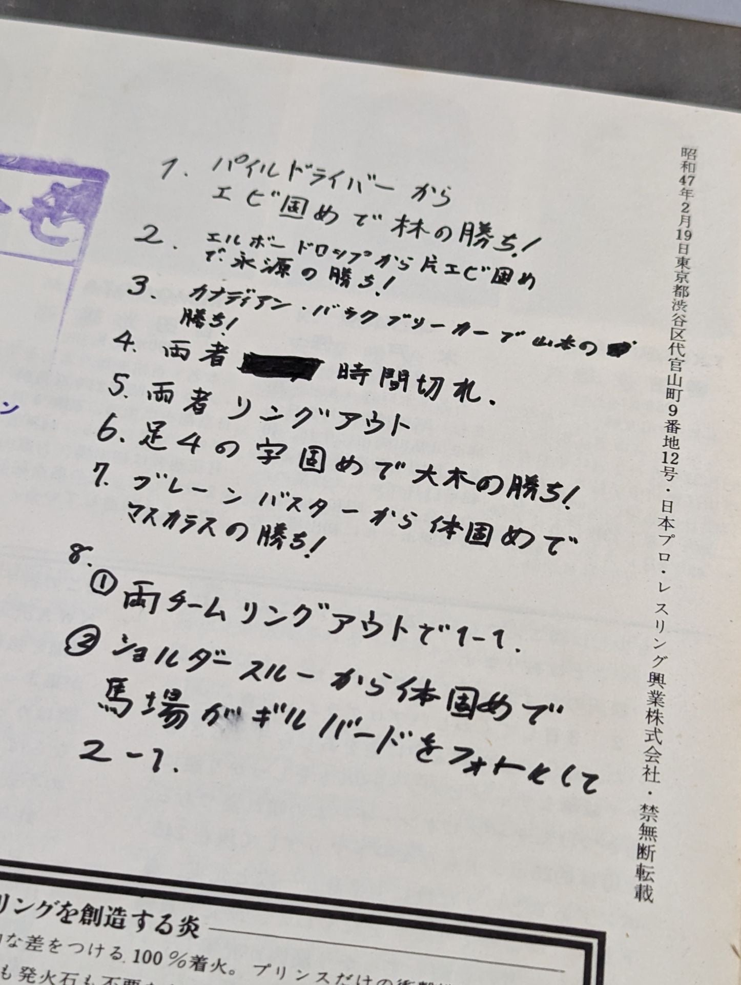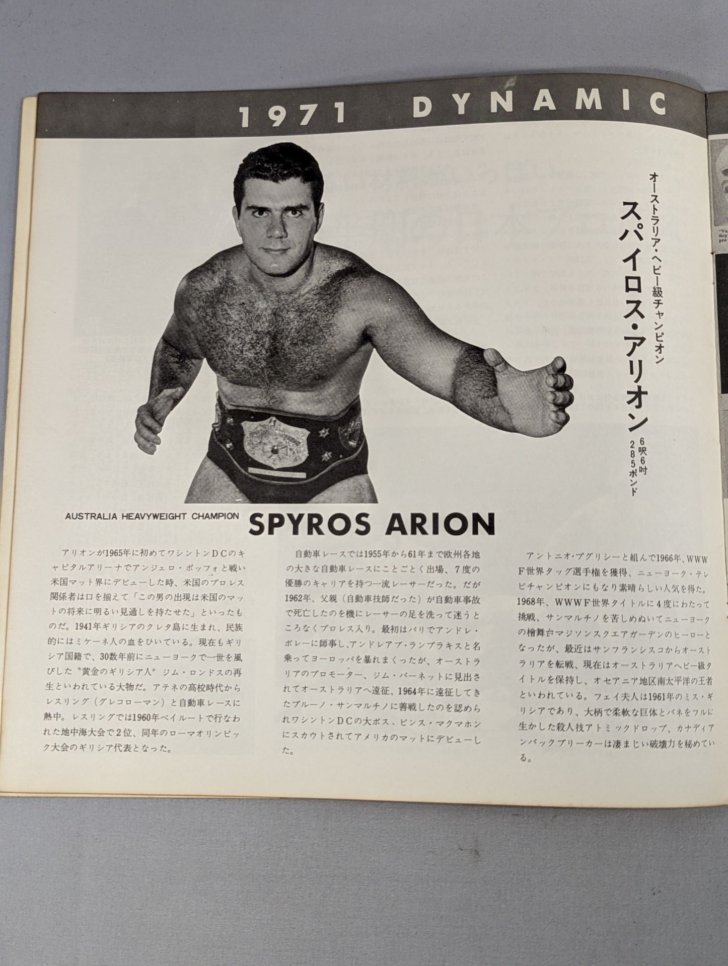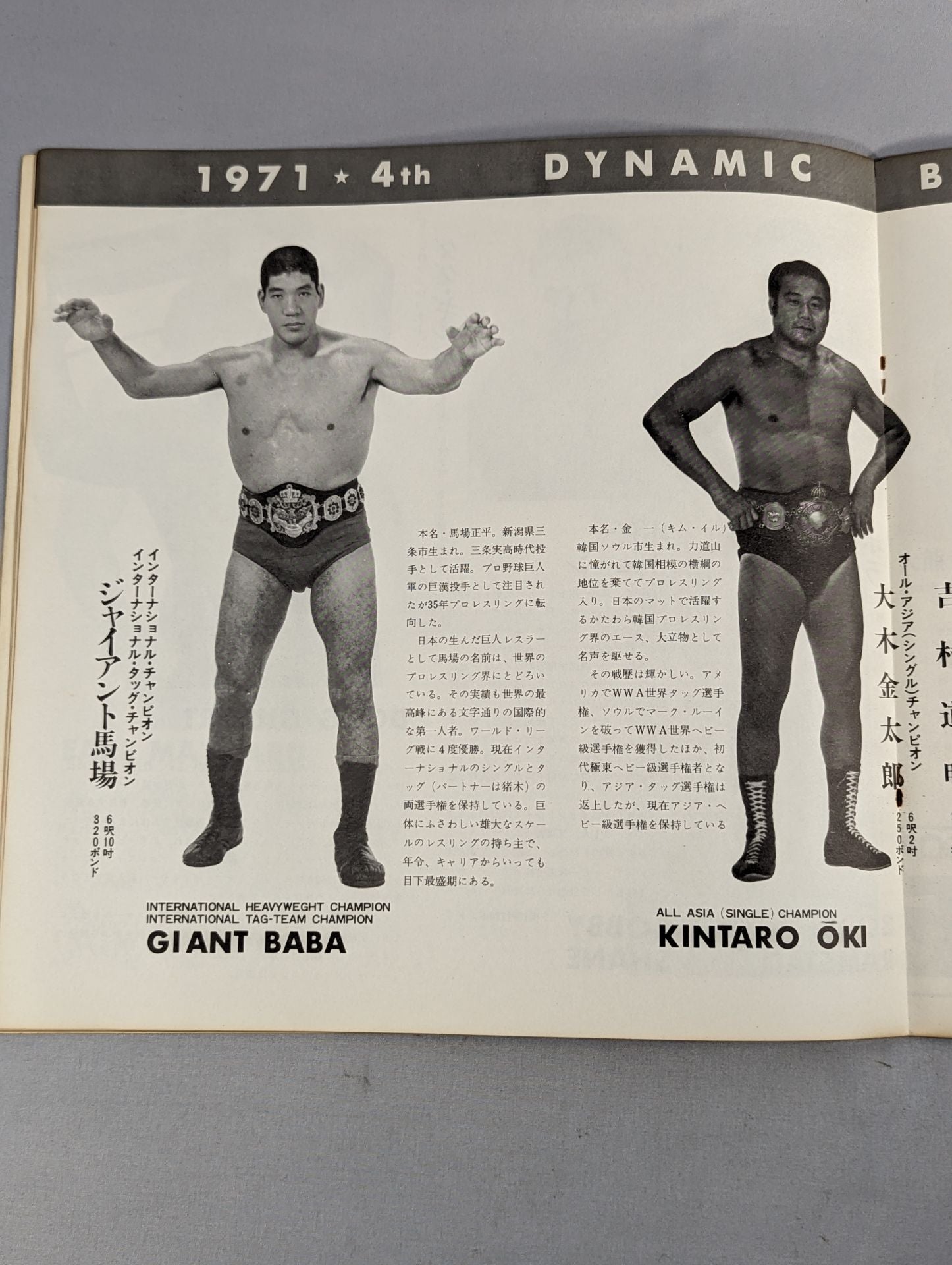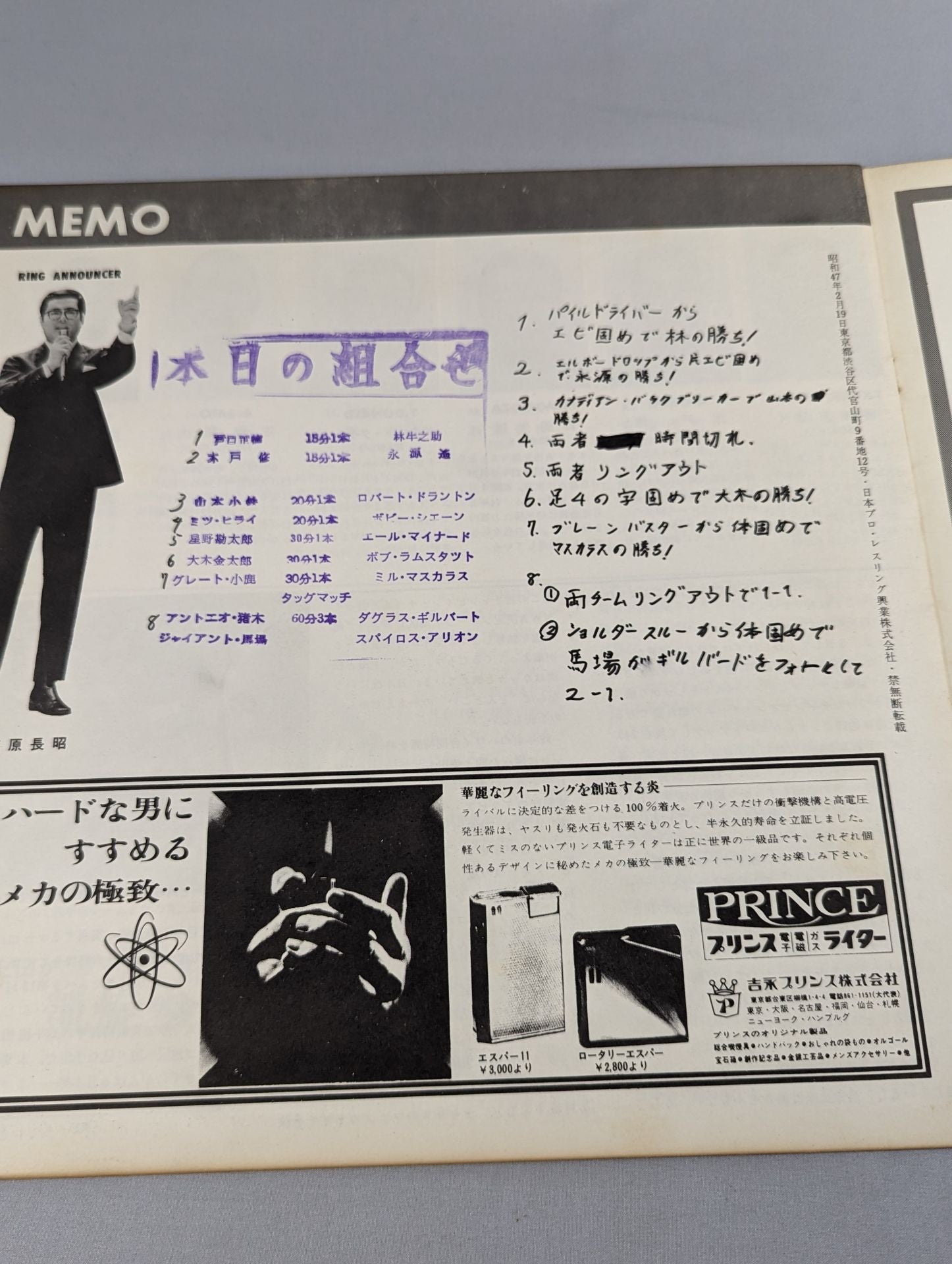1971 Venue: Korakuen Hall / stamped with list of matches : Giant Baba & AntonioInoki vs Spyros Arion & Doug Gilbert (written as Douglas Gilbert) / Great Kojika vsMil Mascaras