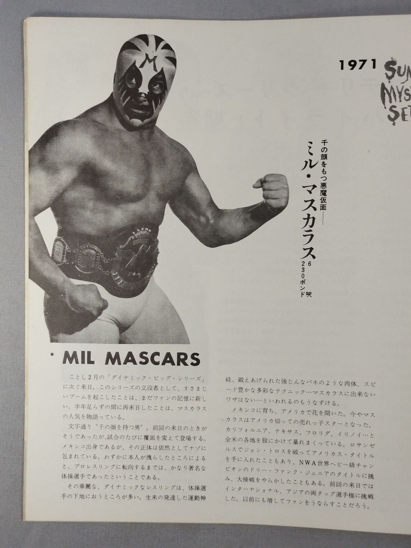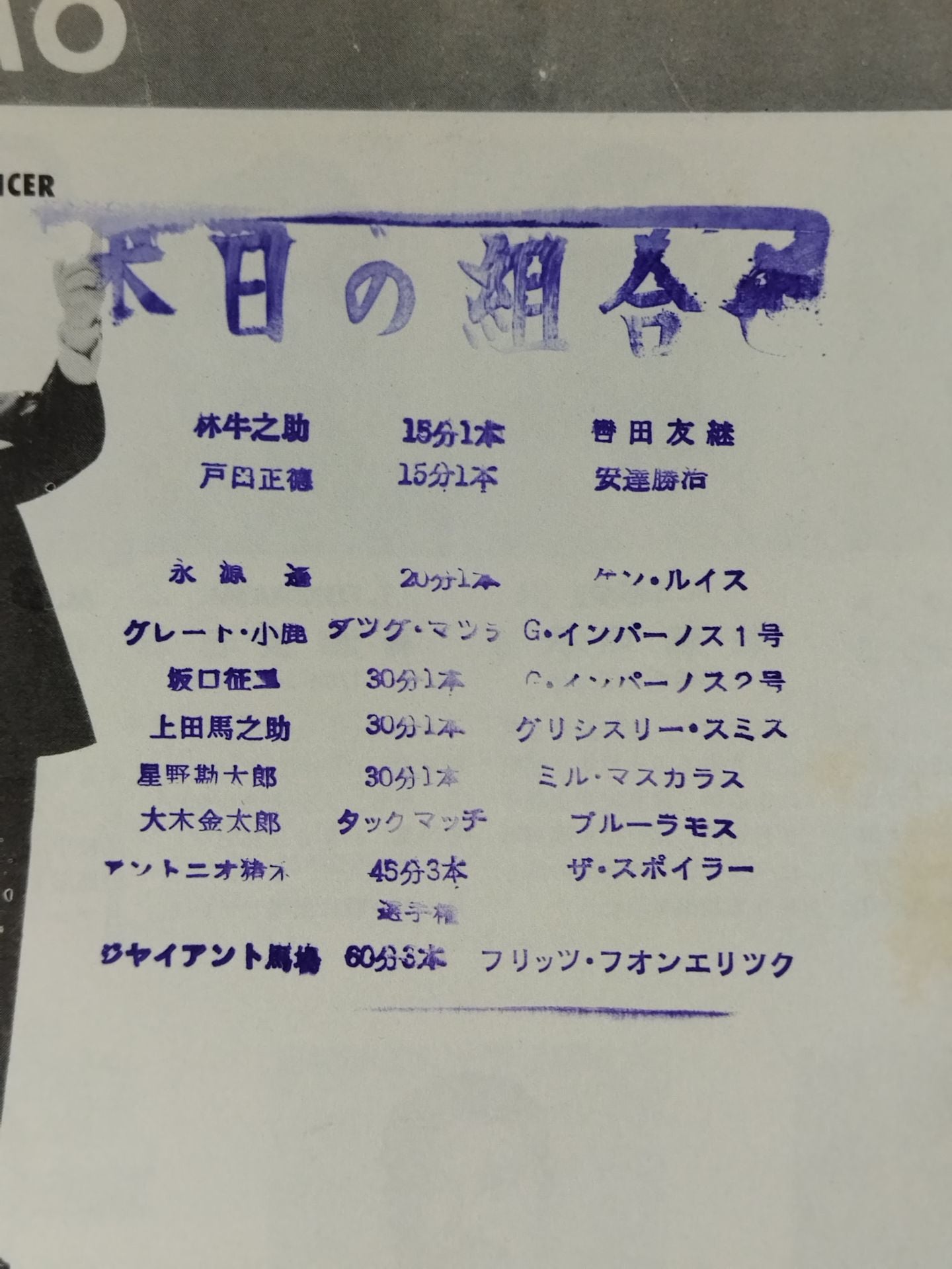 1971 Venue: Rural Coliseum / stamped with list of matches : [International] fighters Match] Giant Baba vs Fritz Von Erich Antonio Inoki & Kintaro Oki vs The Spoiler & Bull Ramos / Kantaro Hoshino vs Mil Mascaras