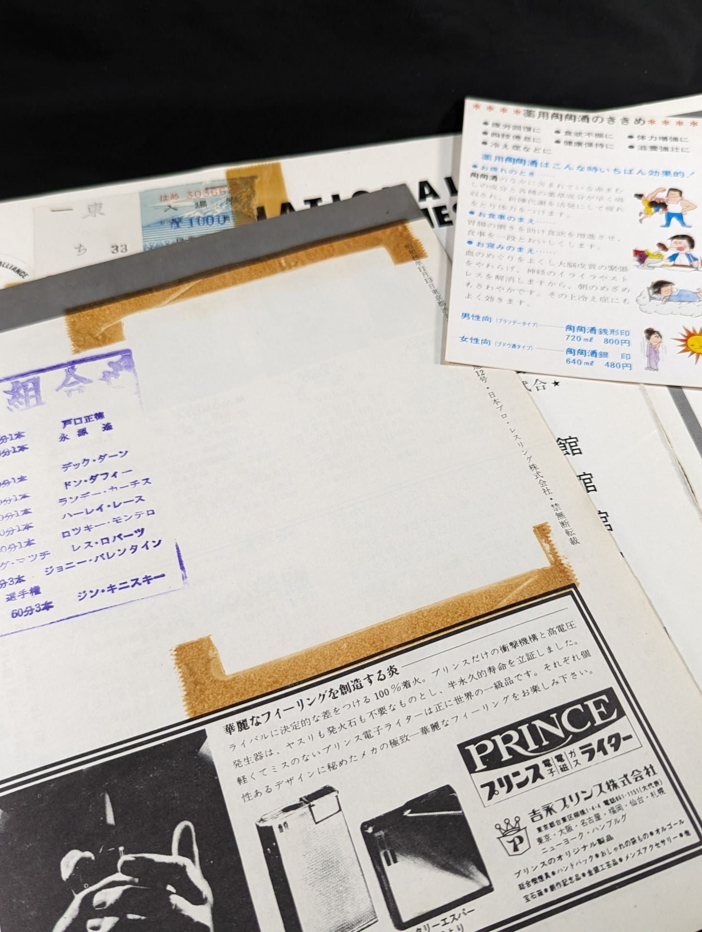 1970 Venue: Osaka Prefectural Gymnasium / stamped with list of matches : 【InternationalFighters Rights Match] Giant Baba vs Gene Kiniski / Kintaro Oki & Hiro Matsuda vs Johnny Valentine & Les Roberts / Antonio Inoki vs Rocky Montero