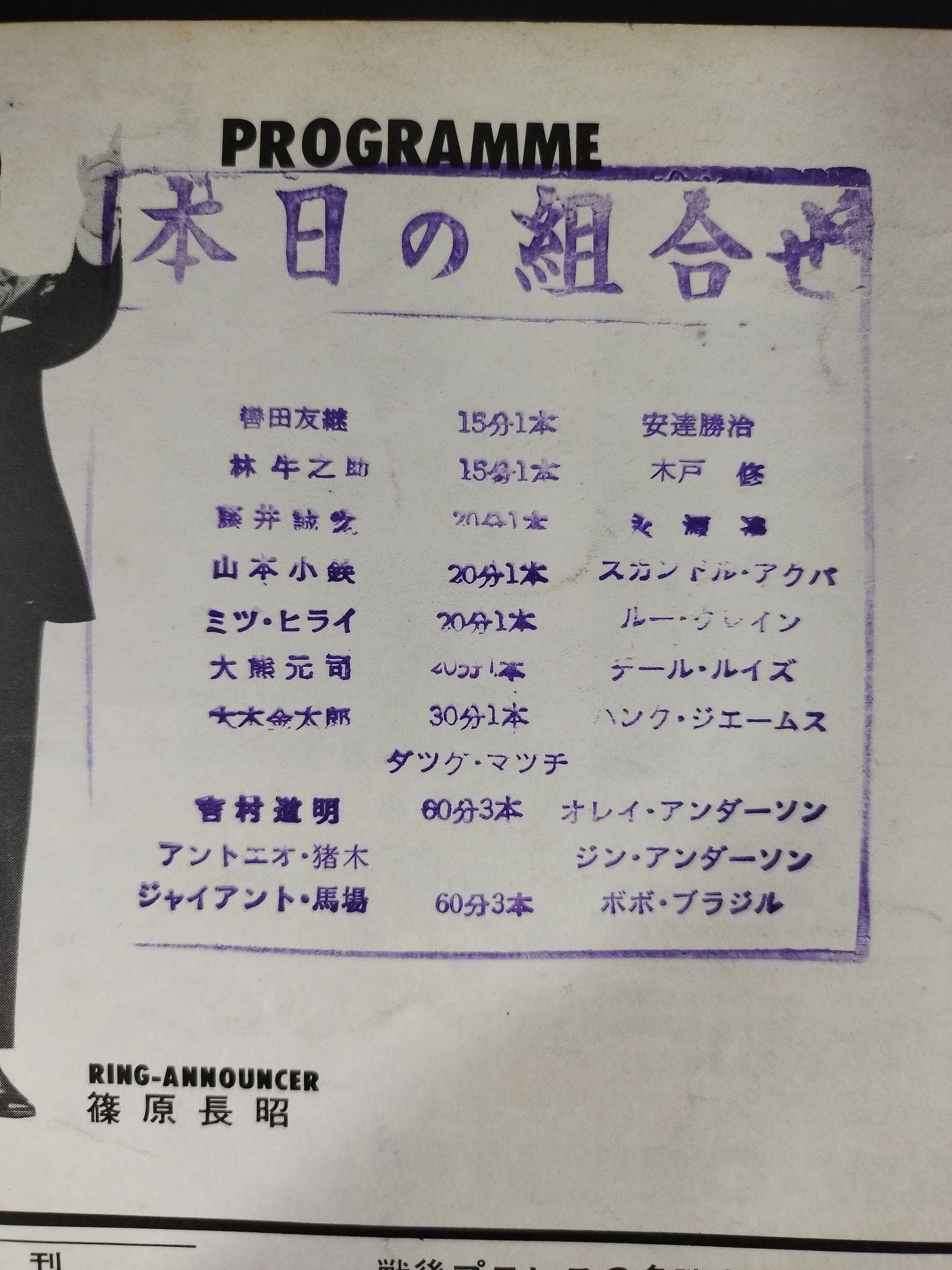 1970 Venue: Sapporo Nakajima Sports Center, Hokkaido / [International Fighters ] Giant Baba vs Bobo Brazil / Michiaki Yoshimura & AntonioInoki vs Ole Anderson & Gene Anderson