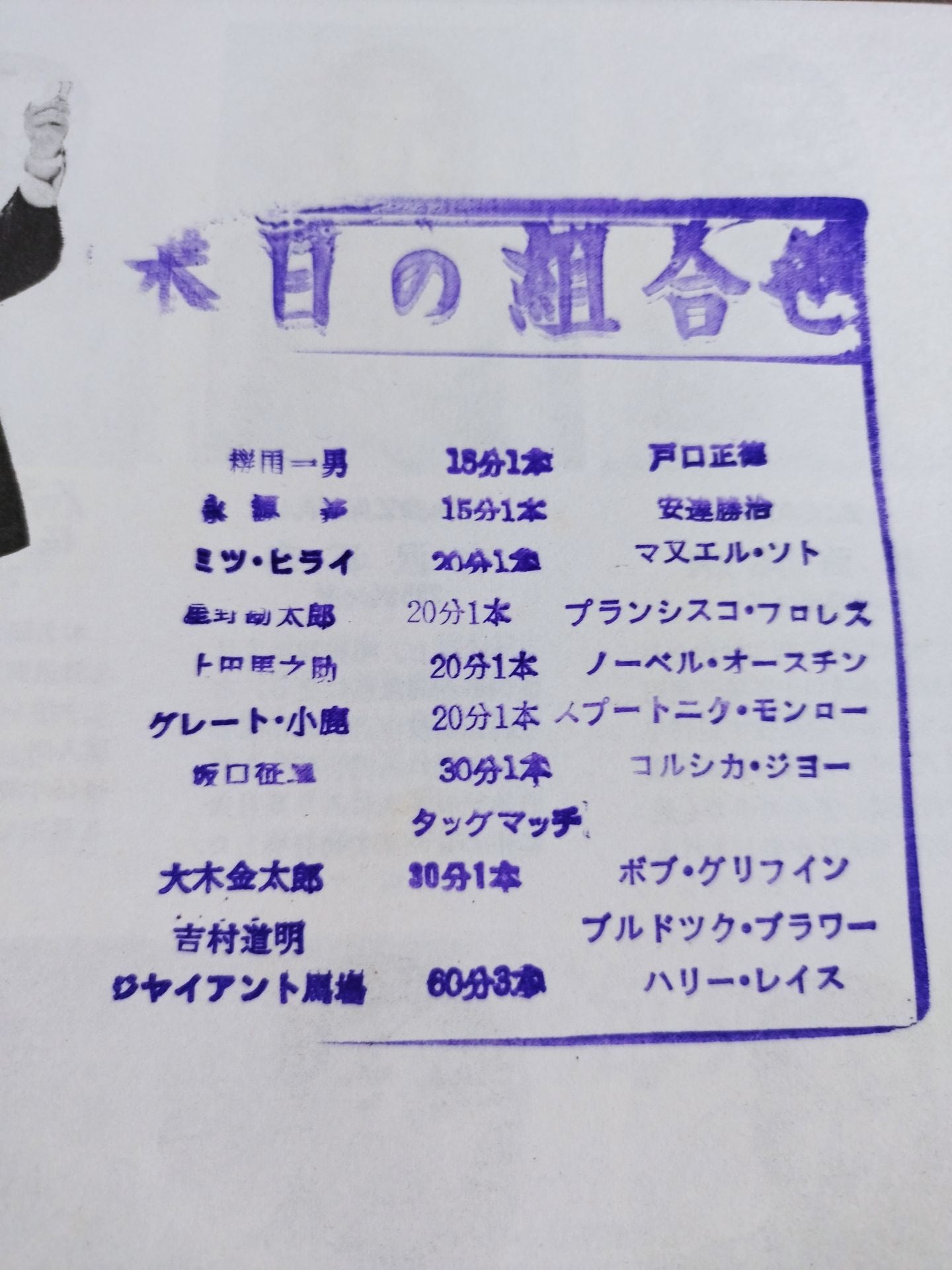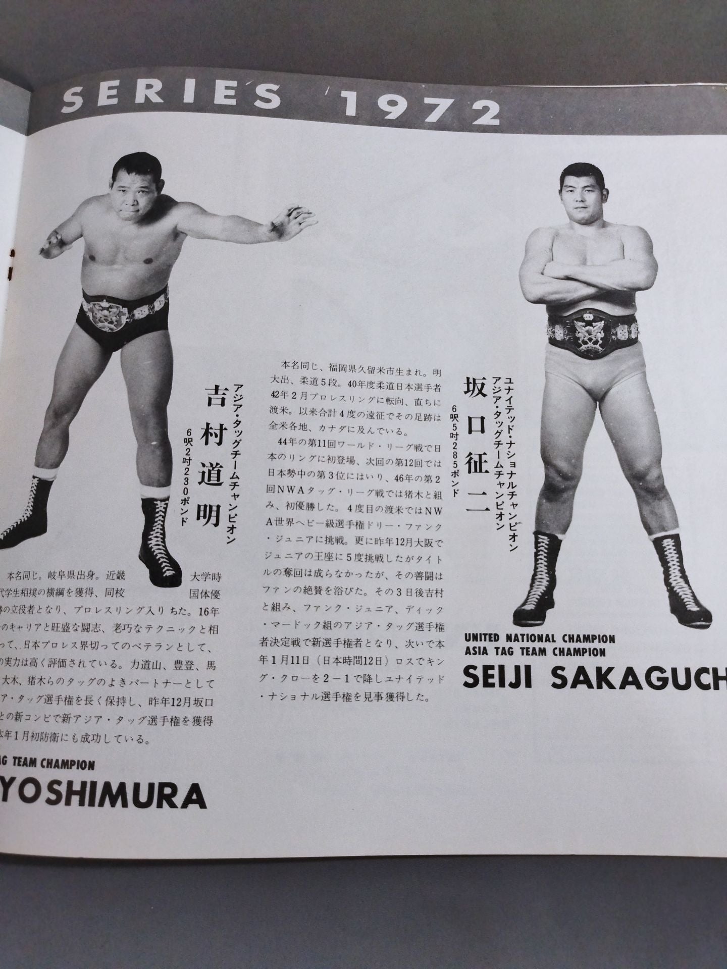 1972 Venue: Korakuen Hall (season opener) / Stamped with list of matches : Giant Baba vs Harley Race / Michiaki Yoshimura & Kintaro Oki vs Bulldog Brower & Bob Griffin