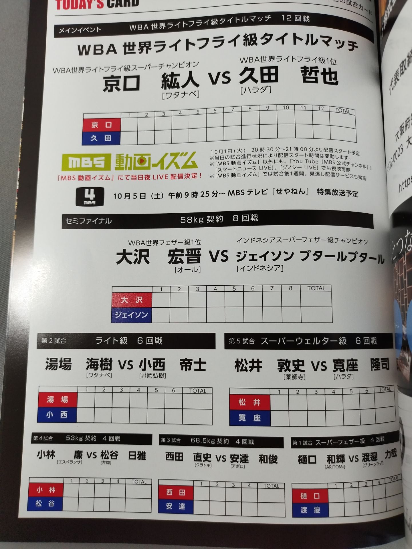 2019 List of the matches is printed :【WBA World Light Flyweight Title Match】Hiroto Kyoguchi vs Tetsuya Hisada / A4 Size Osaka Prefectural Gymnasium