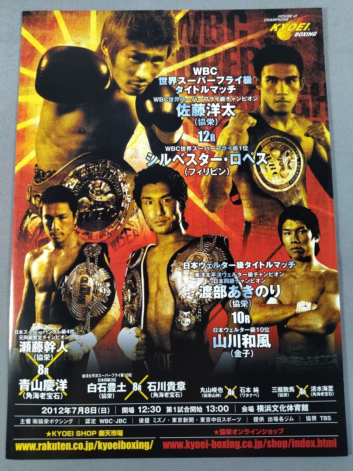 2012 List of the matches is printed : [WBC World Super Flyweight Title Match] Yota Sato vs Sylvester Lopez / B5 size *1 page spread