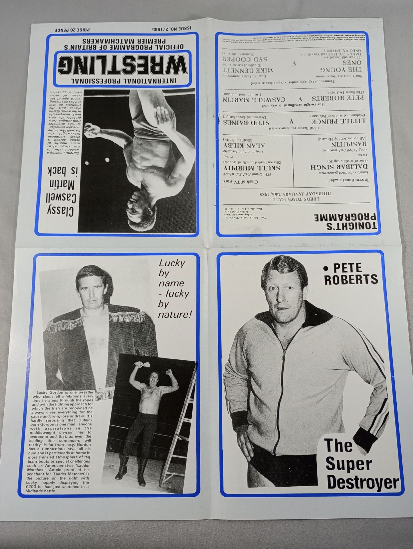 1985 Venue: Rees Town Hall, UK / Full English list of the matches is printed : Dalir Singh vs Rasputin / Skull Murphy vs Alan Kilby