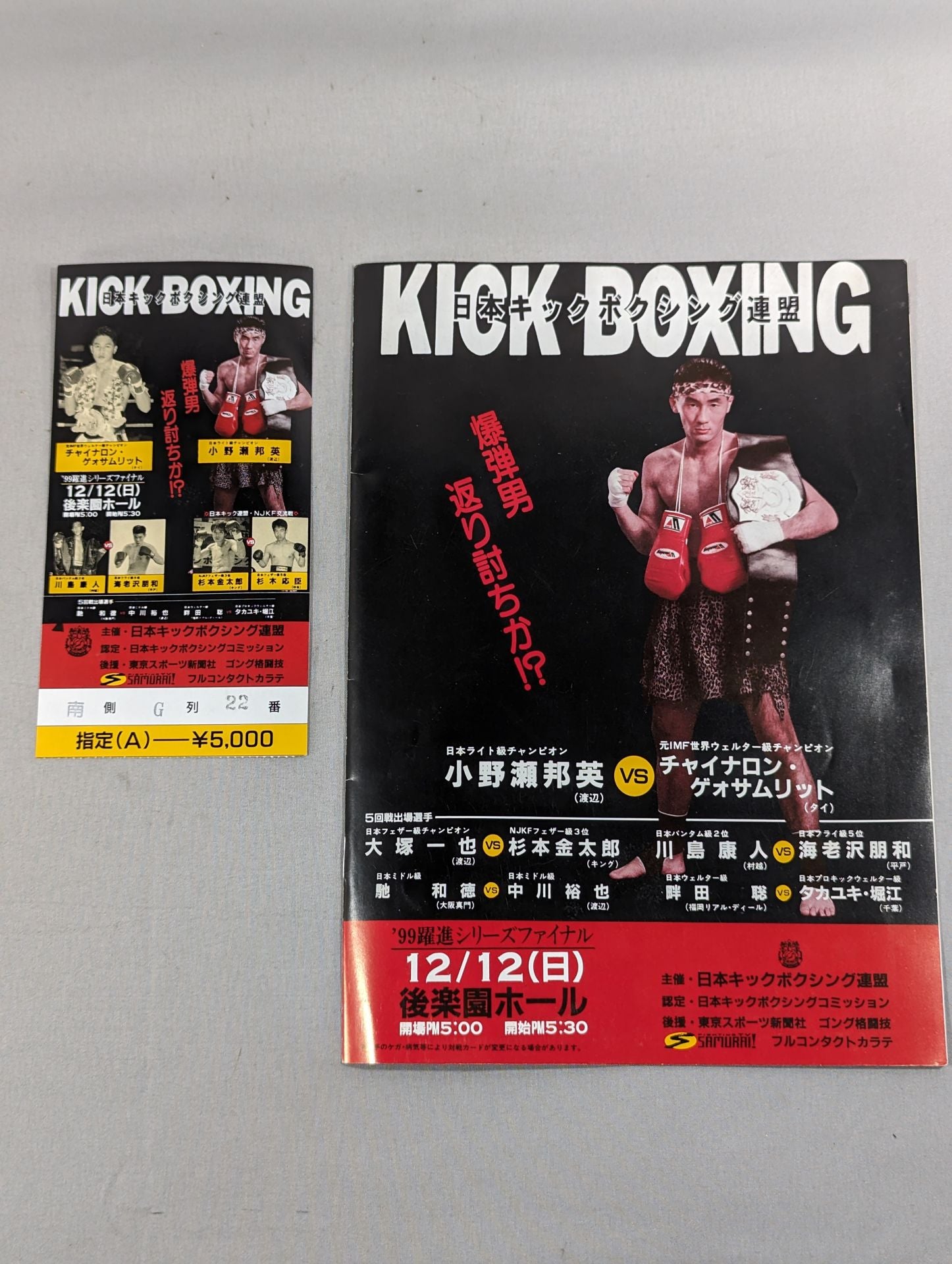 1999 Venue: Korakuen Hall / List of the matches is printed: Kunihide Onose vs Chinaron Geosamrit Japan Kickboxing Federation (NKB)