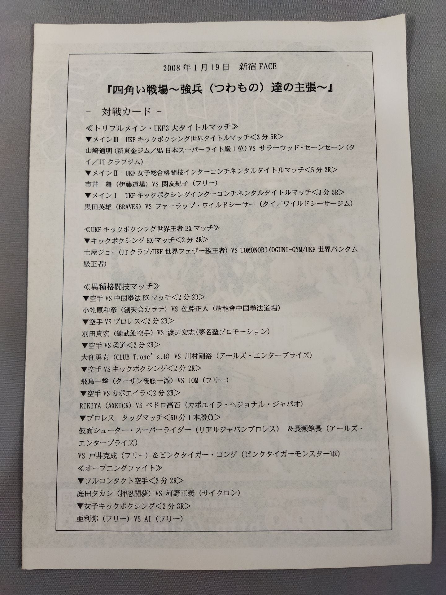 2008 List of the matches is printed : Michiaki Yamazaki vs Salawood Saeng Saeng / A4 size, 1 page spread