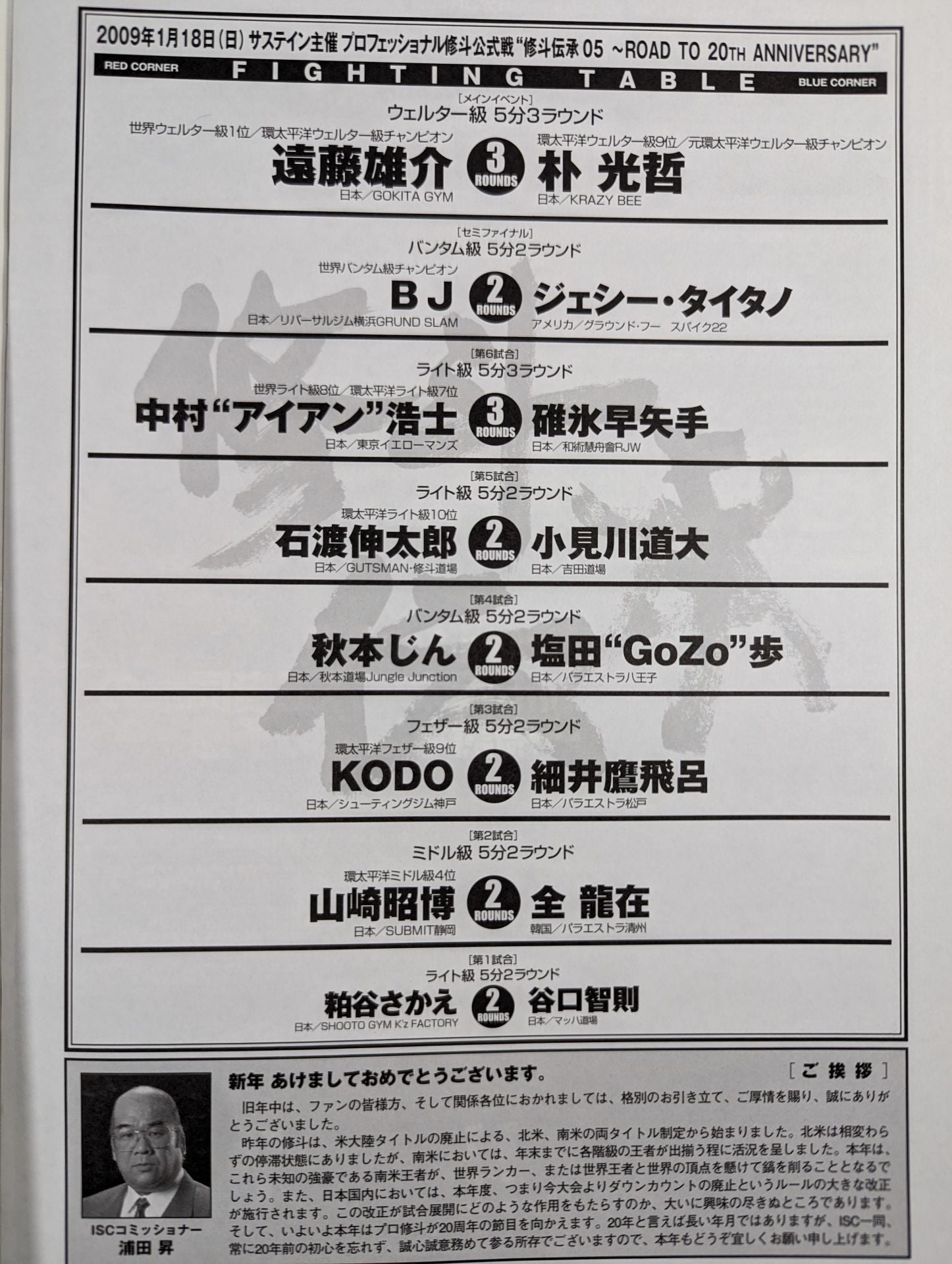 2009 Venue: Diffa Ariake / List of the matches is printed : Yusuke Endo vs Park Kwang-cheol