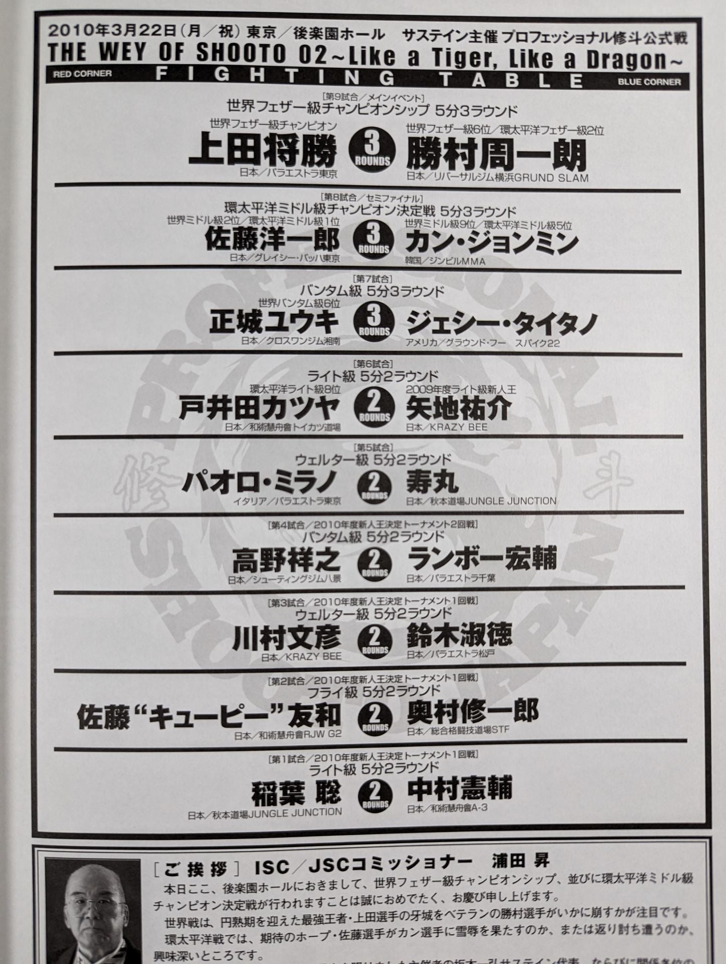 2010 Venue: Korakuen Hall / List of the matches is printed :【World Featherweight Championship】Masakatsu Ueda vs Shuichiro Katsumura