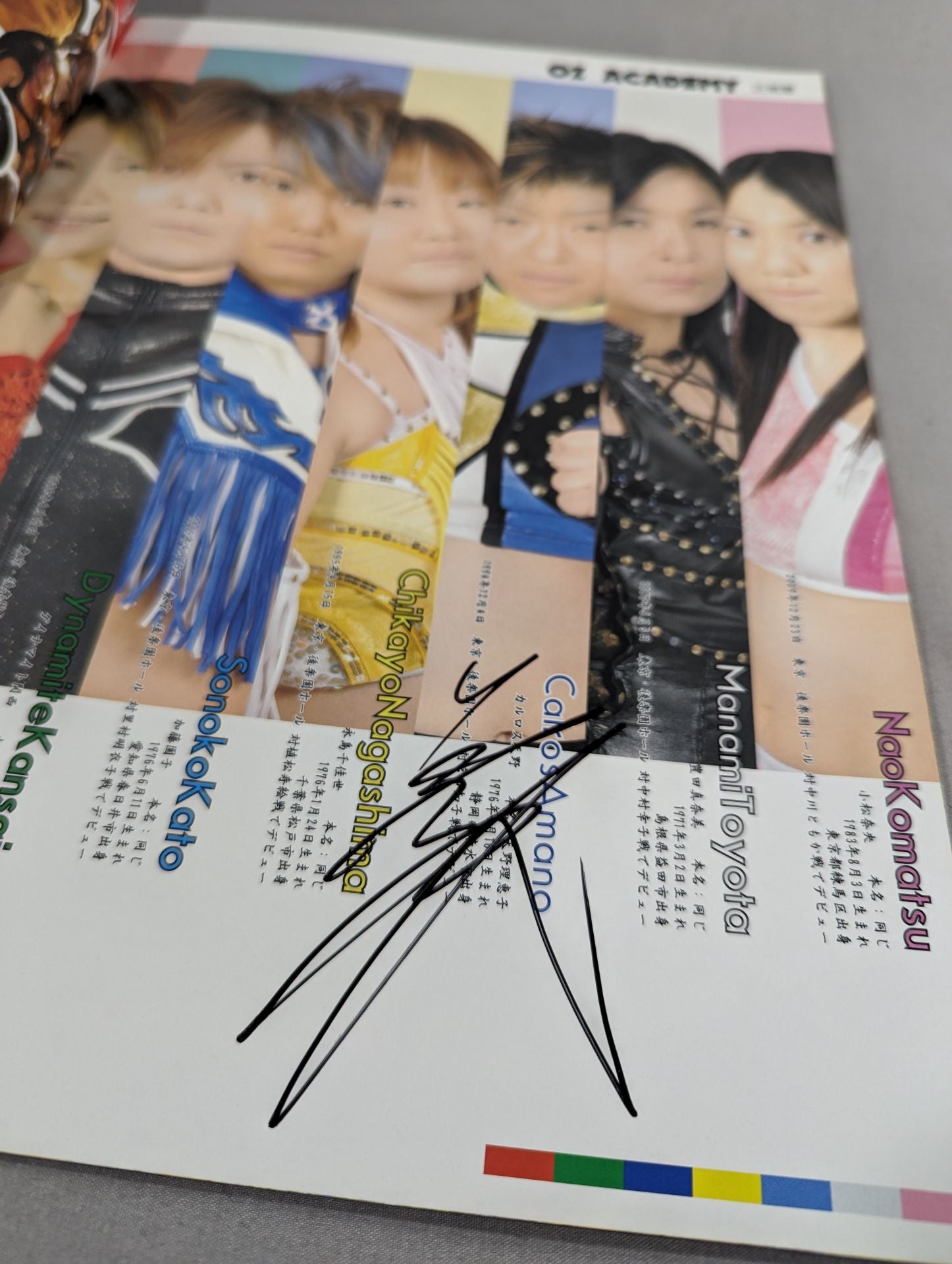 Sonoko Kato, Chikayo Nagashima More than 2 fighters hand signed autograph ! No match card notation OZ ACADEMY OFFICIAL PAMPHLET