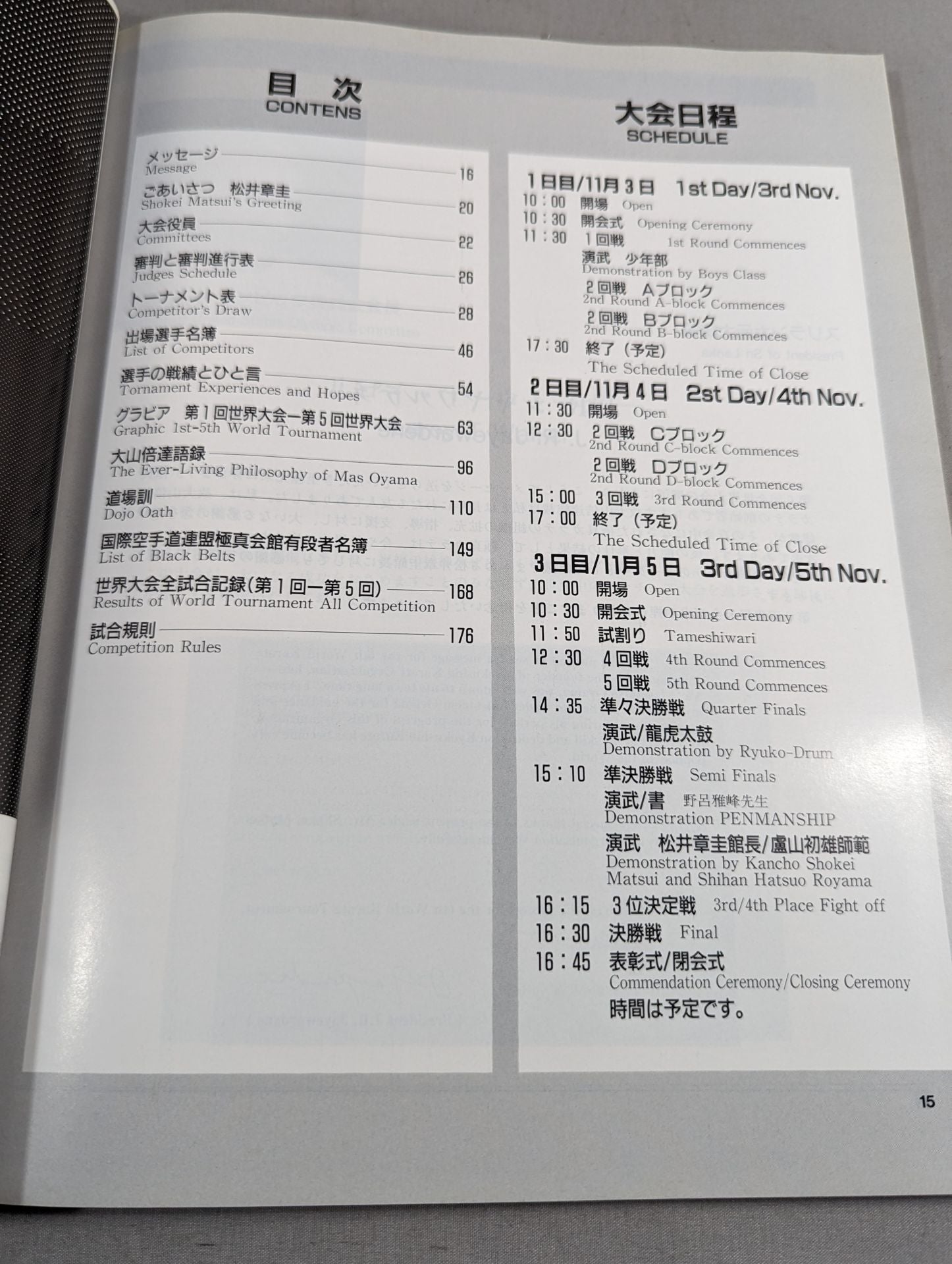 1995 Venue: Tokyo Metropolitan Gymnasium / Mark of History KARATE World Championship / Organizer: Kyokushin Kaikan / Pin-Up: Mas Oyama (Masutatsu Oyama) & Akiyoshi Matsui