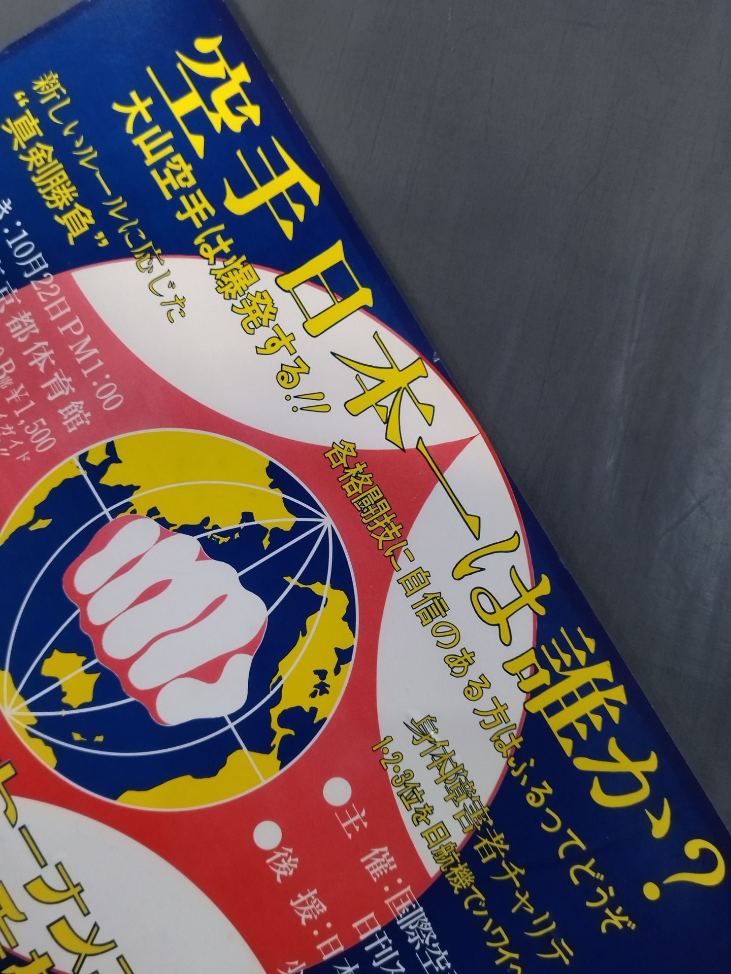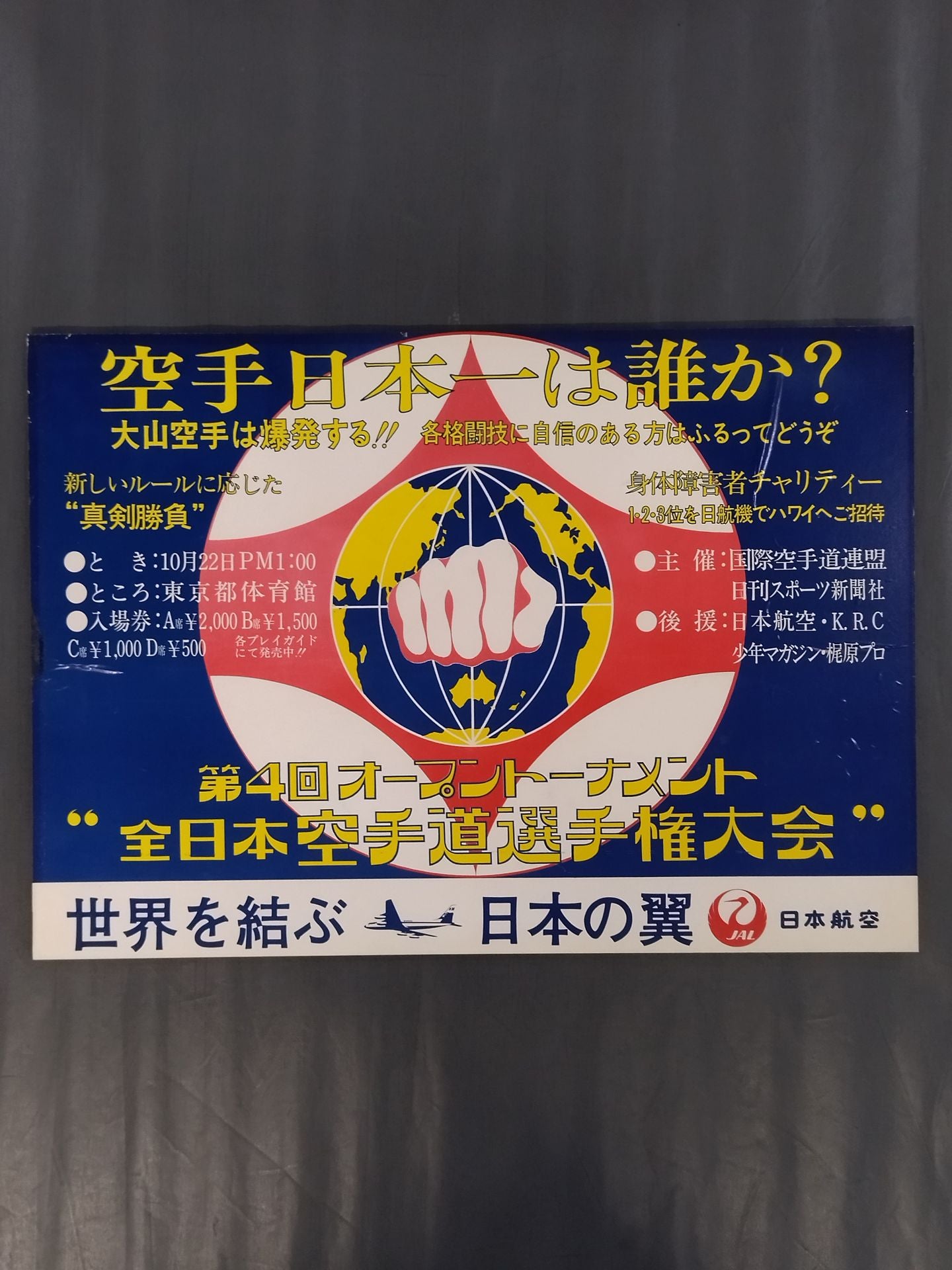 1972 Winner: Miyuki Miura Runner-up: Howard Collins 3rd place: Toshikazu Sato / Who is the best KARATE in Japan? KARATE OYAMAExplode!! If you have your own martial arts in each martial art, please shake it "Serious competition" according to the new rules 1st, 2nd, and 3rd place are invited to Hawaii by JAL Size: 52 cm × 36 cm × 1 cm (thickness) Poster panel * The poster is attached to a Styrofoam panel. kyokushin karate poster Oyama Kyokushin KARATE Mas Oyama (Masutatsu Oyama)