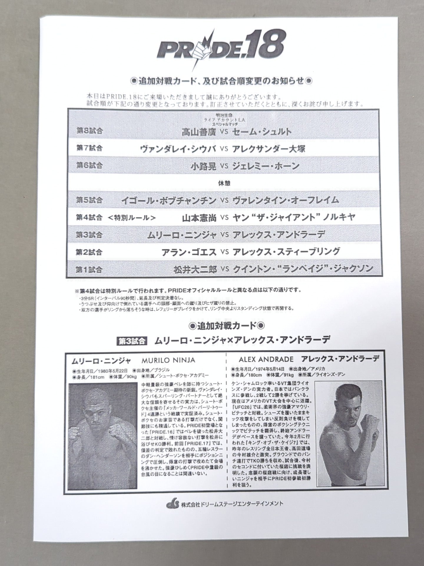 Venue: Marine Messe Fukuoka / Print & list of the matches on the separate sheet : Yoshihiro Takayama vs Sam Schult / Wanderlei Silva vs Alexander Otsuka / Akira Koji vs Jeremy Horn