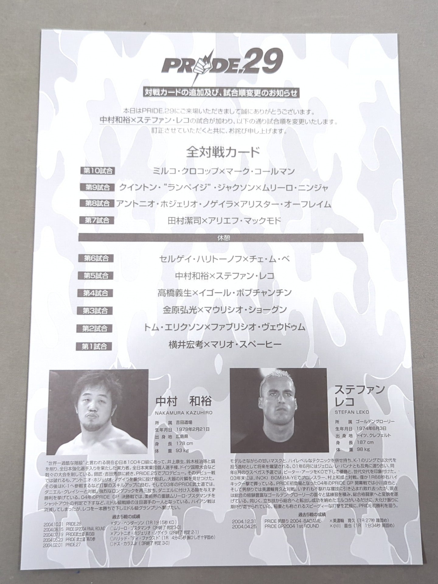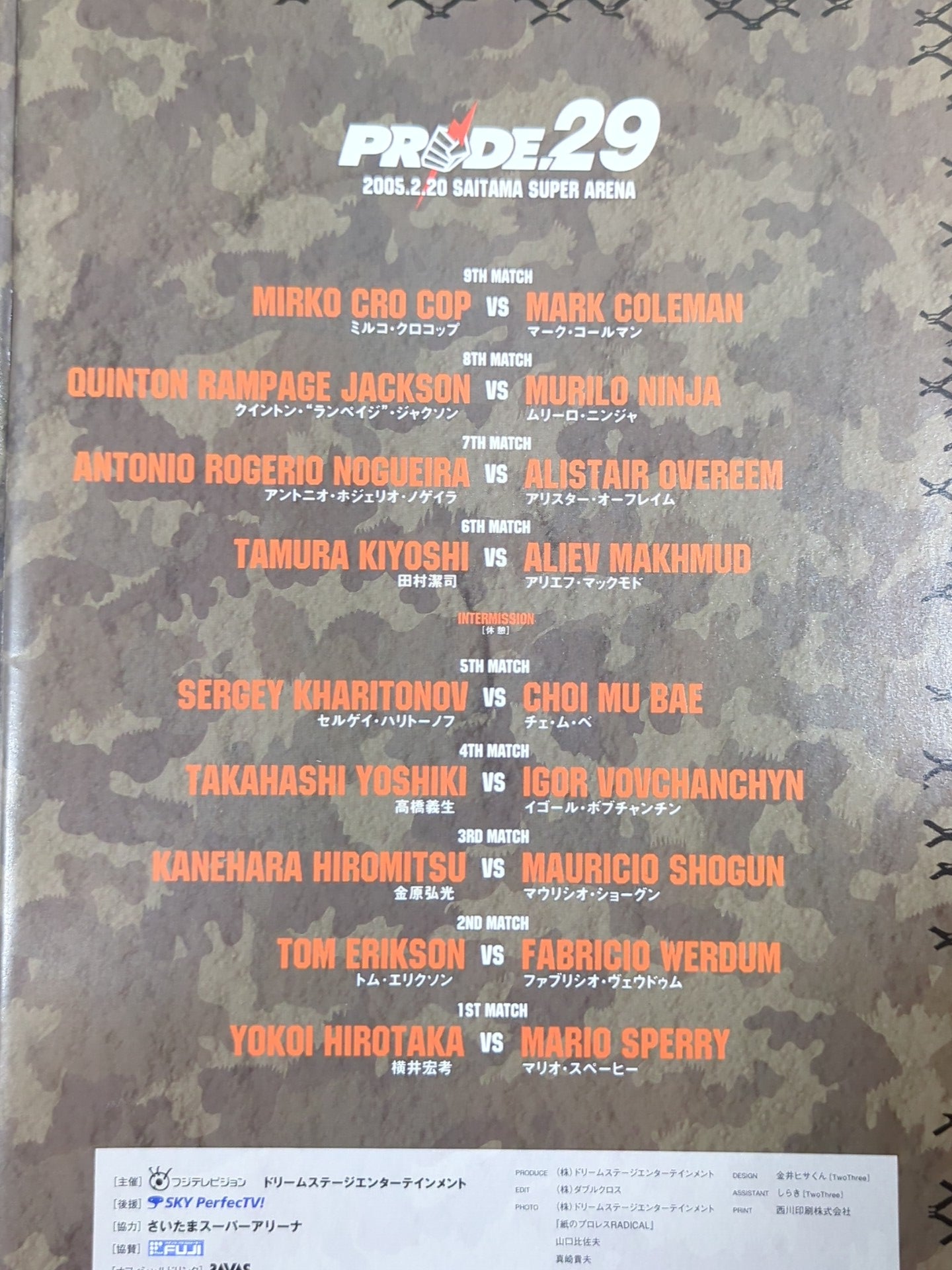 Saitama Super Arena Print & list of the matches on the separate sheet : Mirko Cro Cop vs. Mark Coleman / Quinton "Rampage" Jackson vs. Murillo Ninja / Antonio Rogerio Nogueira vs. Alistair Overeme / Kiyoji Tamura vs Alief McMod