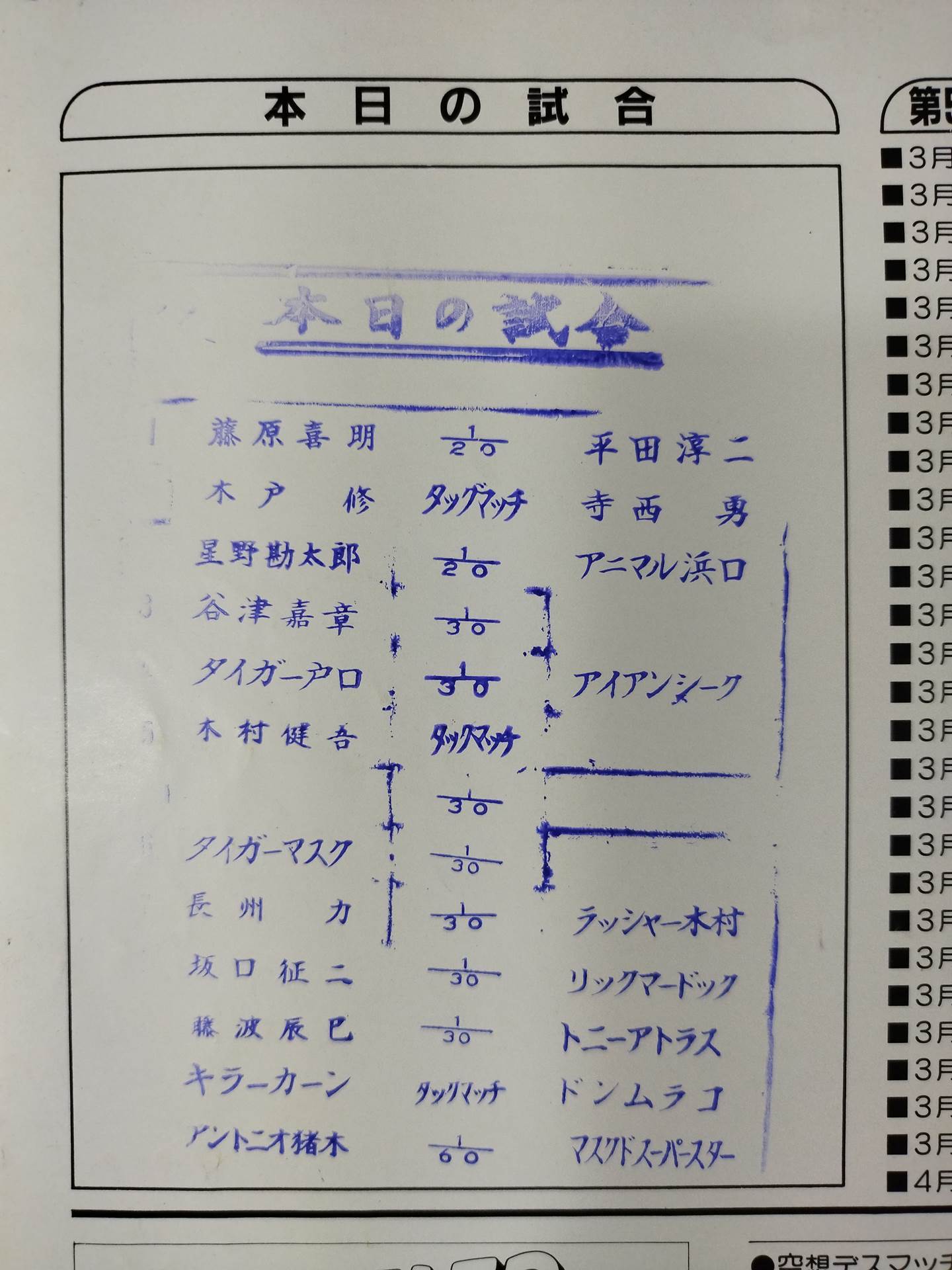 Venue: Yokohama Cultural Gymnasium / stamped with list of matches :Antonio Inoki & Killer Khan vs Masked Superstar & Don Muraco / Tatsumi Fujinami vs Tony Atlas