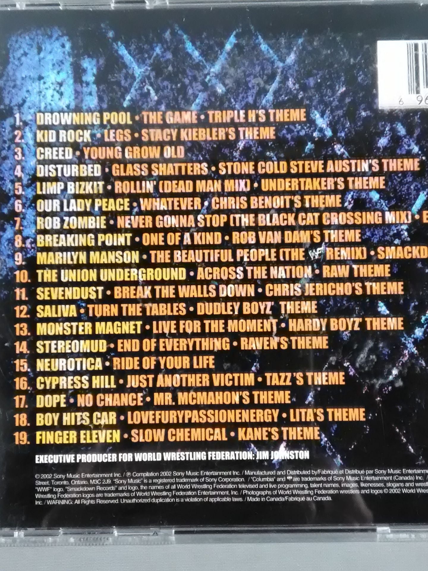 HHH/Stacey/CREED/Stone Cold/The Undertaker/Chris Benoit/EDGE /RVD/SmackDown Theme/Low Theme/Jericho/Dudley Boys/ Hardy Boys / Raven / NEUROTICA / Taz / Mr. McMahon / Rita