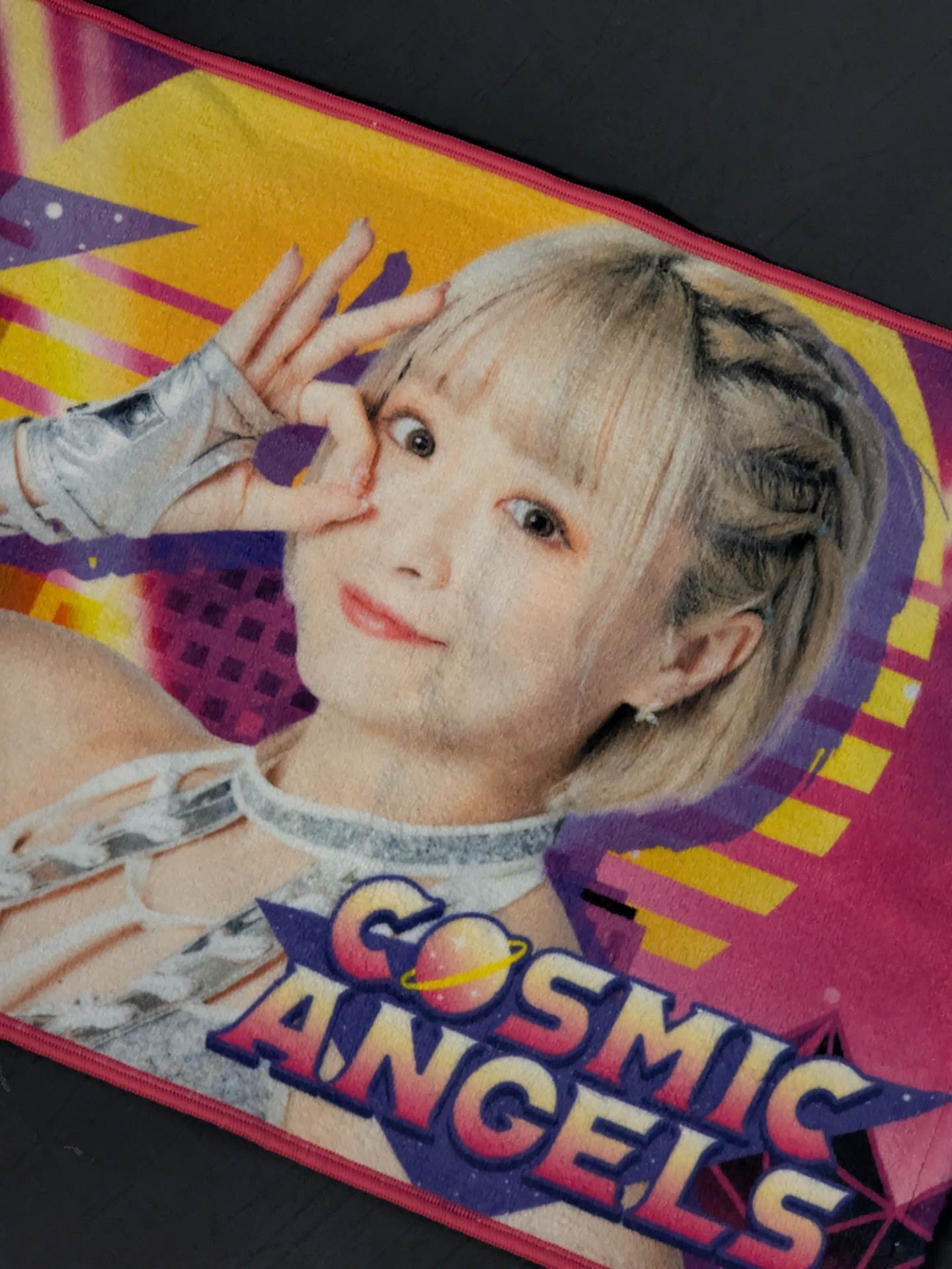2022年 ユニットを電撃移籍したなつぽい選手の応援タオル COSMIC ANGELS ver.が登場!COSMIC ANGELSらしい可愛らしいデザイン!試合会場でなつぽい選手にアピールしよう!皆様の応援が選手のチカラになります!もちろんタオルとしての機能性もバツグン♪