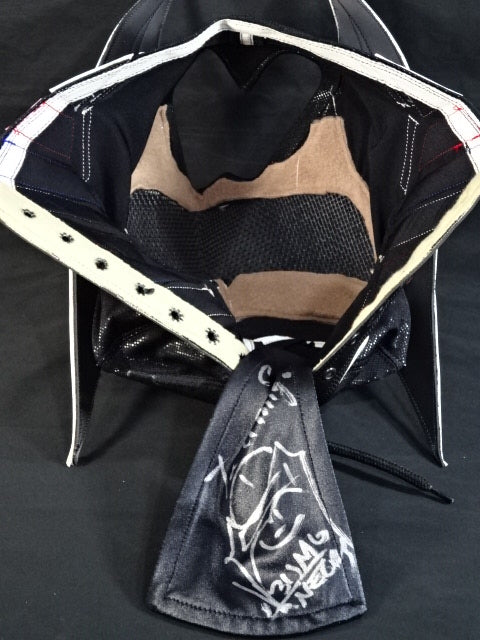 本人使用サイン入り 着用写真付 黒特殊レオタード生地 白フチ&赤フチ&青特殊フチ