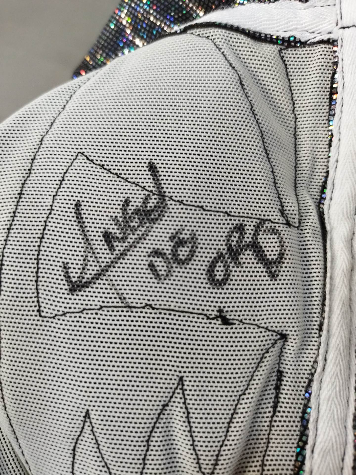 サイン入り 濃銀特殊レオタード2重生地 黒地金特殊フチ&銀特殊フチ