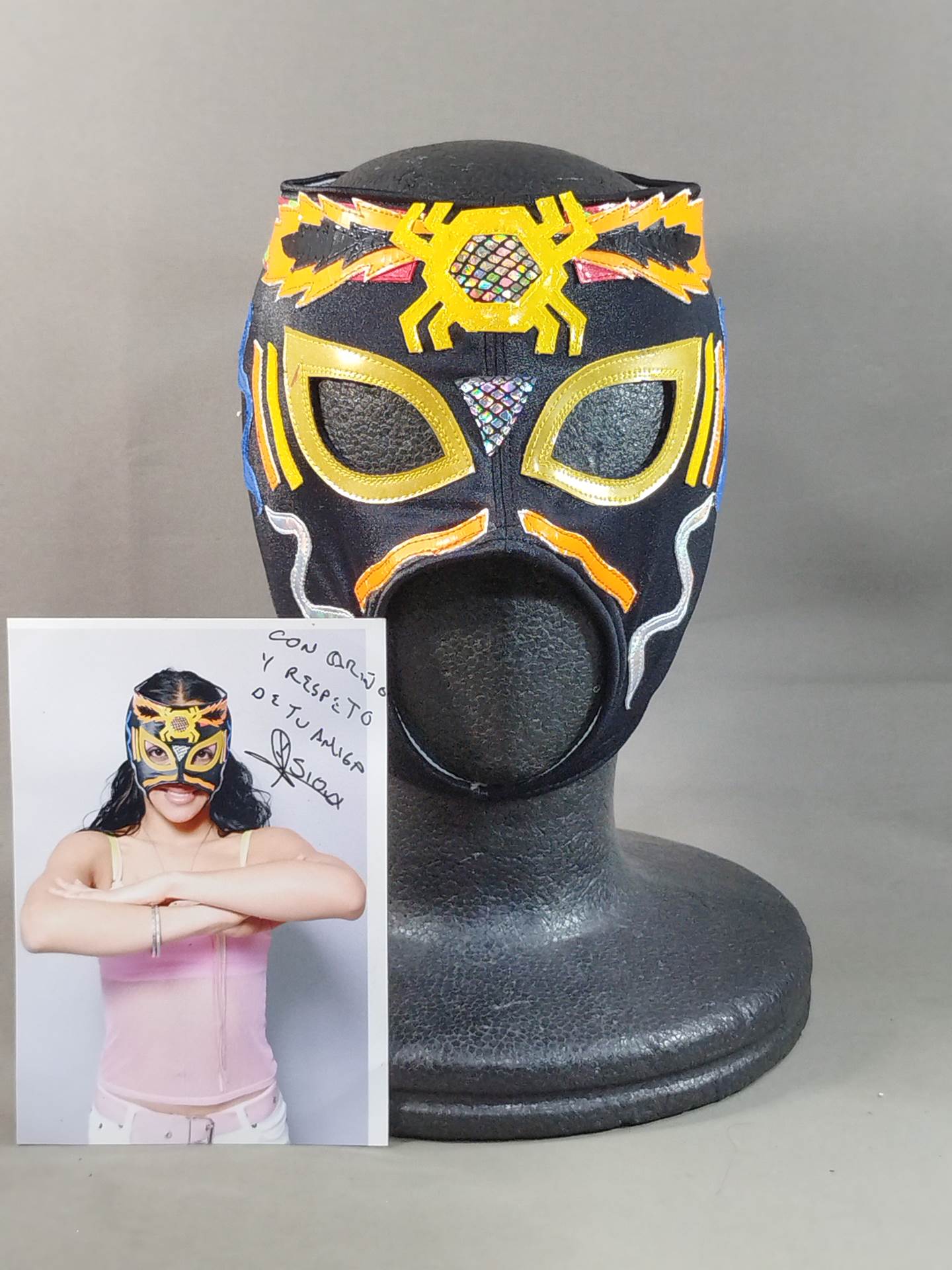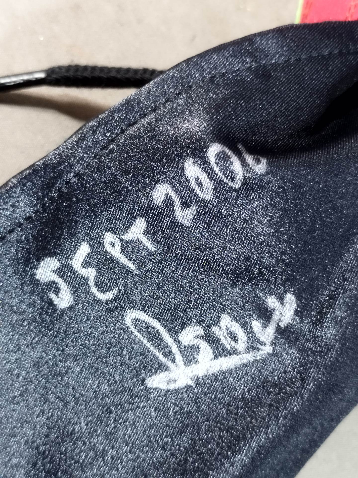 本人使用サイン入り(SEPT 2006) 着用写真付 黒レオタード2重生地 金特殊フチ&オレンジフチ&黄色特殊フチ&青特殊フチ&銀フチ&黄緑フチ