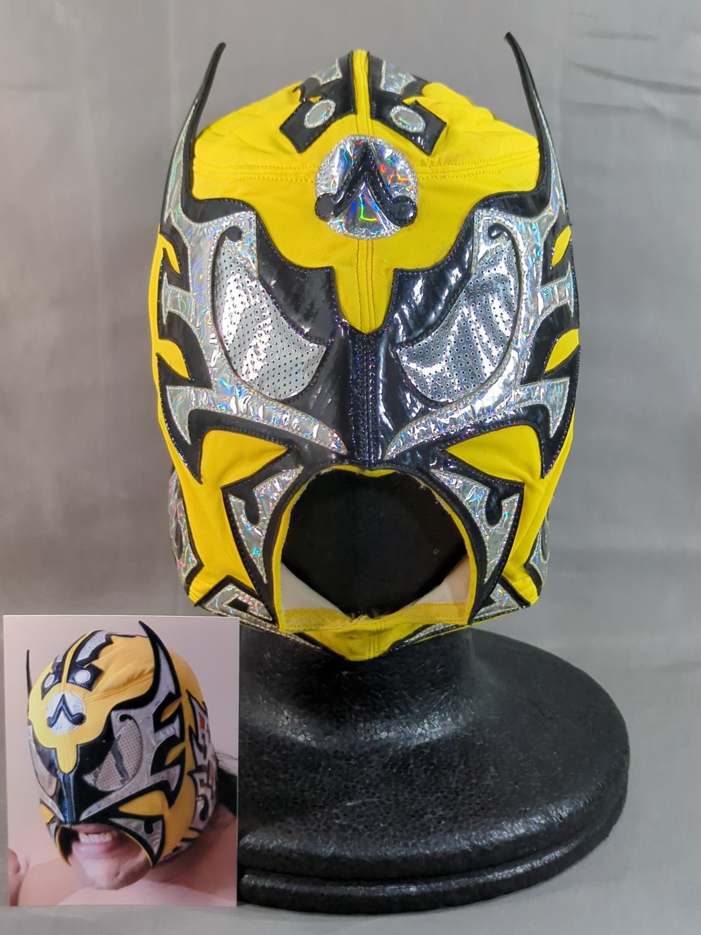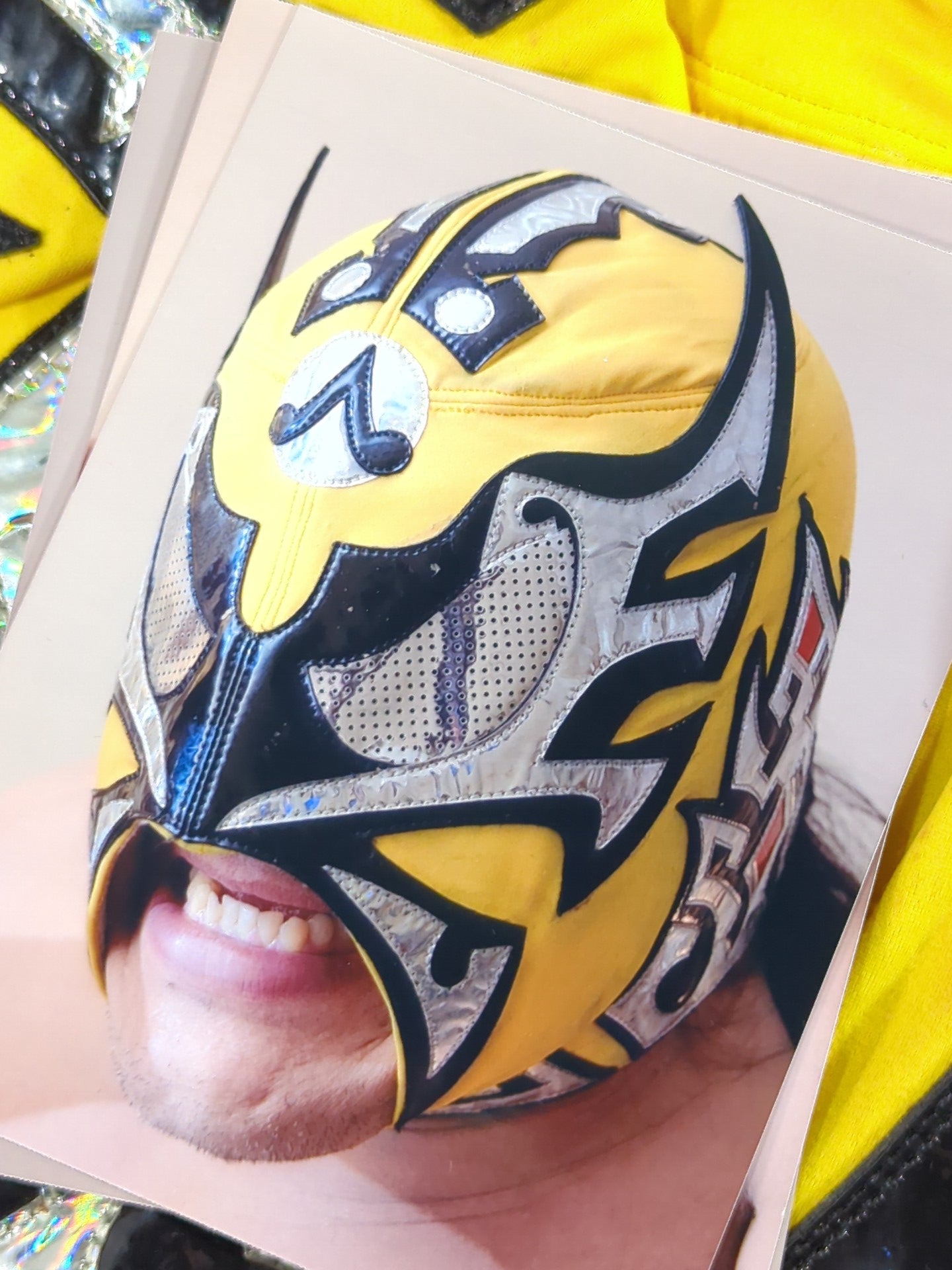サイン入り 着用写真付 黄色レオタード2重生地 黒地銀特殊フチ