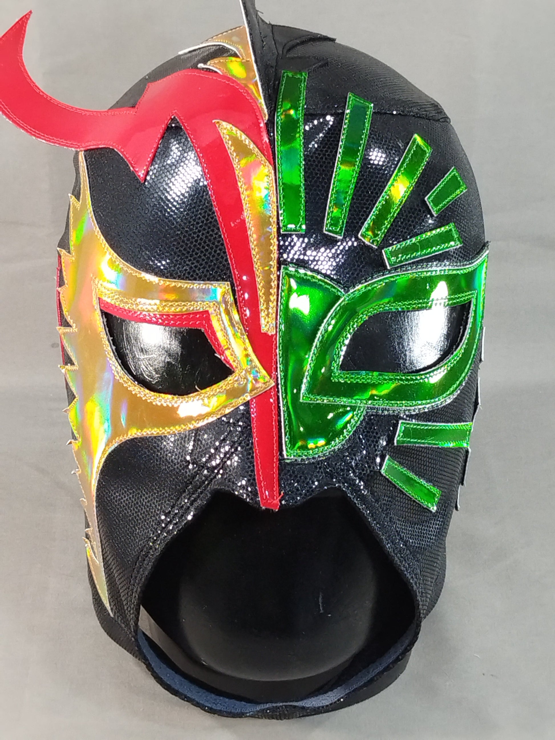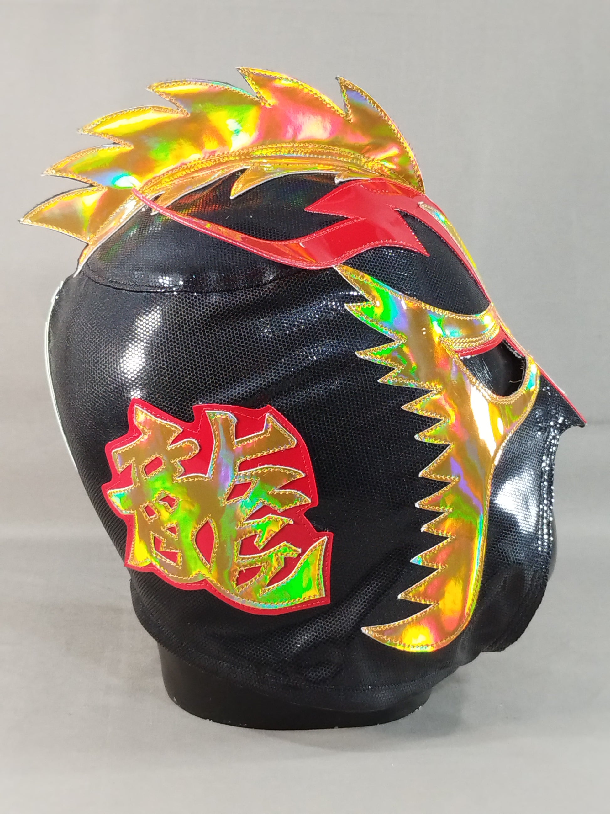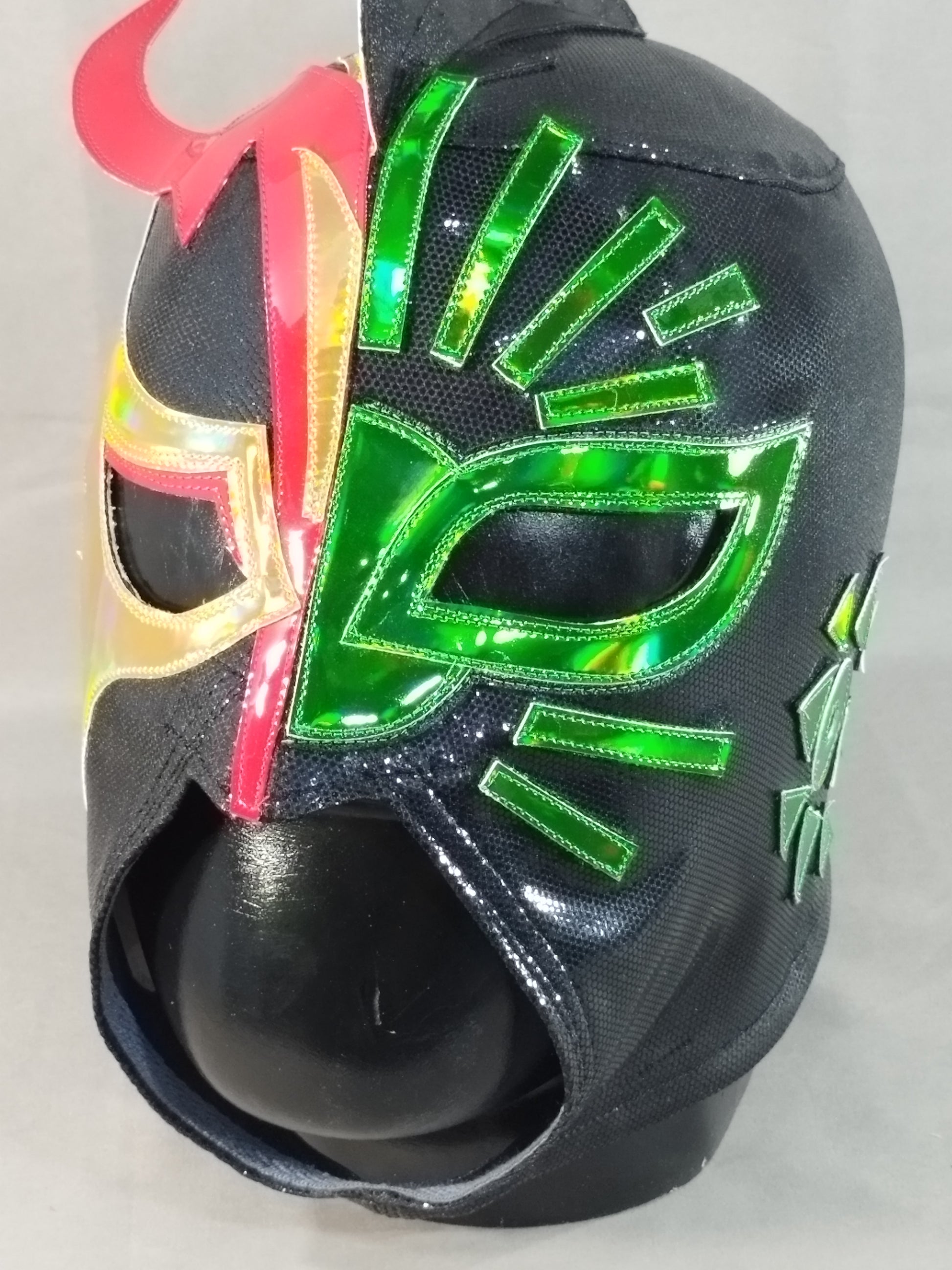 黒特殊レオタード生地 金メタリックフチ&赤フチ&緑メタリックフチ 十字テープ縦1本