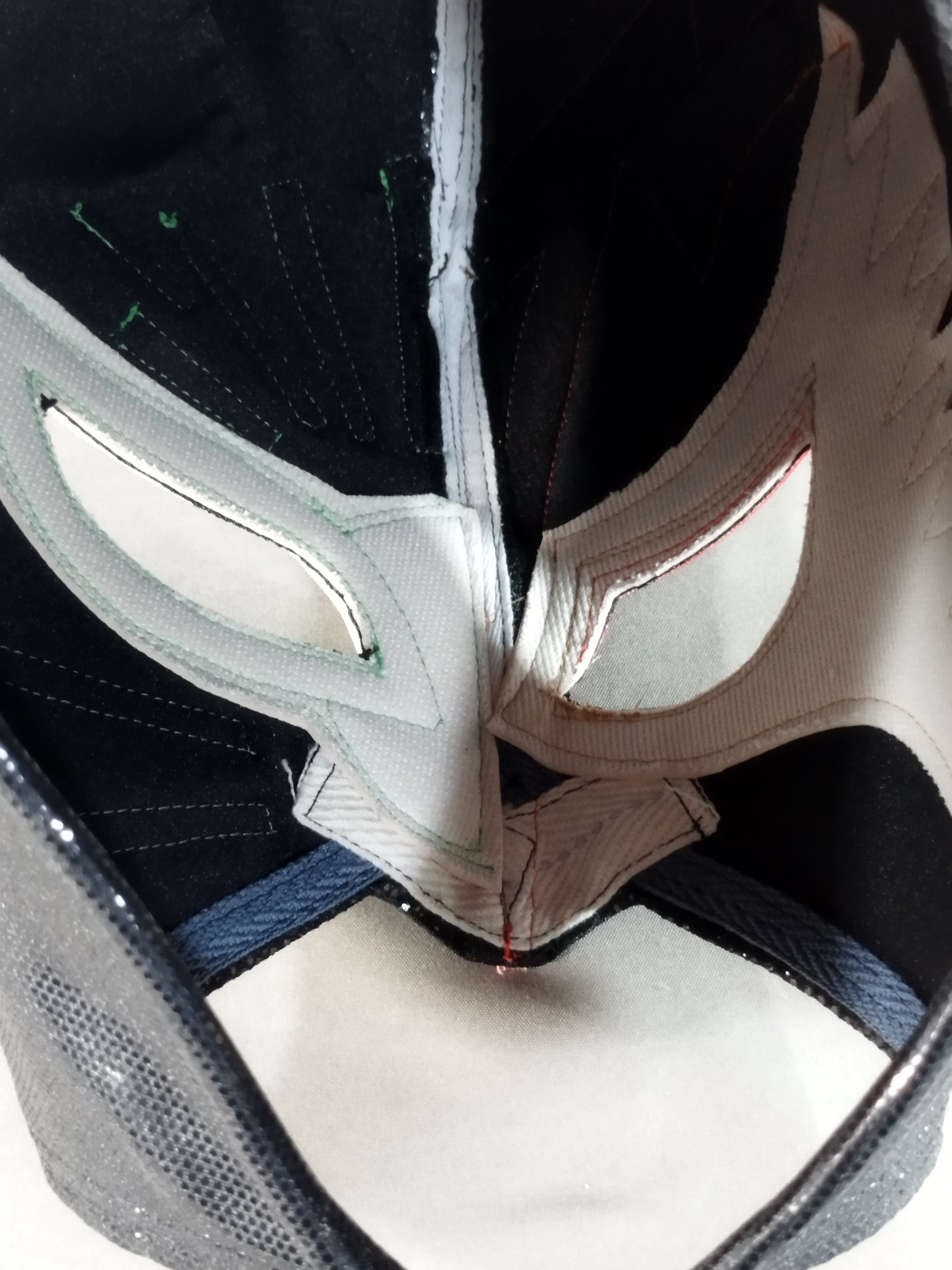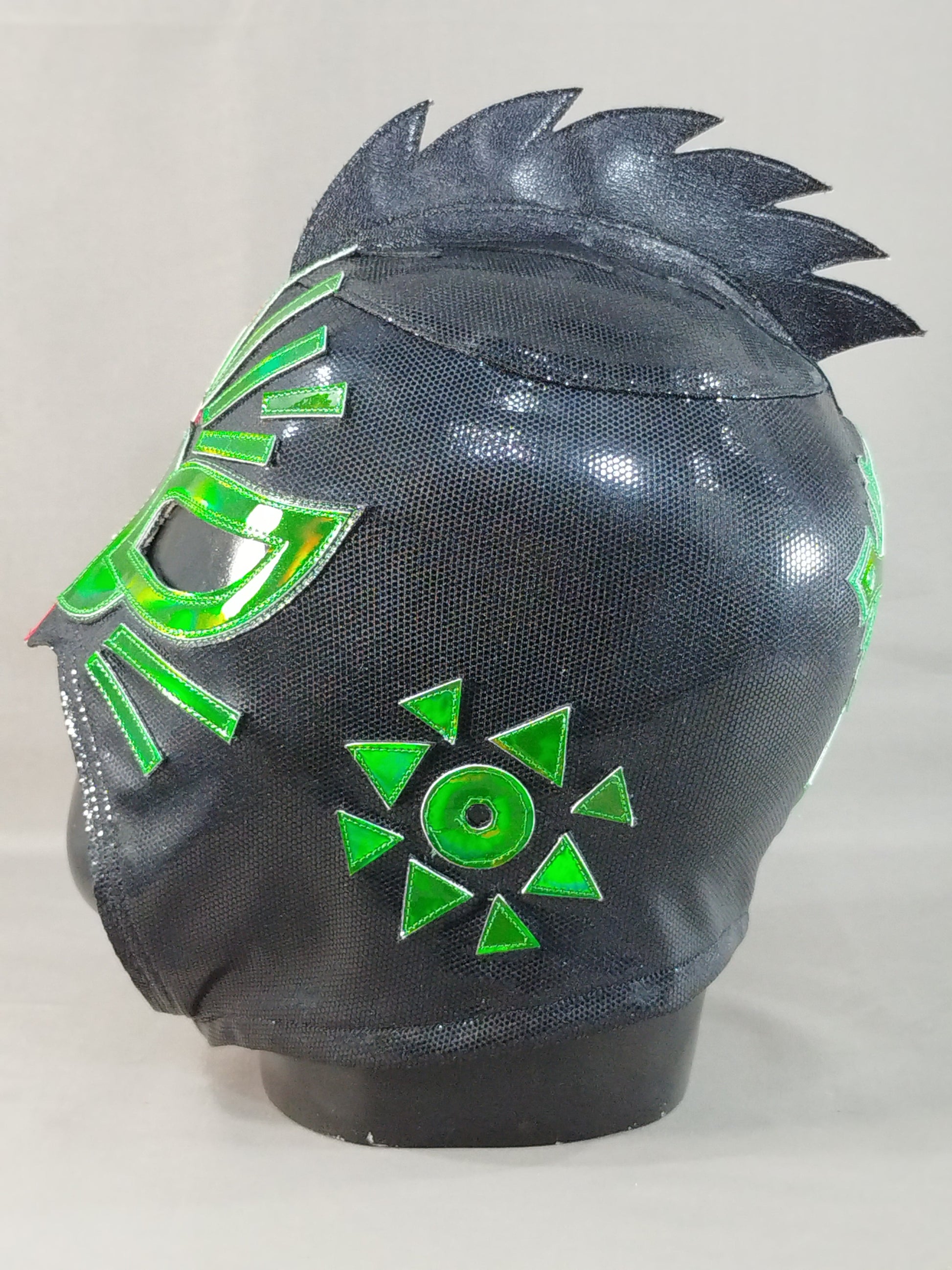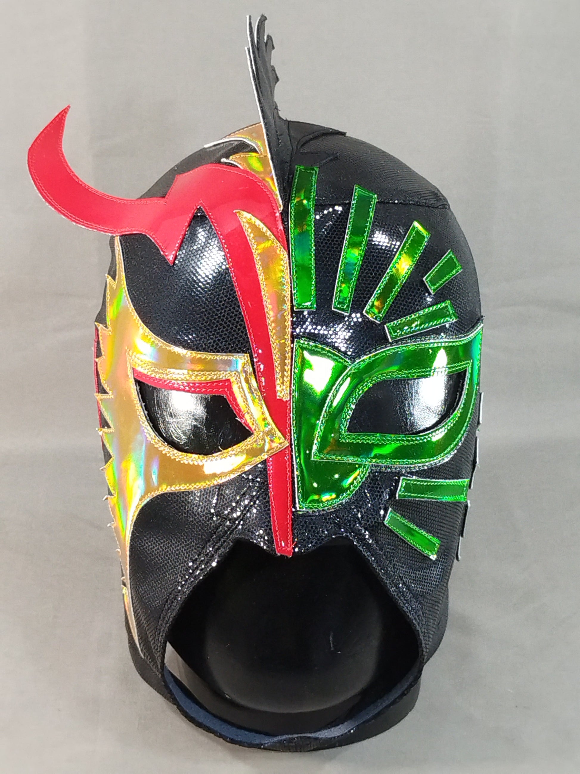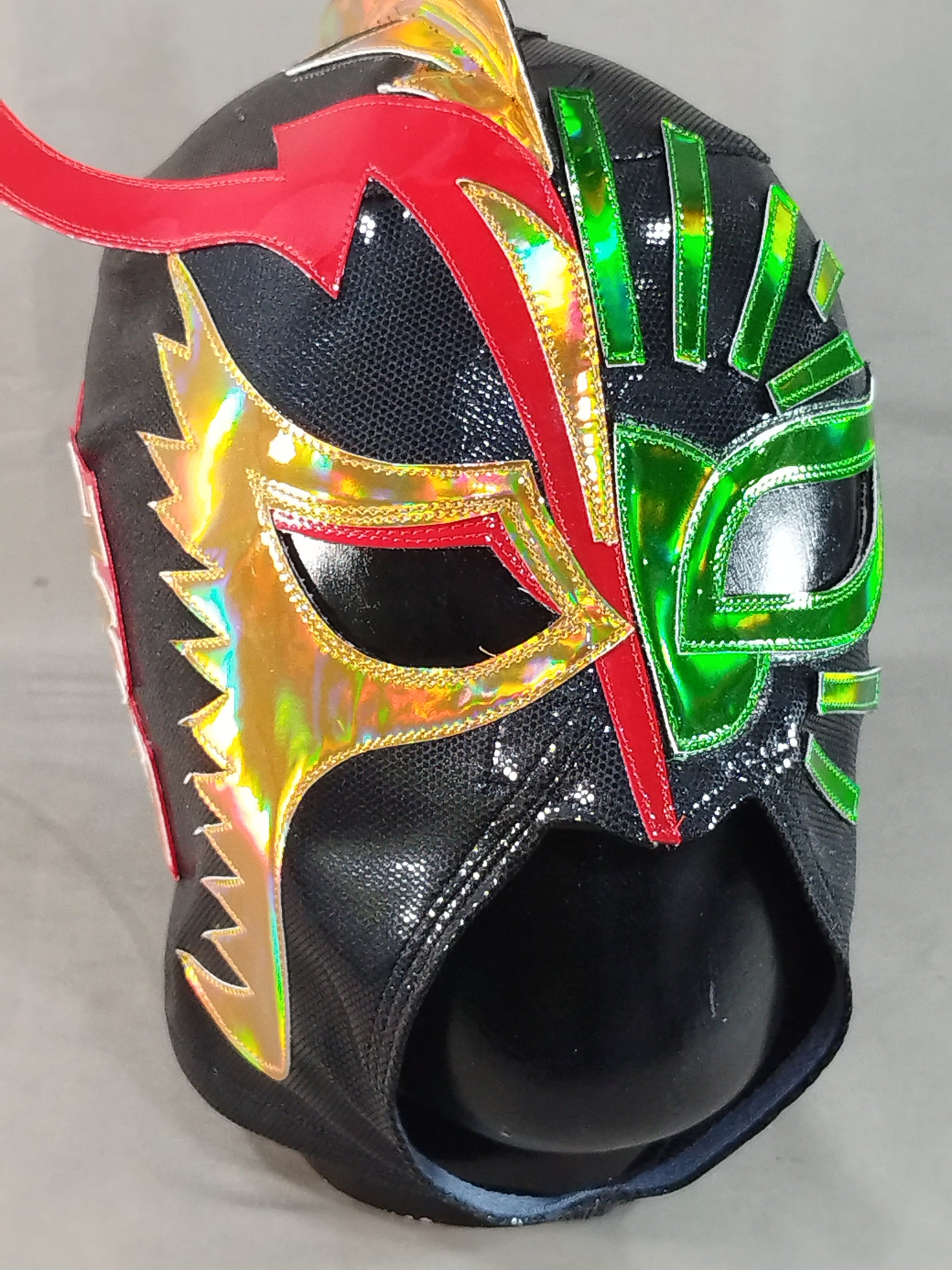 黒特殊レオタード生地 金メタリックフチ&赤フチ&緑メタリックフチ 十字テープ縦1本