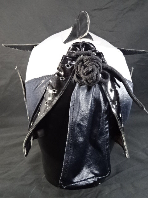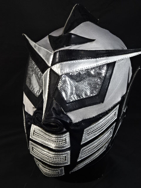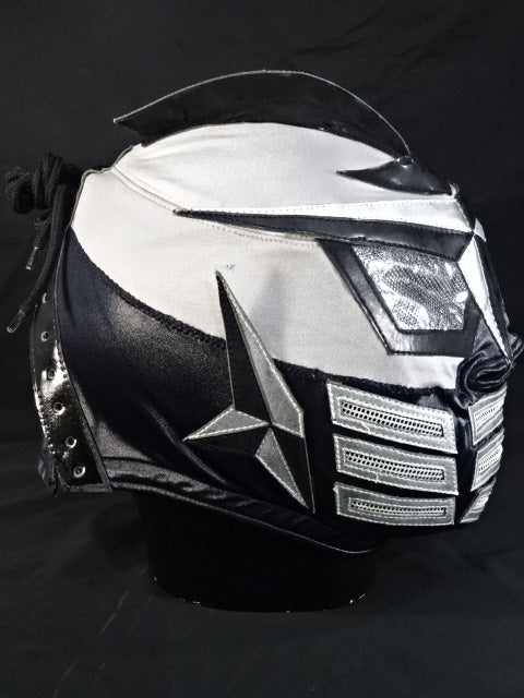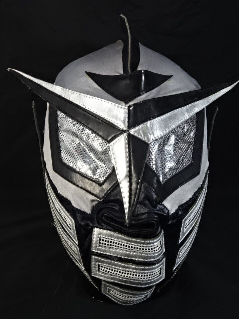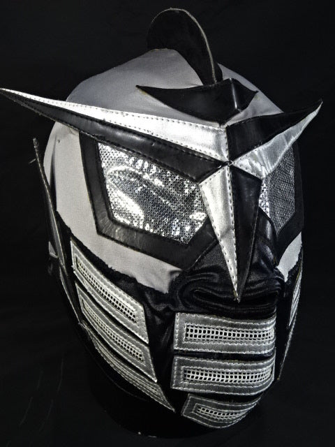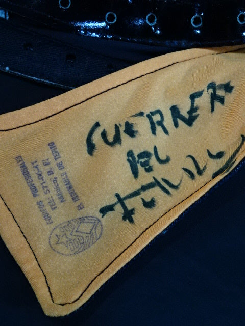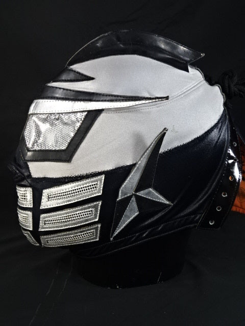 ★ビンテージ年代物マスク★ 本人使用サイン入り 銀&黒レオタード2重生地 黒フチ&銀フチ