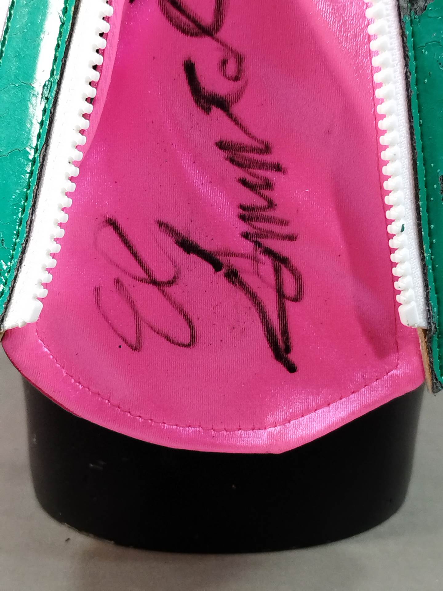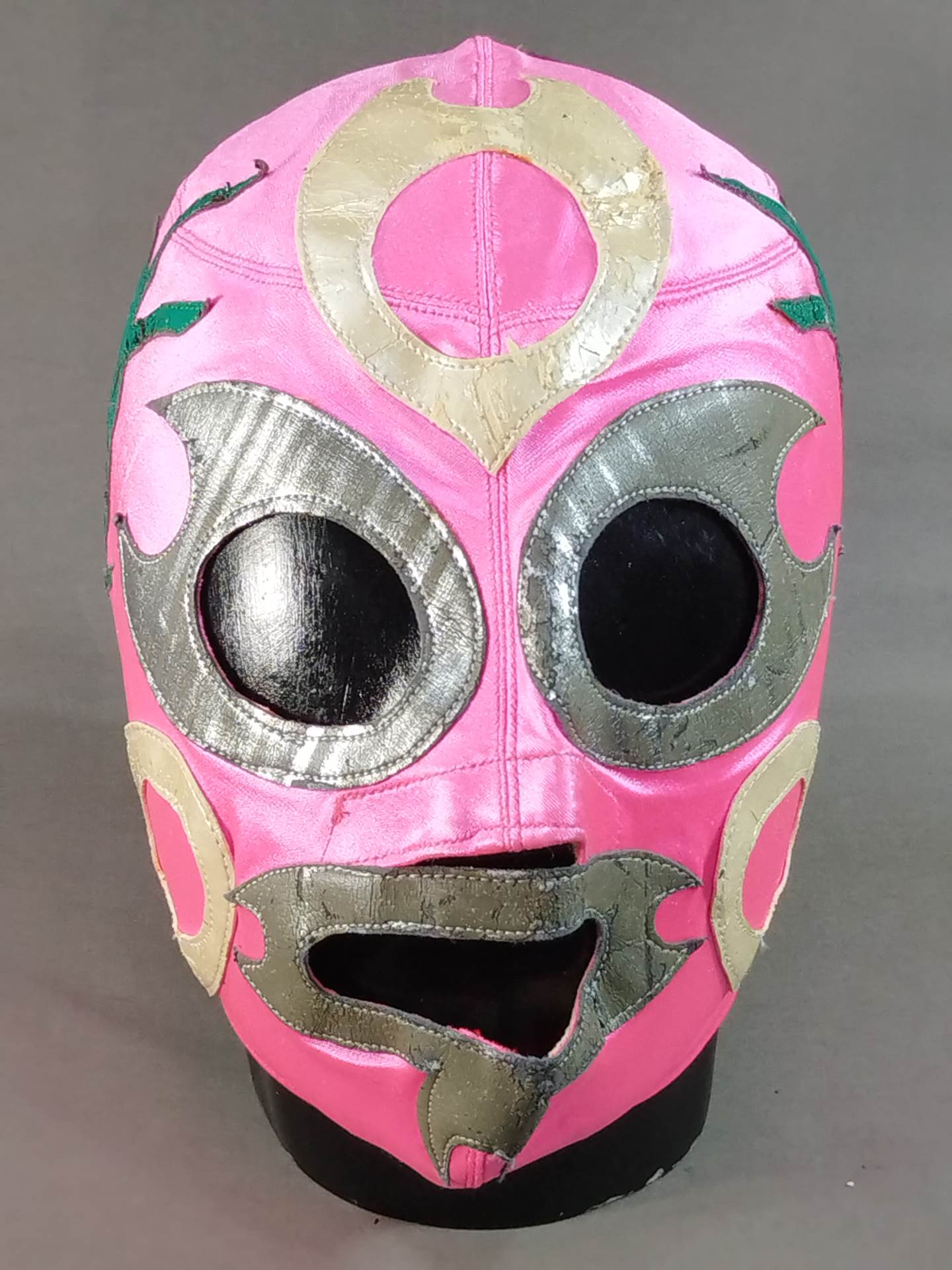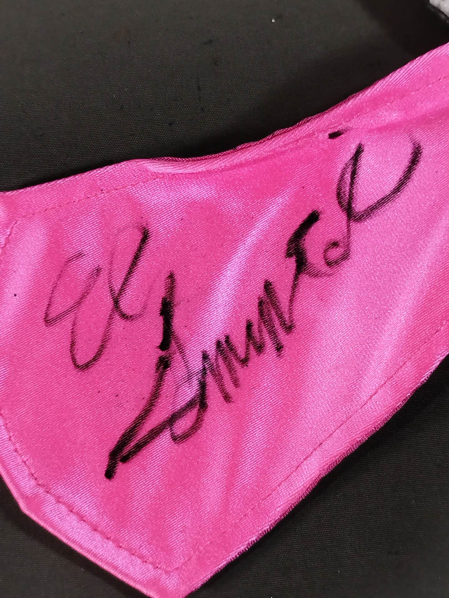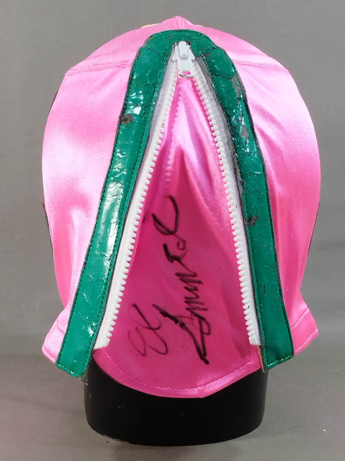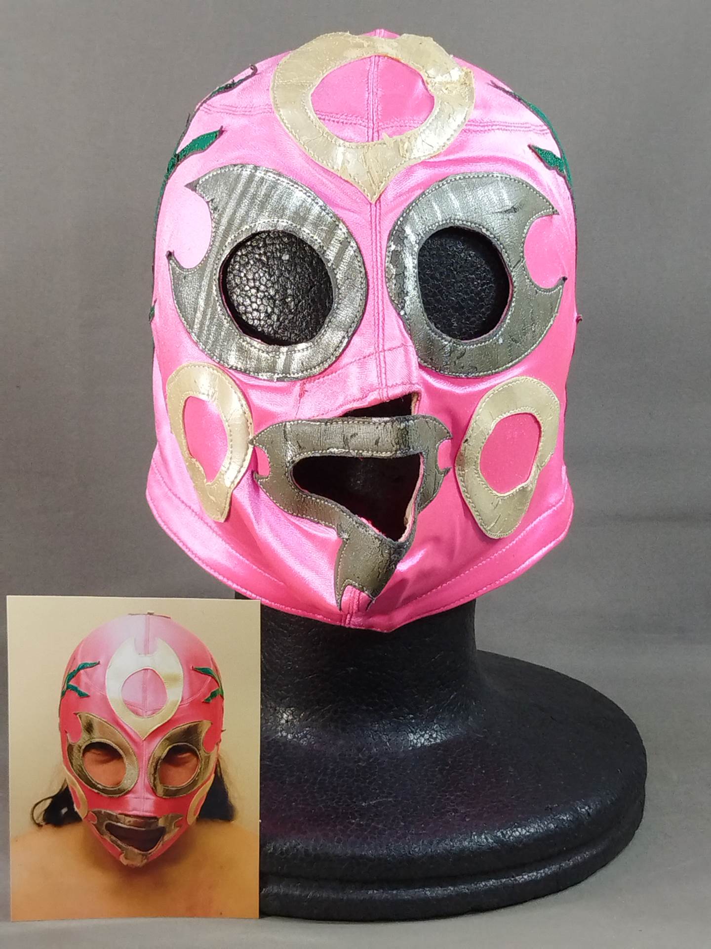 サイン入り 着用写真付 ピンクレオタード生地 銀特殊フチ&薄金フチ&緑フチ