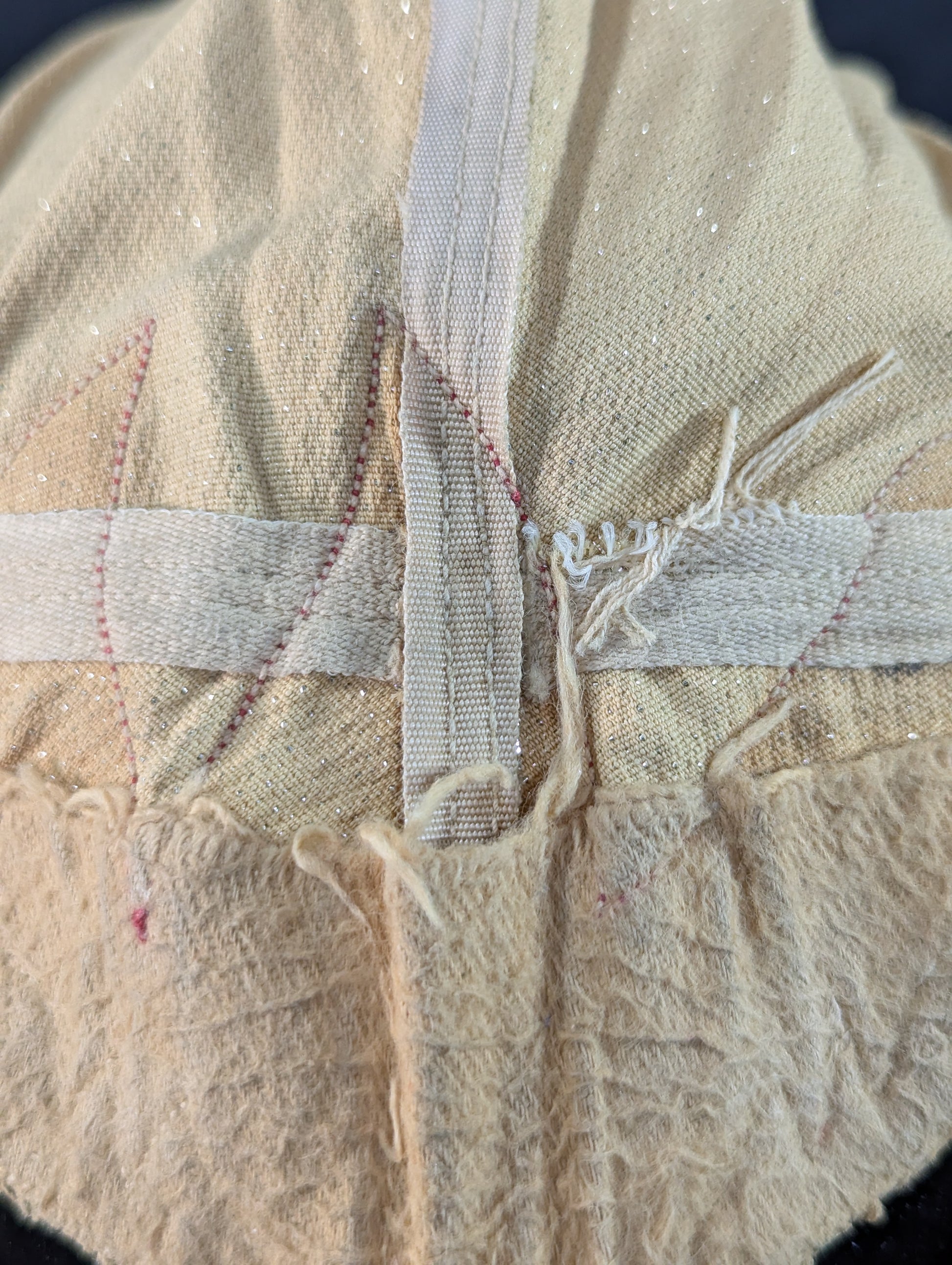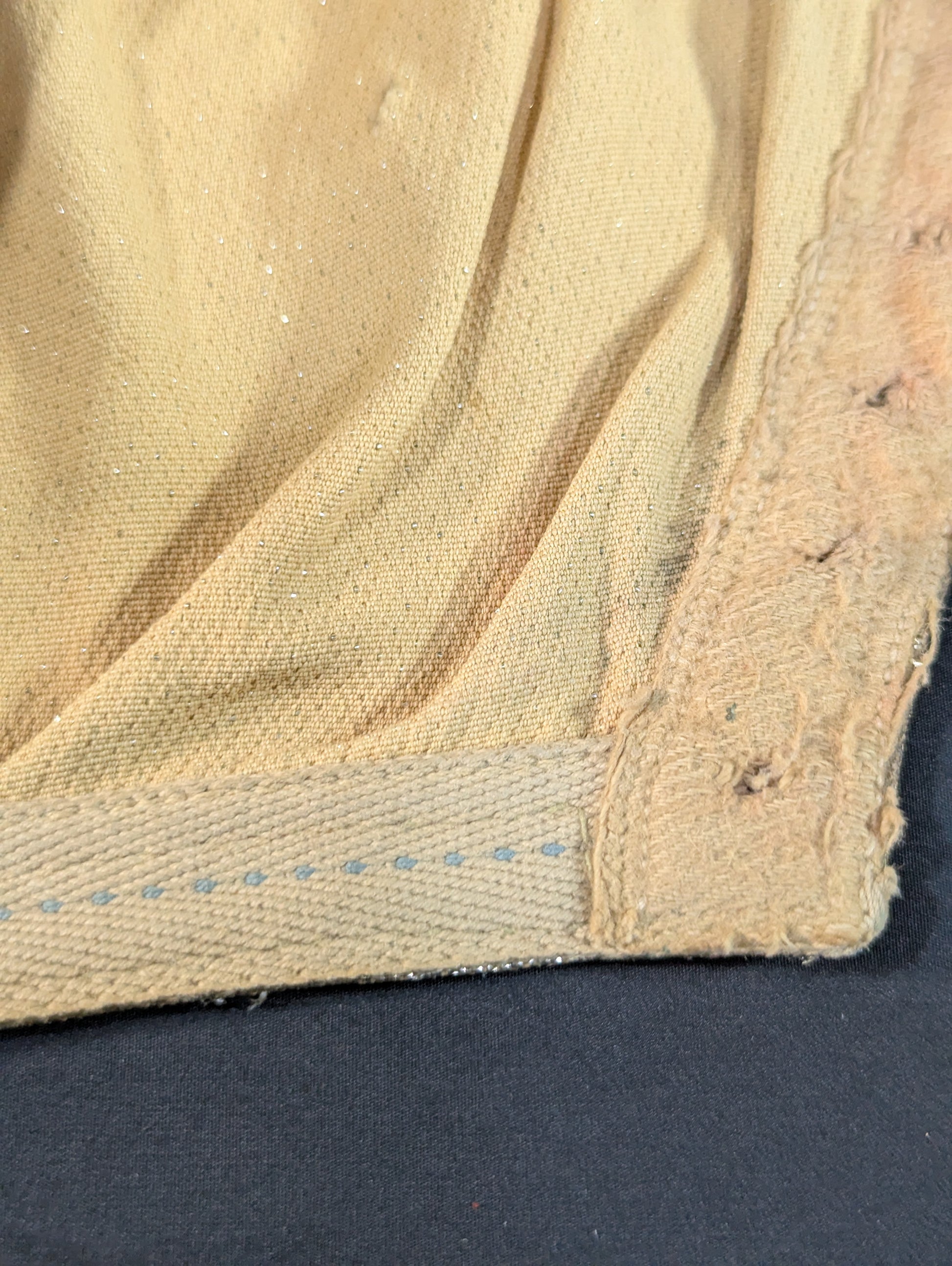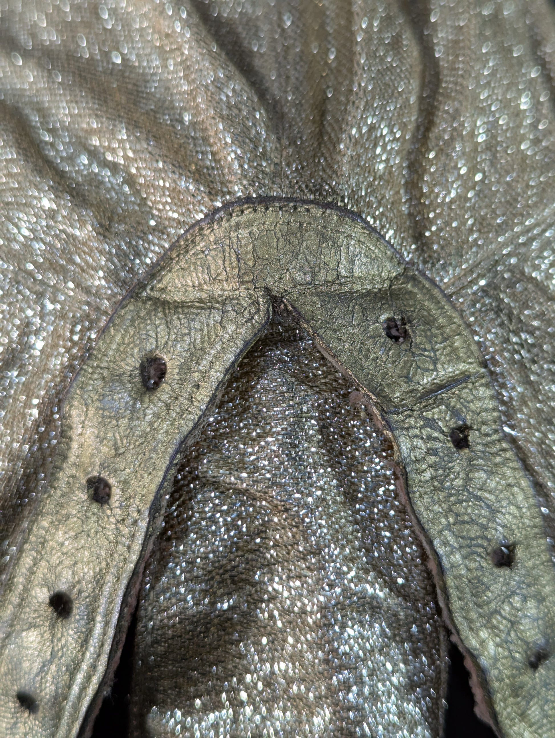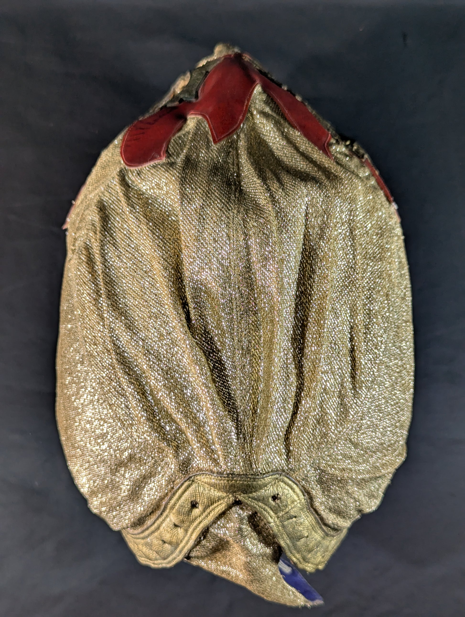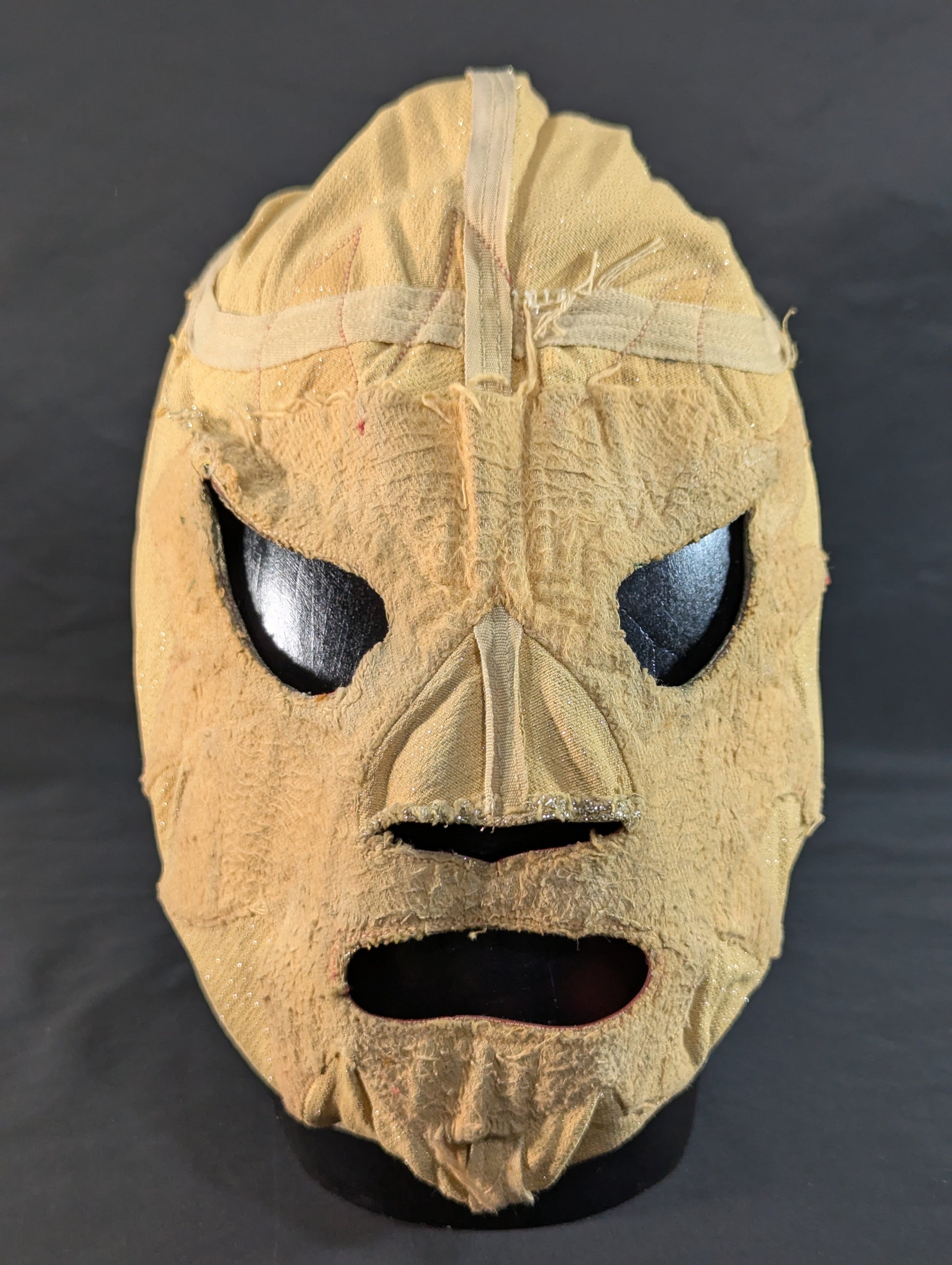 ★本人実使用!! 70年代当時モノ★ 旧金ラメ 赤特殊フチ&金革フチ(紐通し部分も同色本革) ベロは同色の旧ラメと青紫色の旧サテン生地 喉テープは縦幅1.6cmで薄青のセンターステッチ 横タグ ~神秘なるマスク芸術~マルチネス編の30ページに掲載されている現物マスク 1970年代中期にアントニオ・ウンベルト・マルチネス氏により製作されたもの