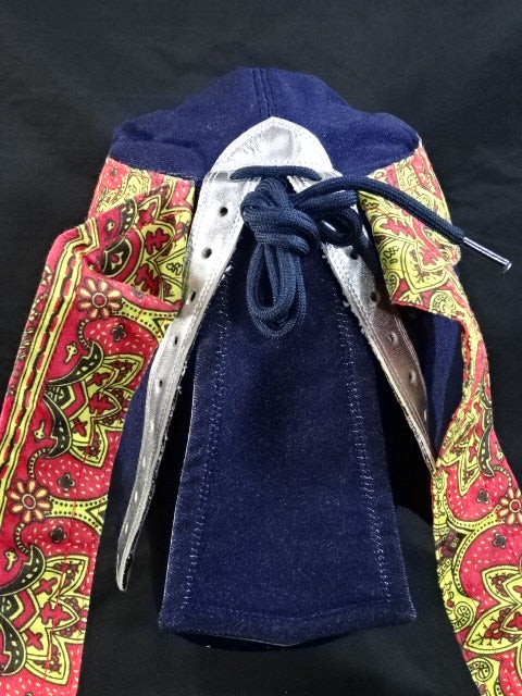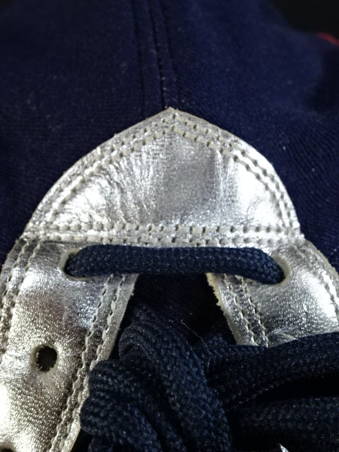 濃紺ジャージ生地 銀革フチ&赤革フチ