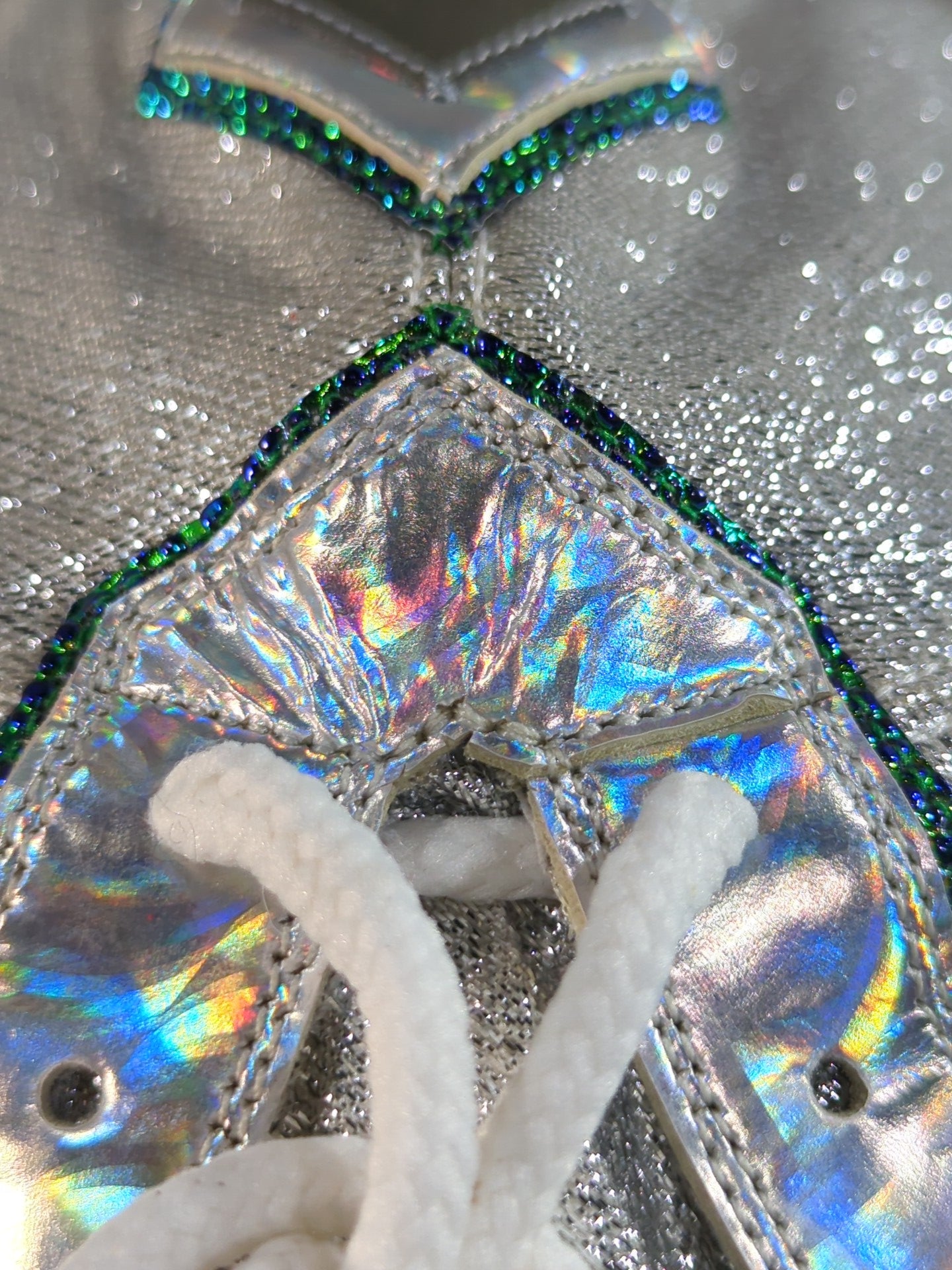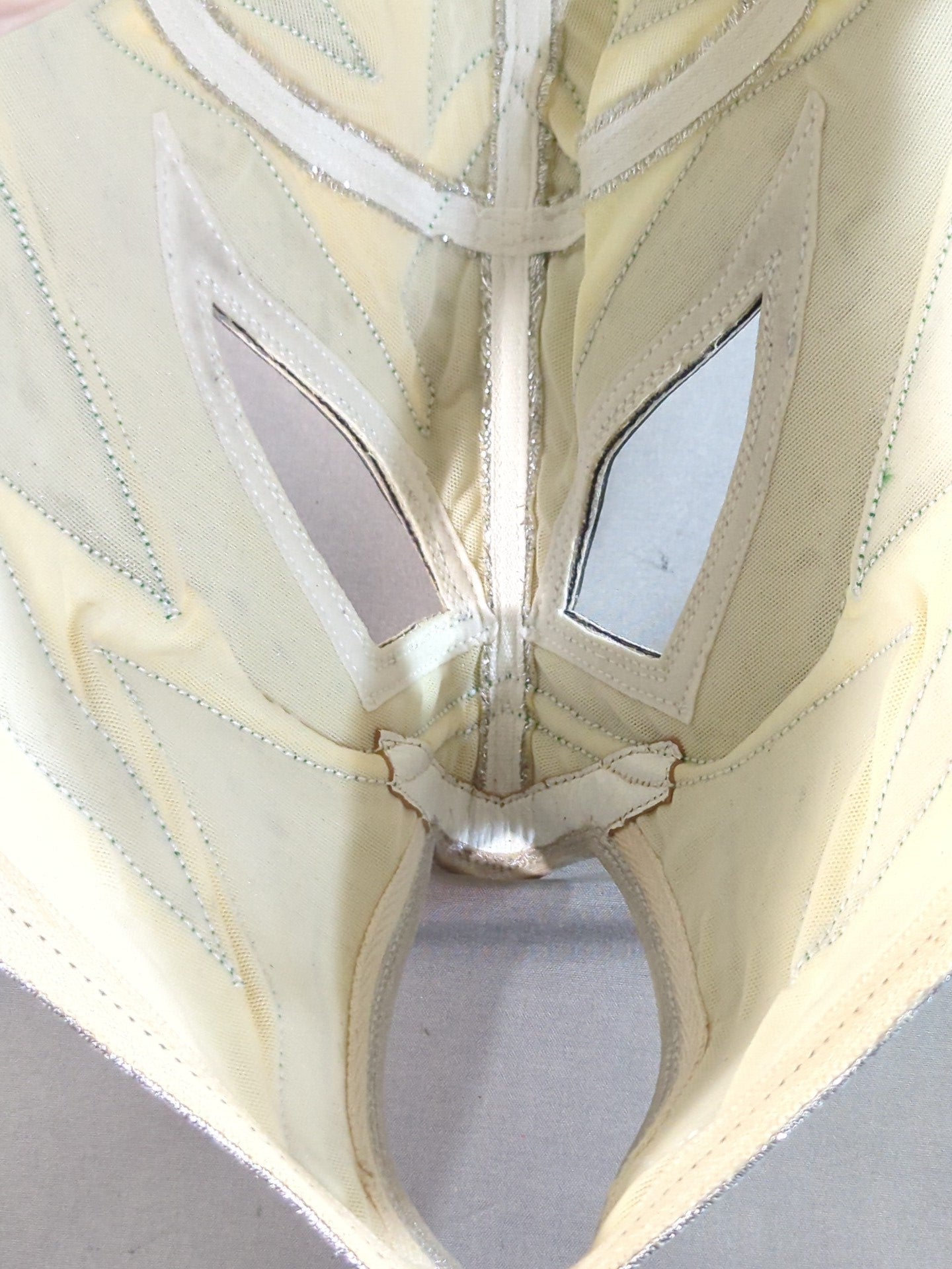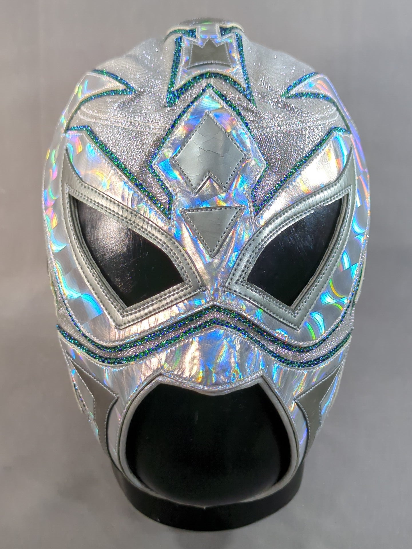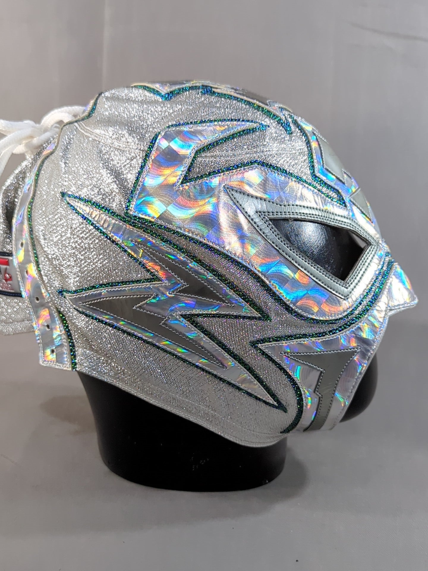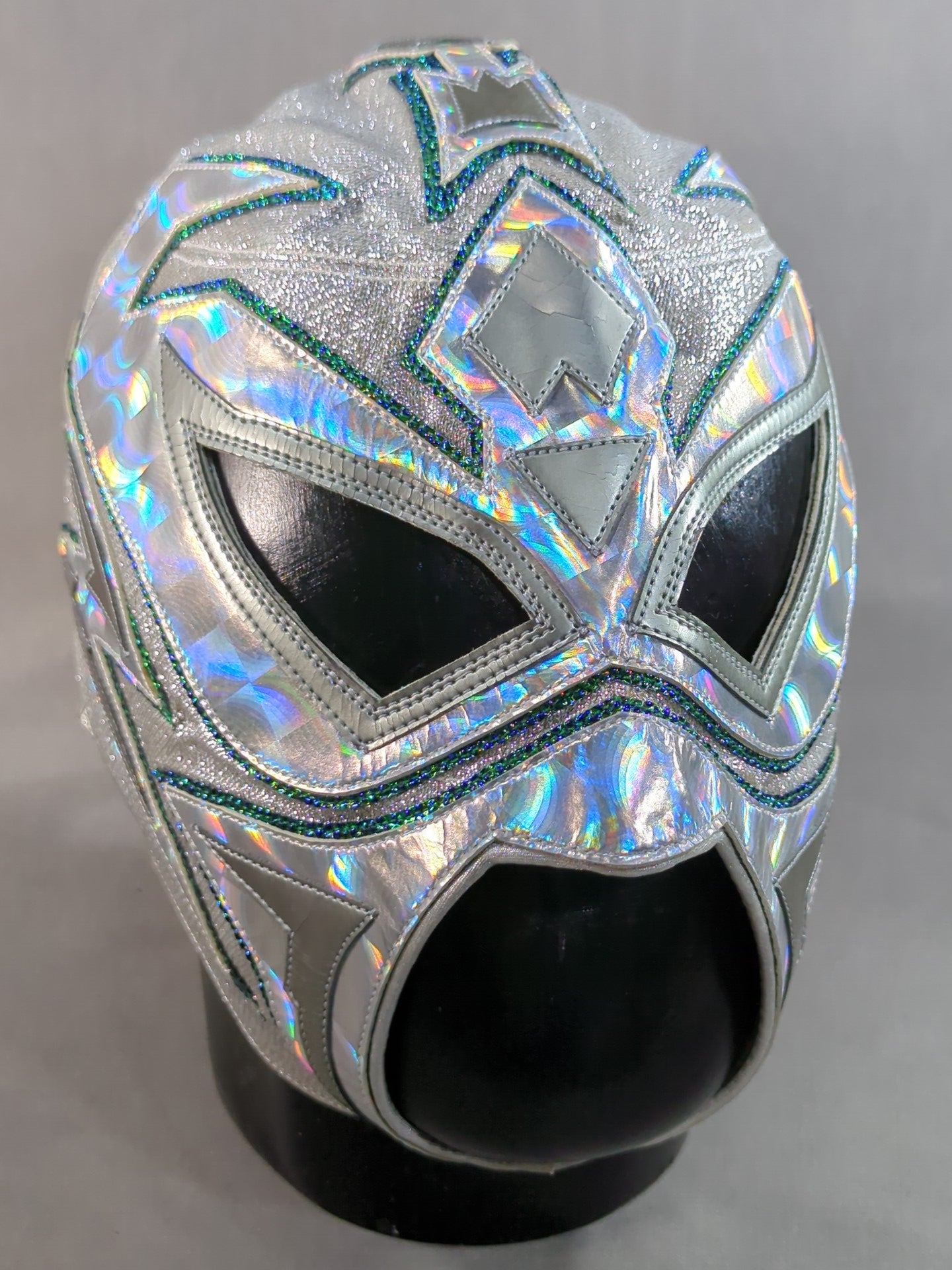 サイン入り(CMLL) 銀ラメ2重生地(メッシュ張り) 青緑特殊地銀特殊革フチ&銀フチ