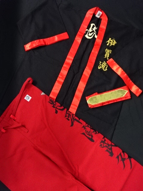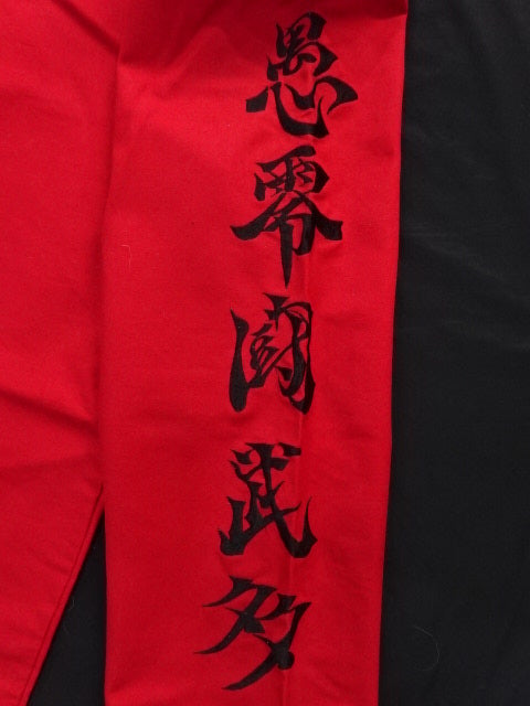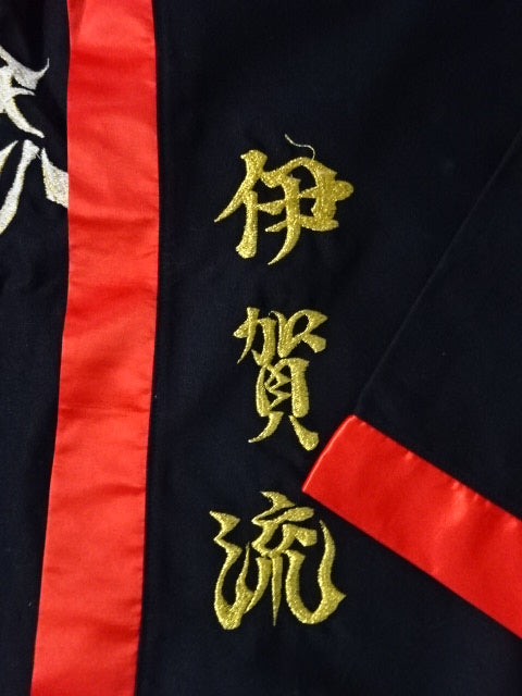 1994年頃、闘魂SHOP六本木店にて販売されていたもの 法被(ライオンマーク&SIMAタグ付 黒生地 伊賀流・忍 金糸刺繍付 帯付) パンタロン(ライオンマーク&SIMAタグ付 刺繍入り 赤)