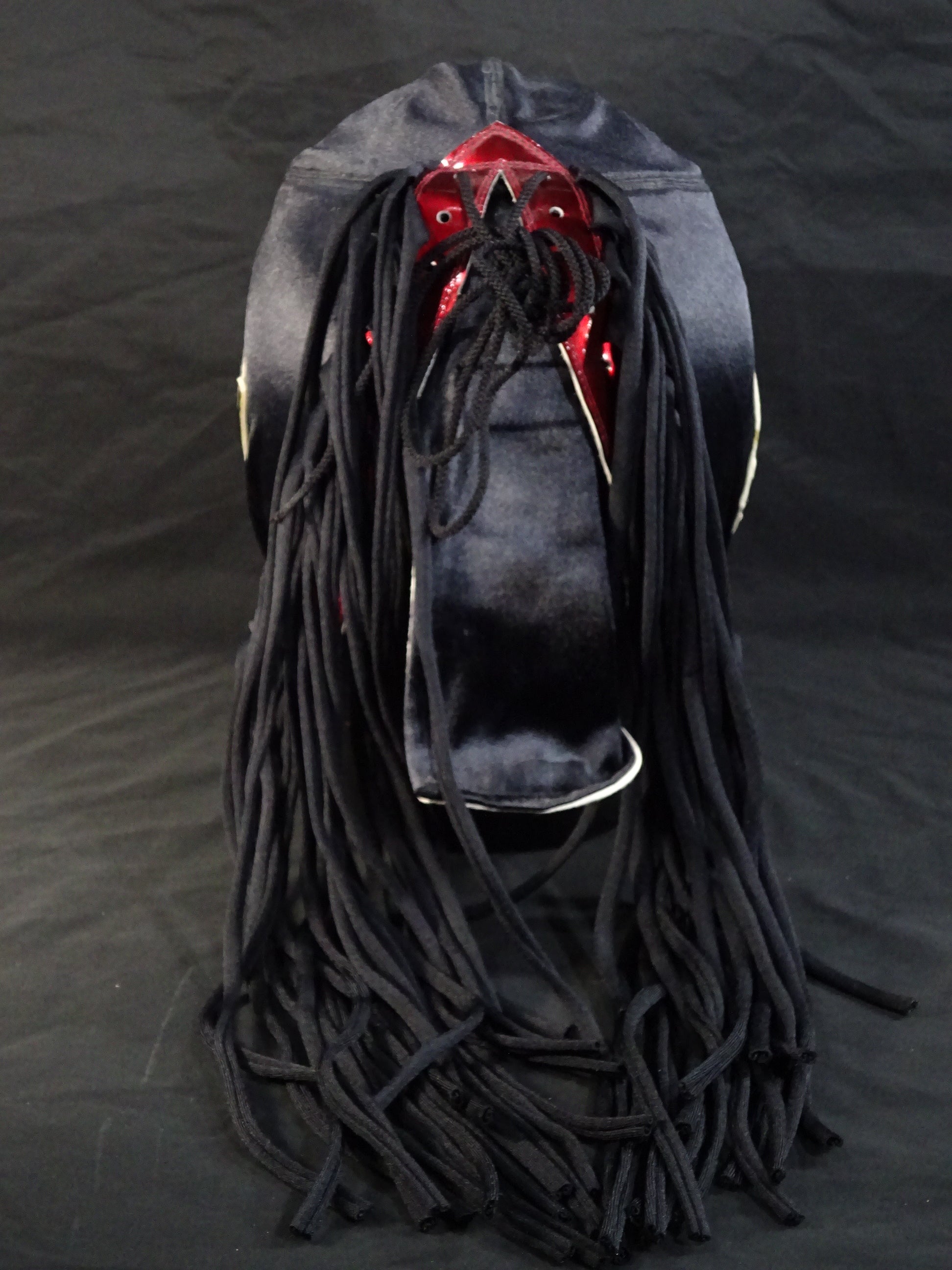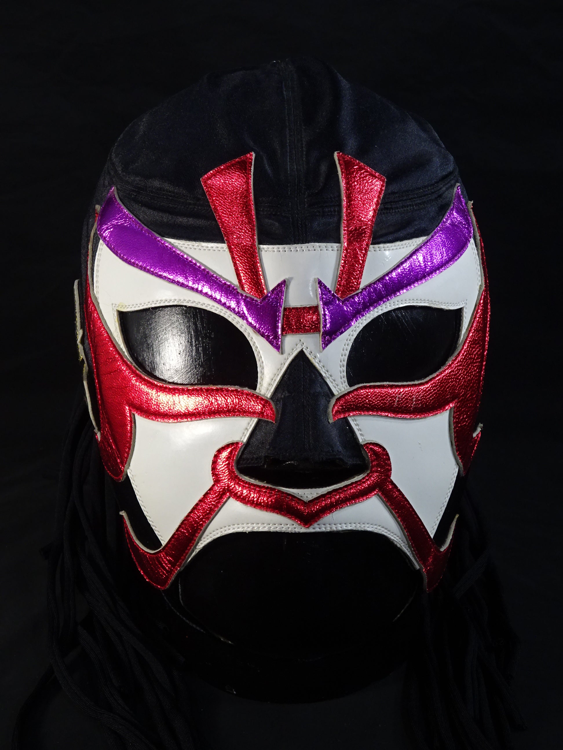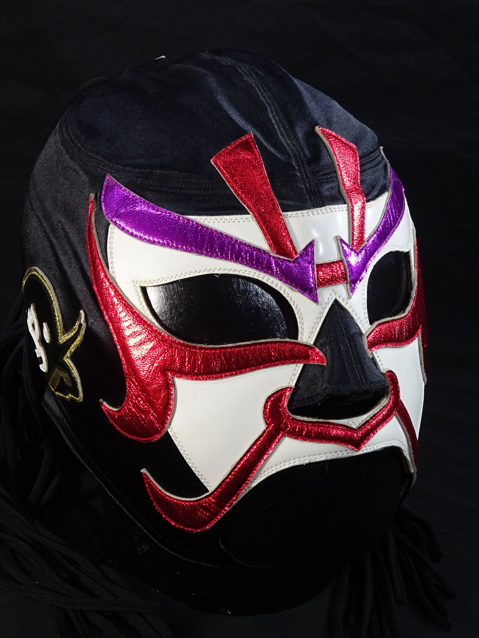 サイン入り 黒サテン生地 白フチ&赤メタリック革フチ&紫メタリック革眉