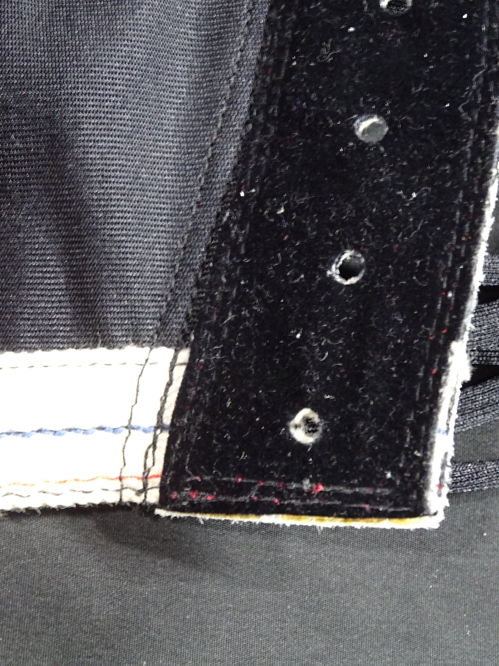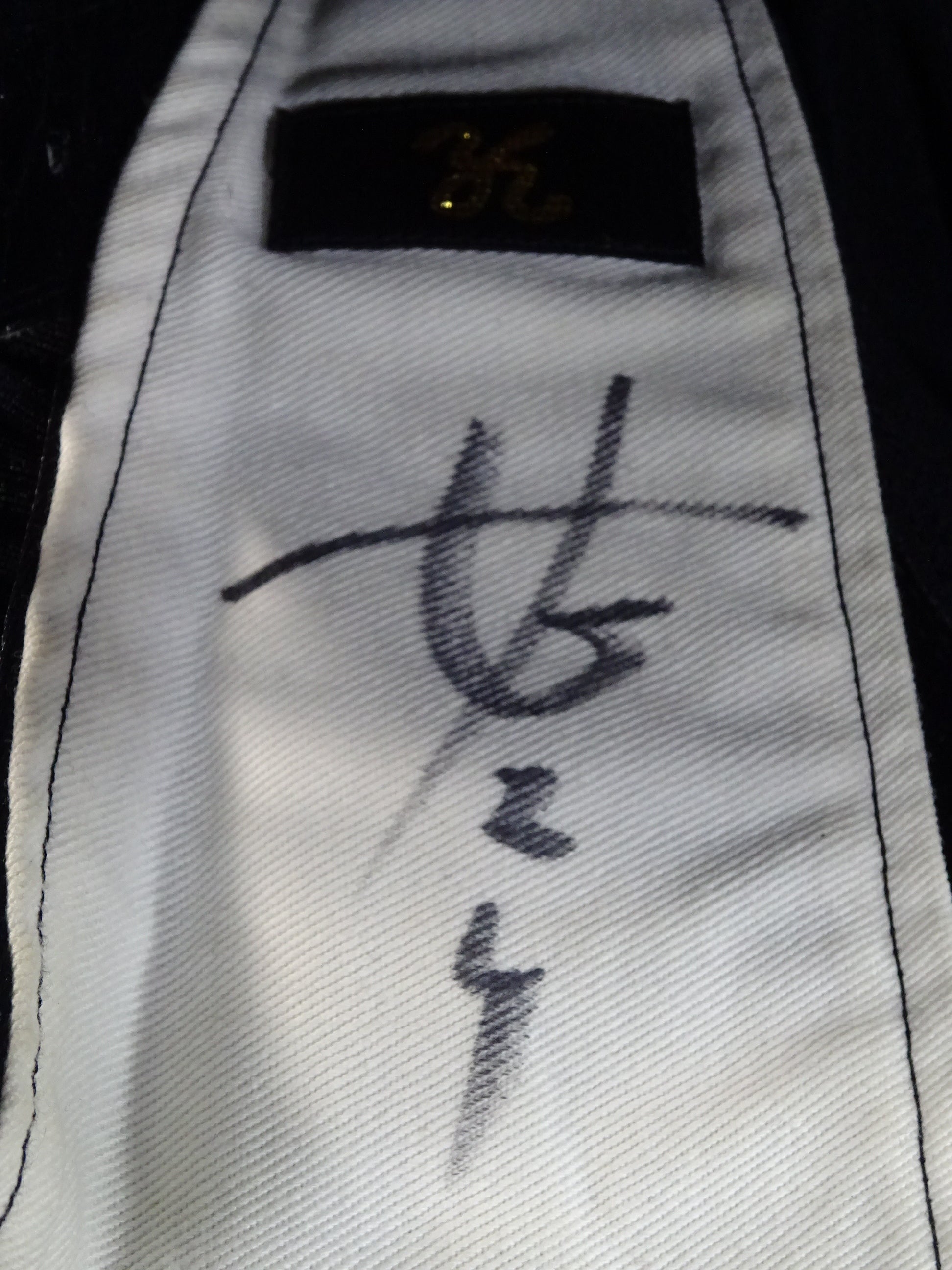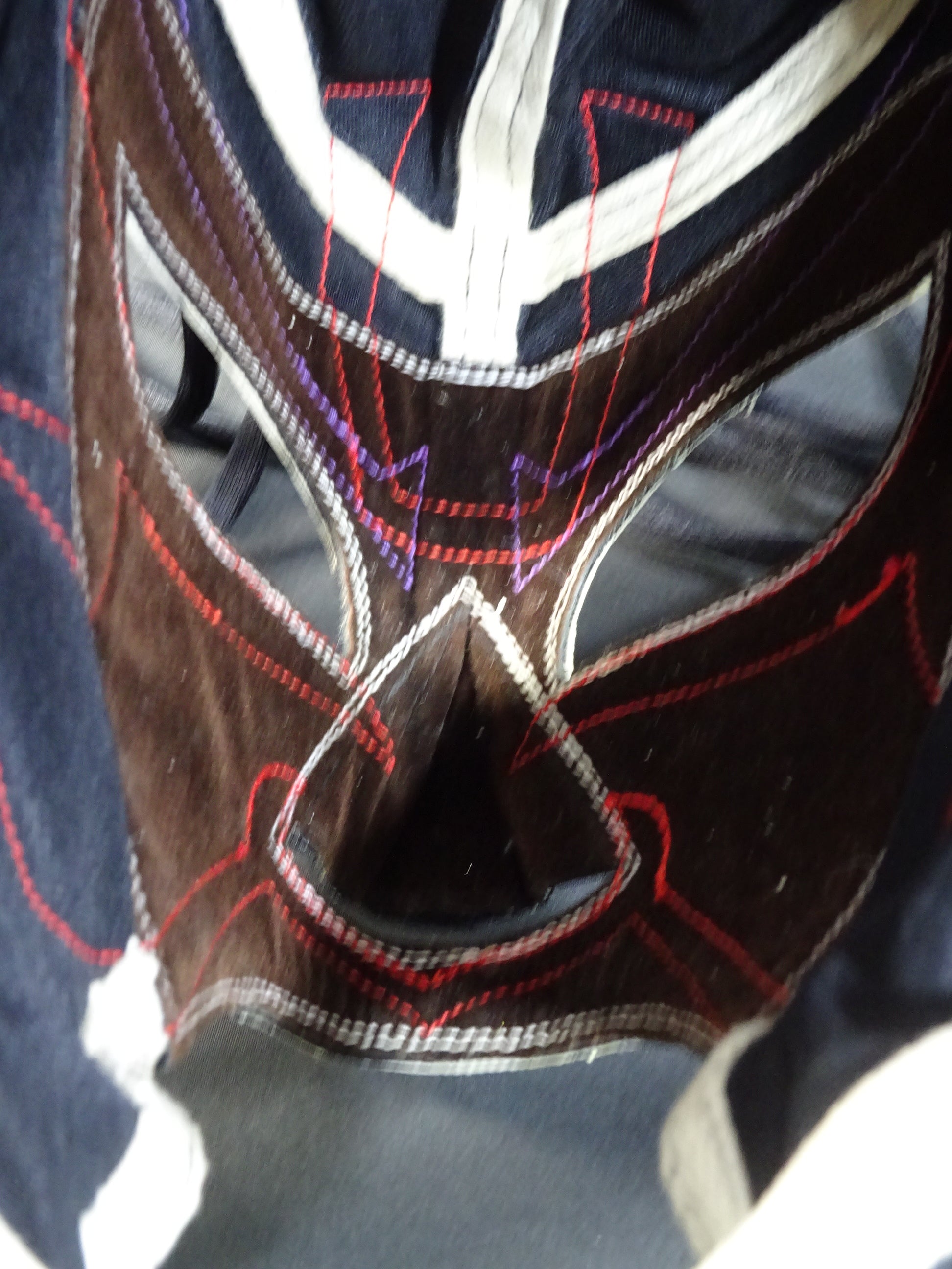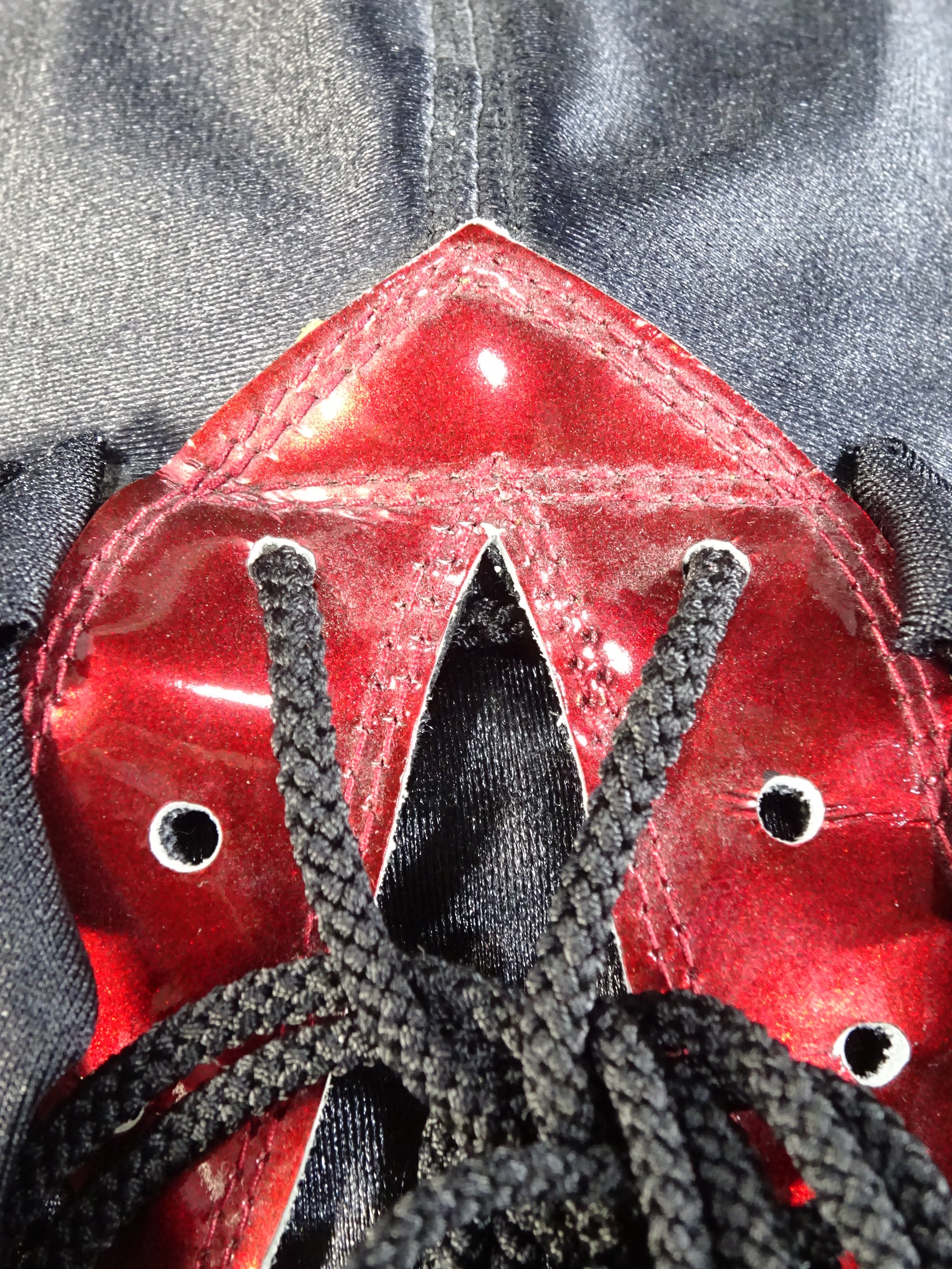 サイン入り 黒サテン生地 白フチ&赤メタリック革フチ&紫メタリック革眉