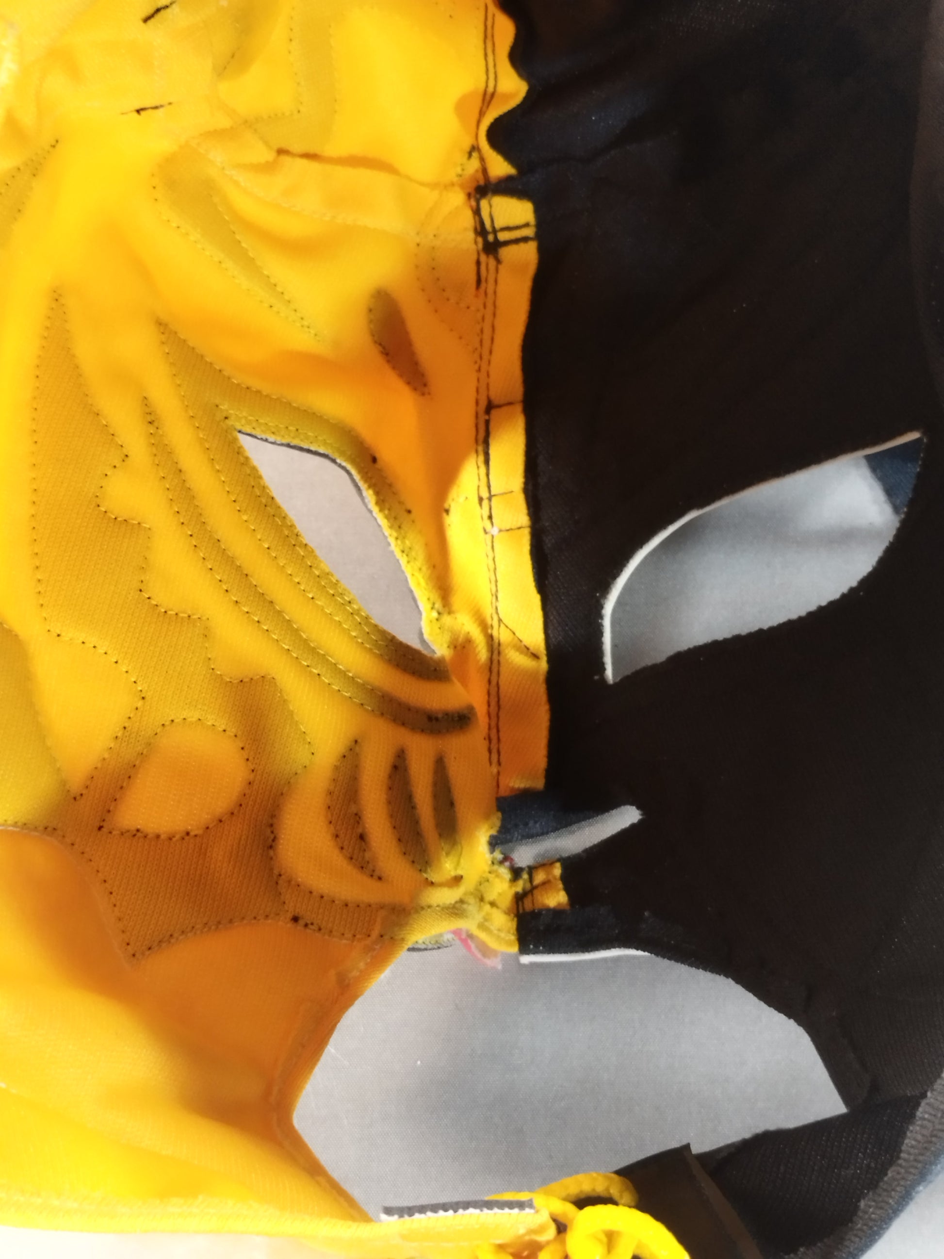 黒&黄色ハーフジャージ生地 白地赤フチ&黒フチ 青眉