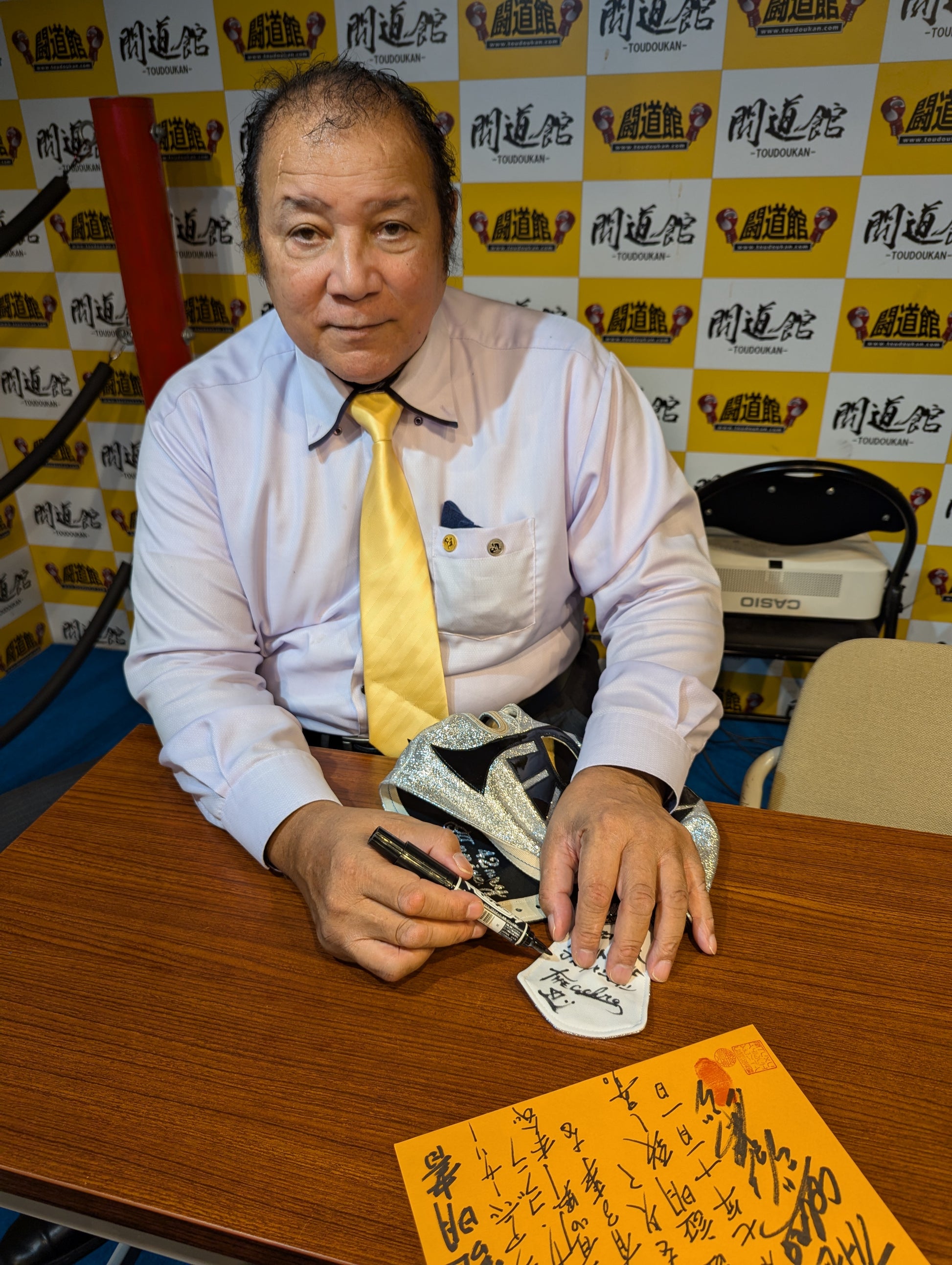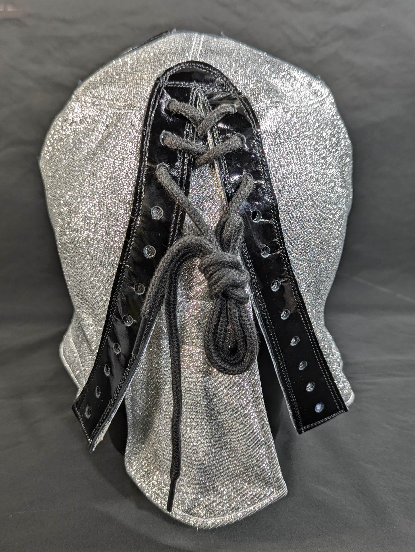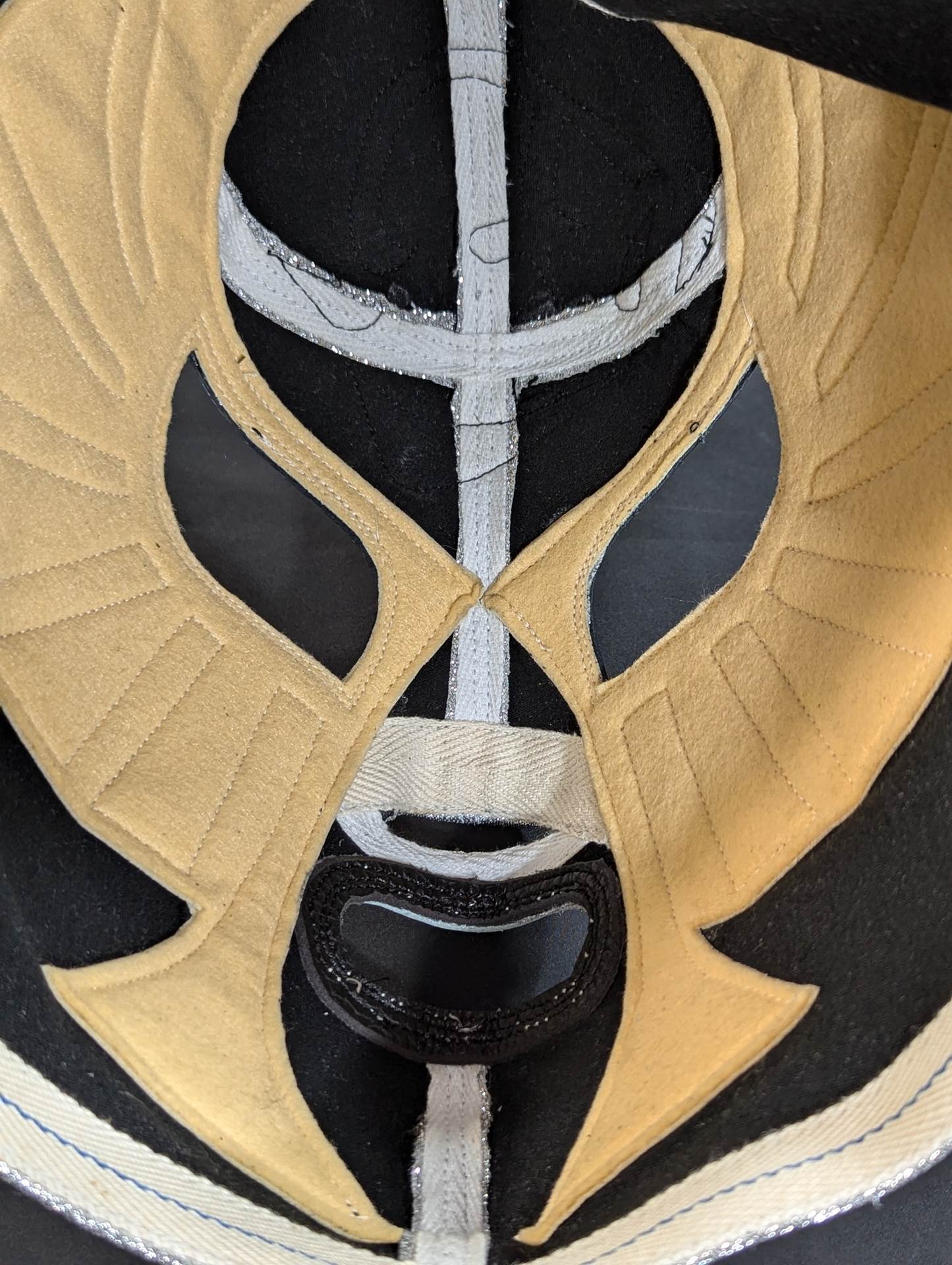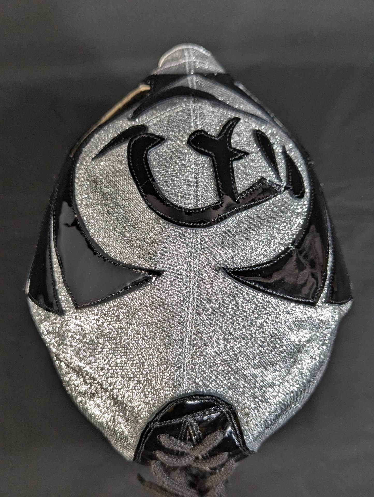 ★1983.11.3 蔵前デビュー戦「忍」タイプ★ 直筆サイン入り 保証証明書と着用写真付 銀ラメ2重生地 黒革フチ&シャンパンゴールド革フチ 「ザ・コブラHISTORY ザ・コブラこそが、日本マスク市場の生みの親。メキシコから持ちかえったザ・コブラのマスクを解体し、日本のマスク市場が立ち上がった」(byザ・コブラプロデュース事務局)