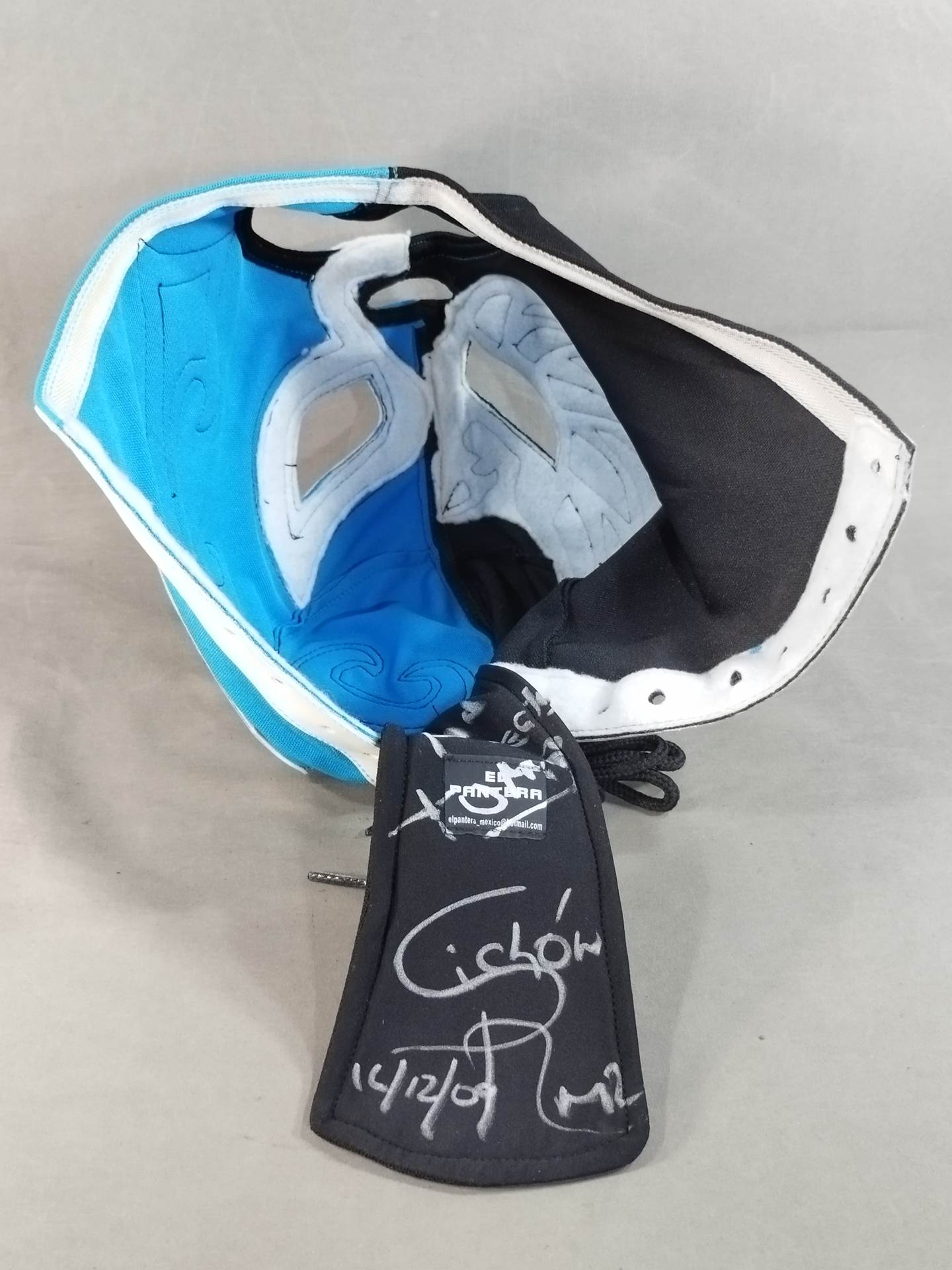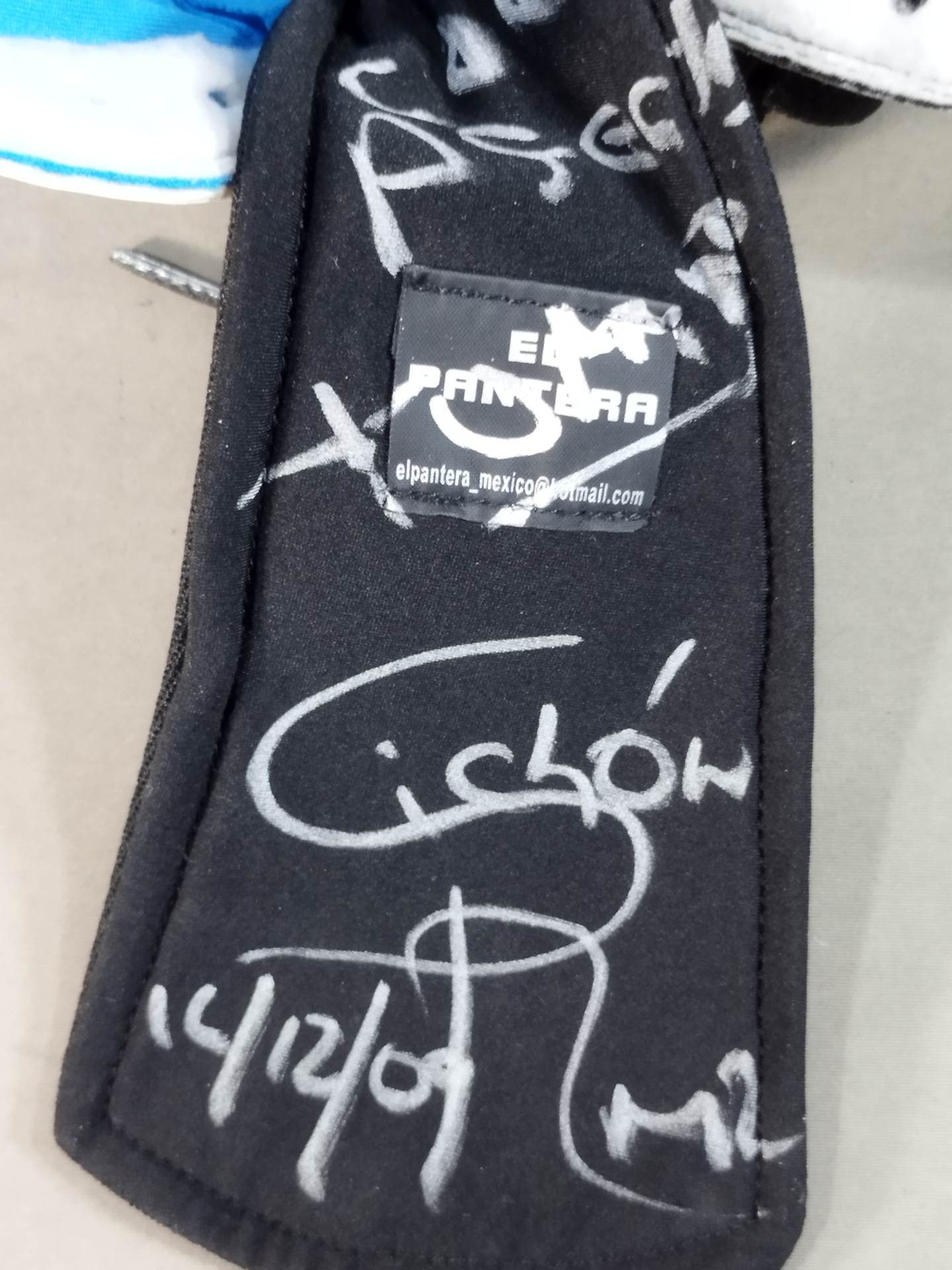 Wサイン入り(16.12.09) 水色&黒ハーフジャージ生地 白地青フチ&銀フチ