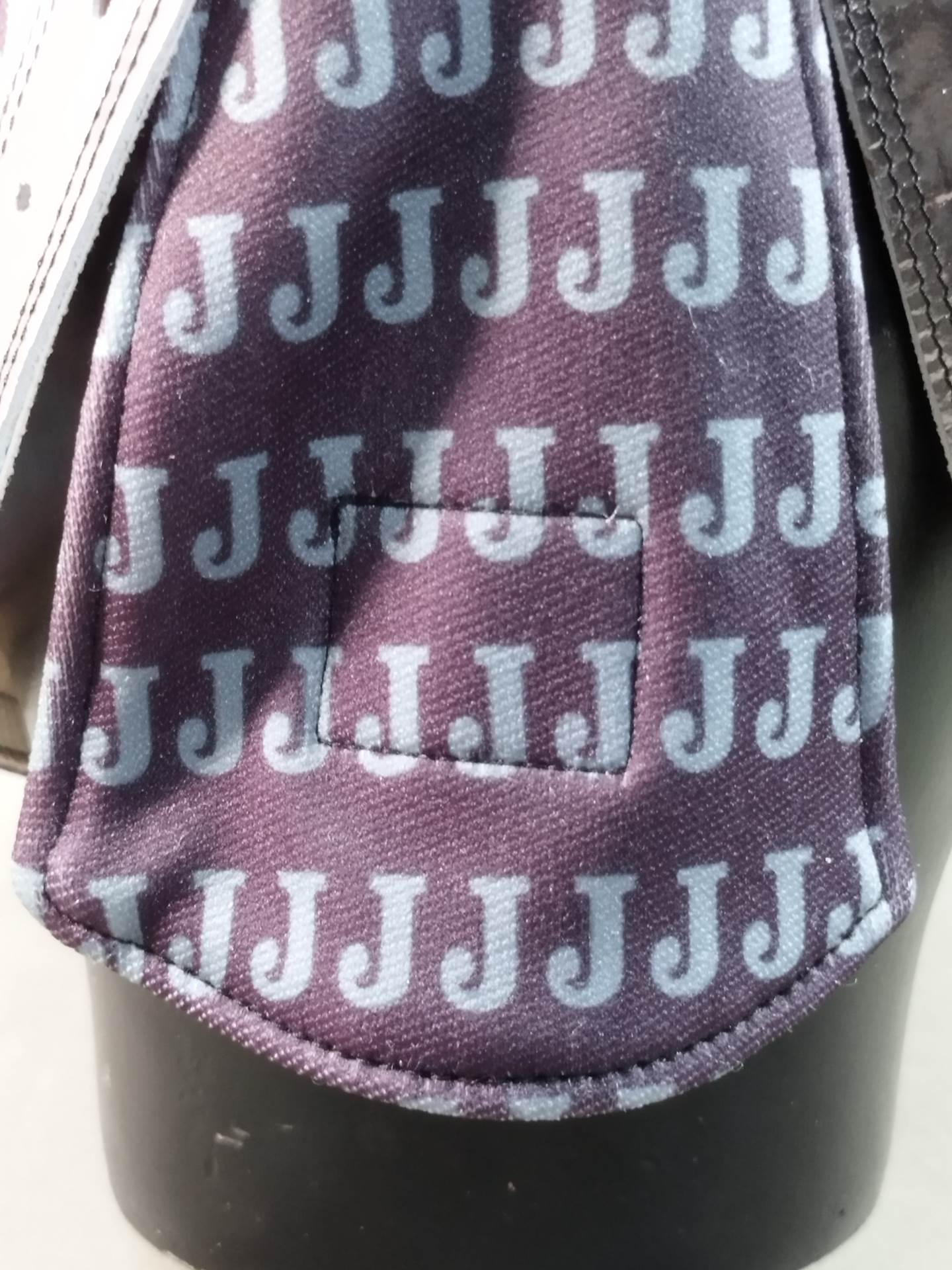 黒ジャージ生地 銀革フチ