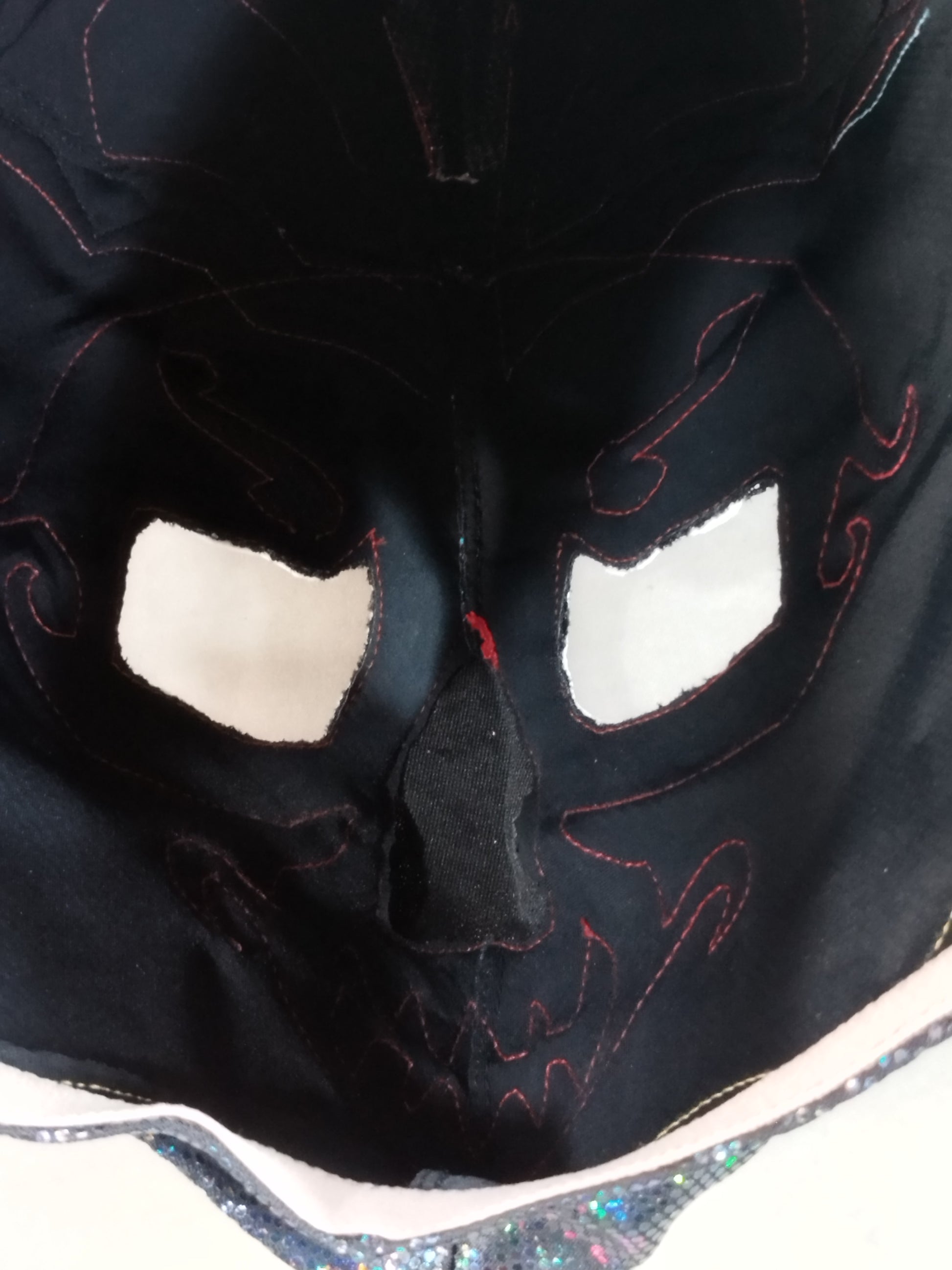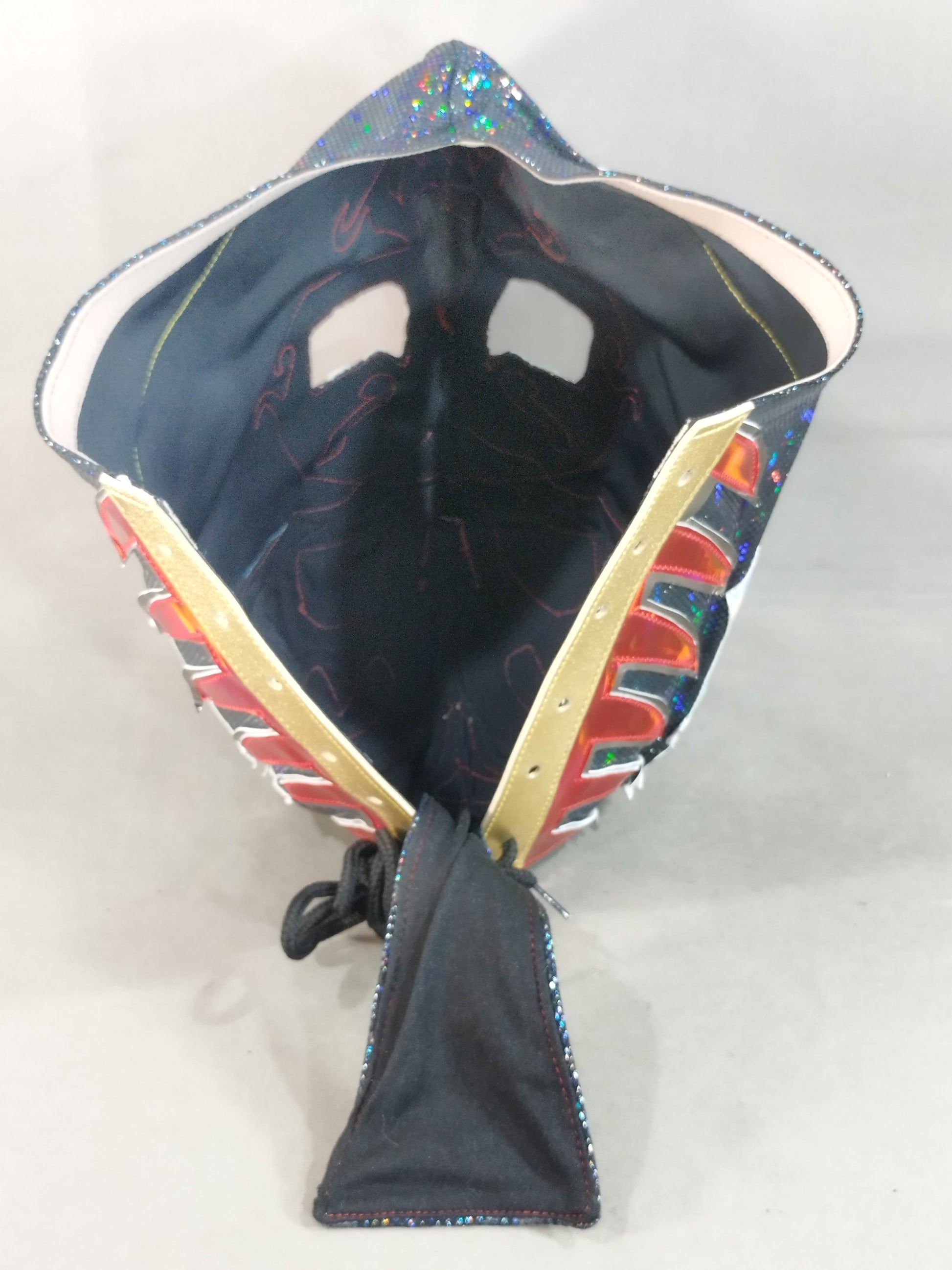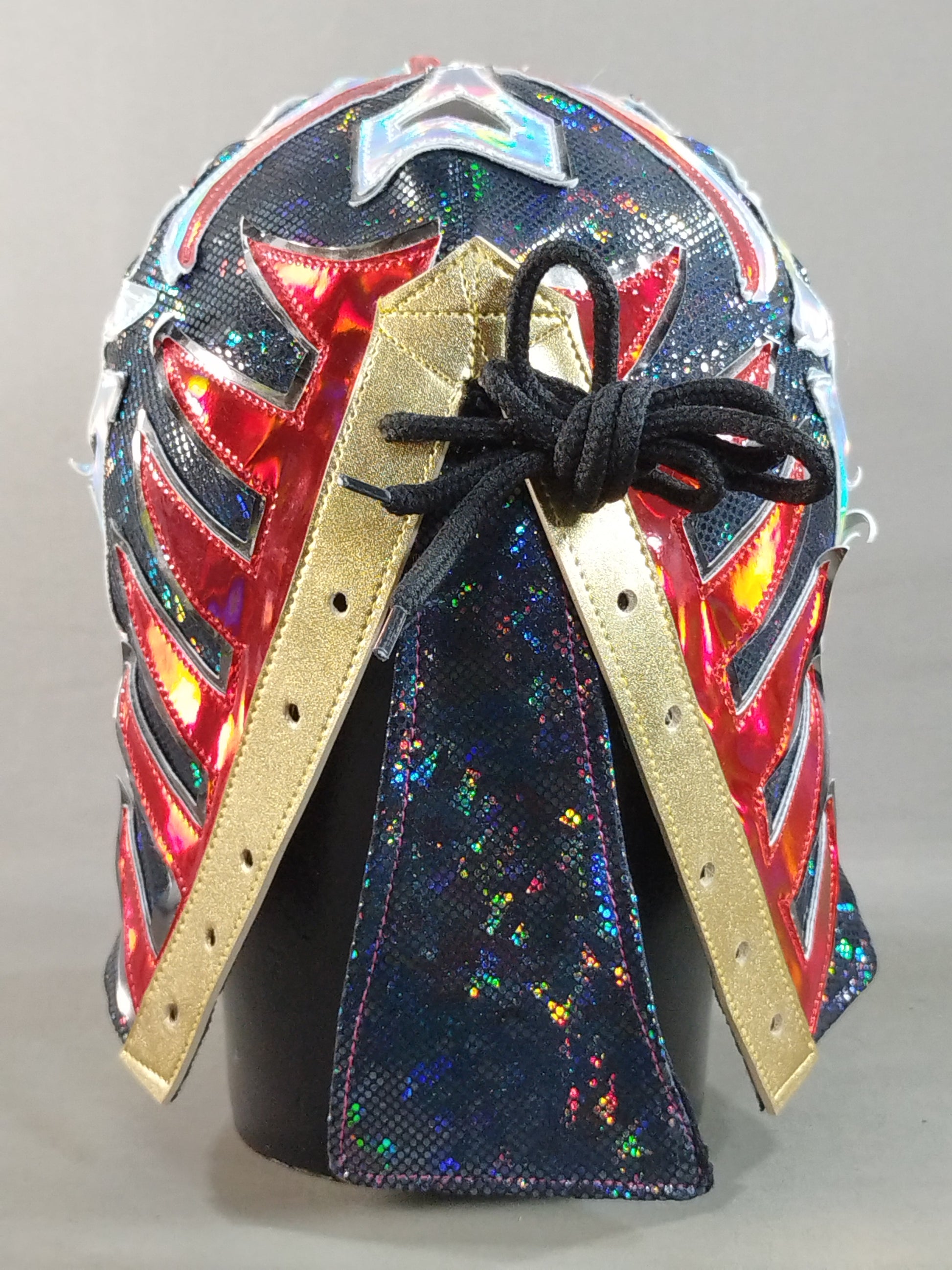 紺特殊レオタード生地 銀メタリックフチ&赤メタリックフチ