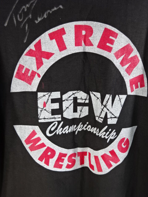 【トミー・ドリーマー 直筆サイン入り】ECW ロゴ Tシャツ⑥(ブラック)