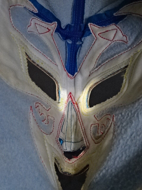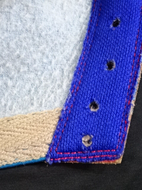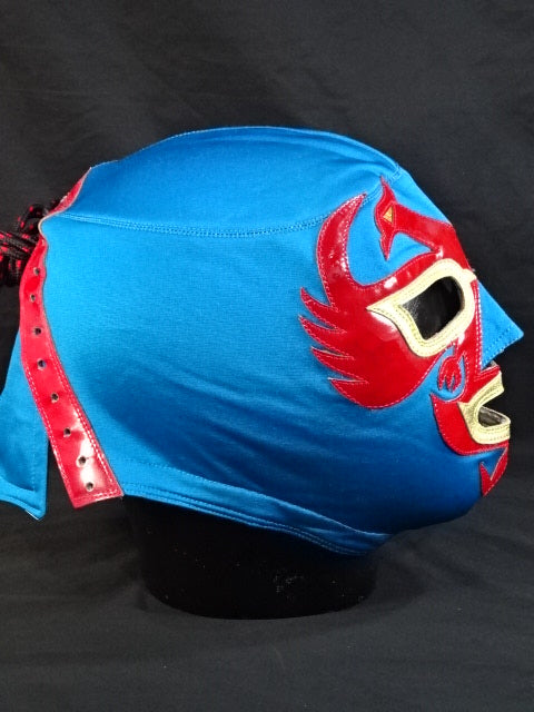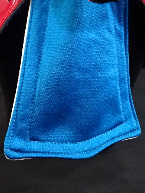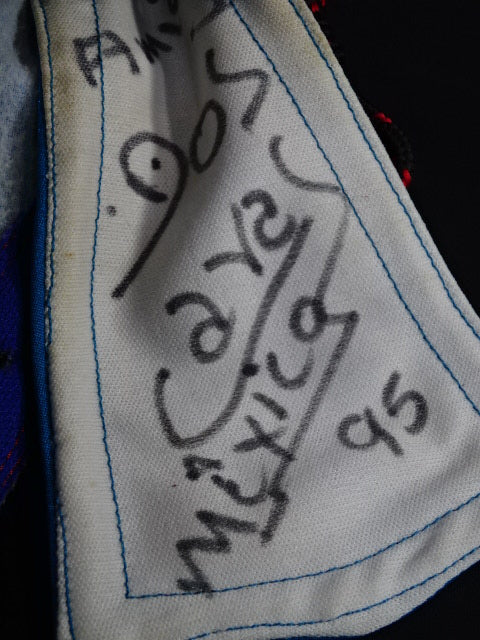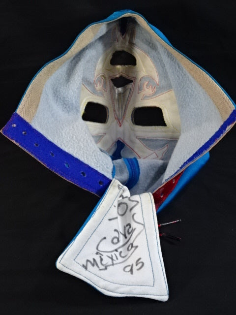 ★ビンテージ年代物マスク★ サイン入り(95) 青スポル生地 赤革地金革フチ