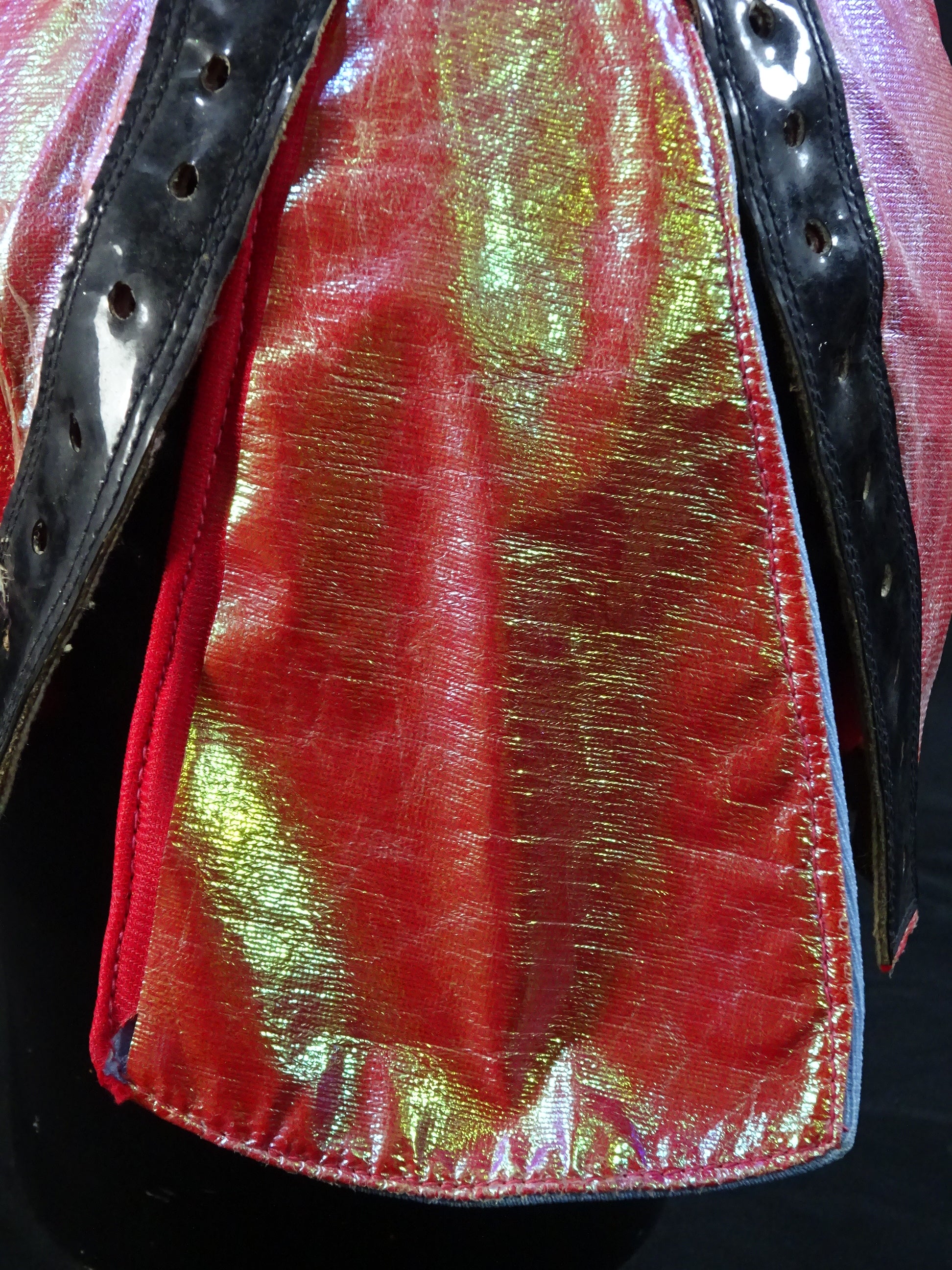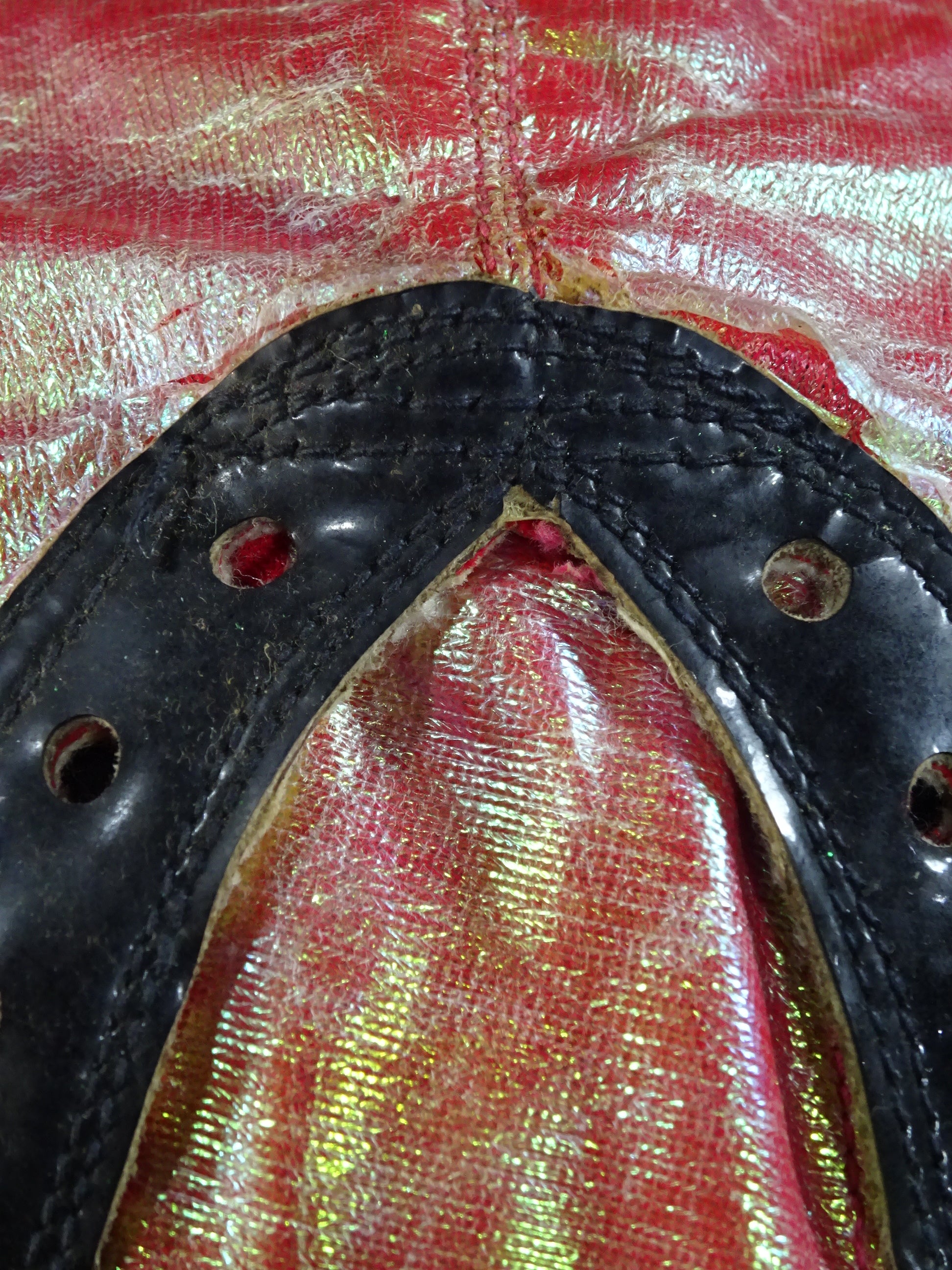 ★80年代当時モノ★ レインボー玉虫シルク生地 黒革地黄緑革フチ