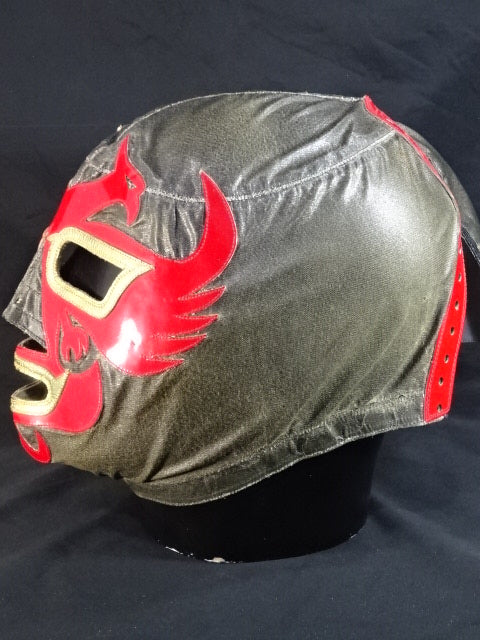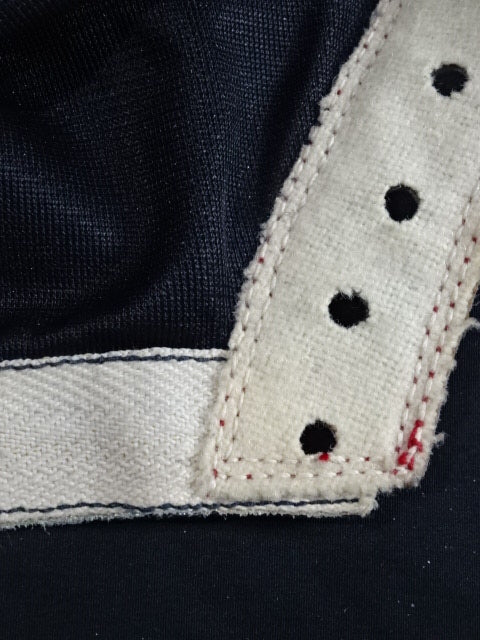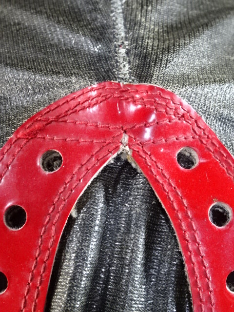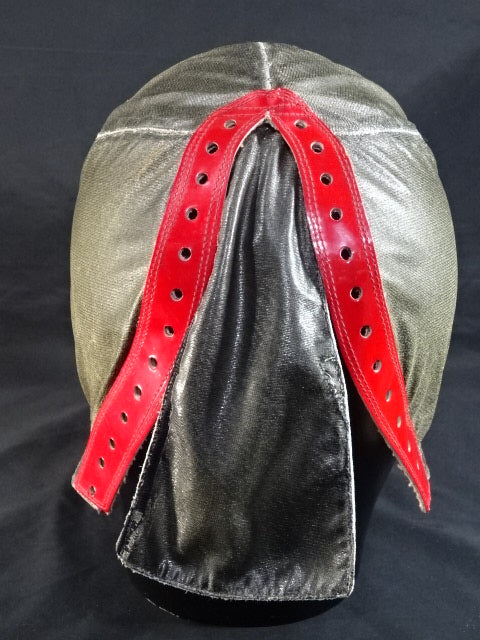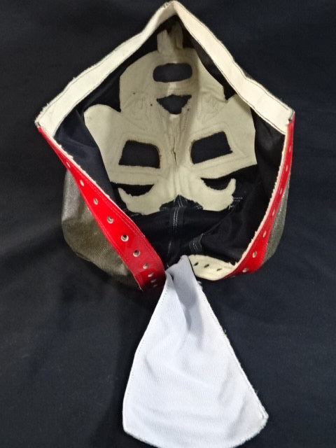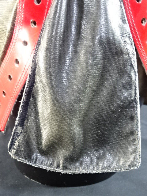 ★80年代当時モノ★ 濃茶色シルク生地 赤革フチ&金革フチ 上下に黒糸ステッチが入った喉テープ 1983年頃にアレハンドロ・ロドリゲス氏が製作