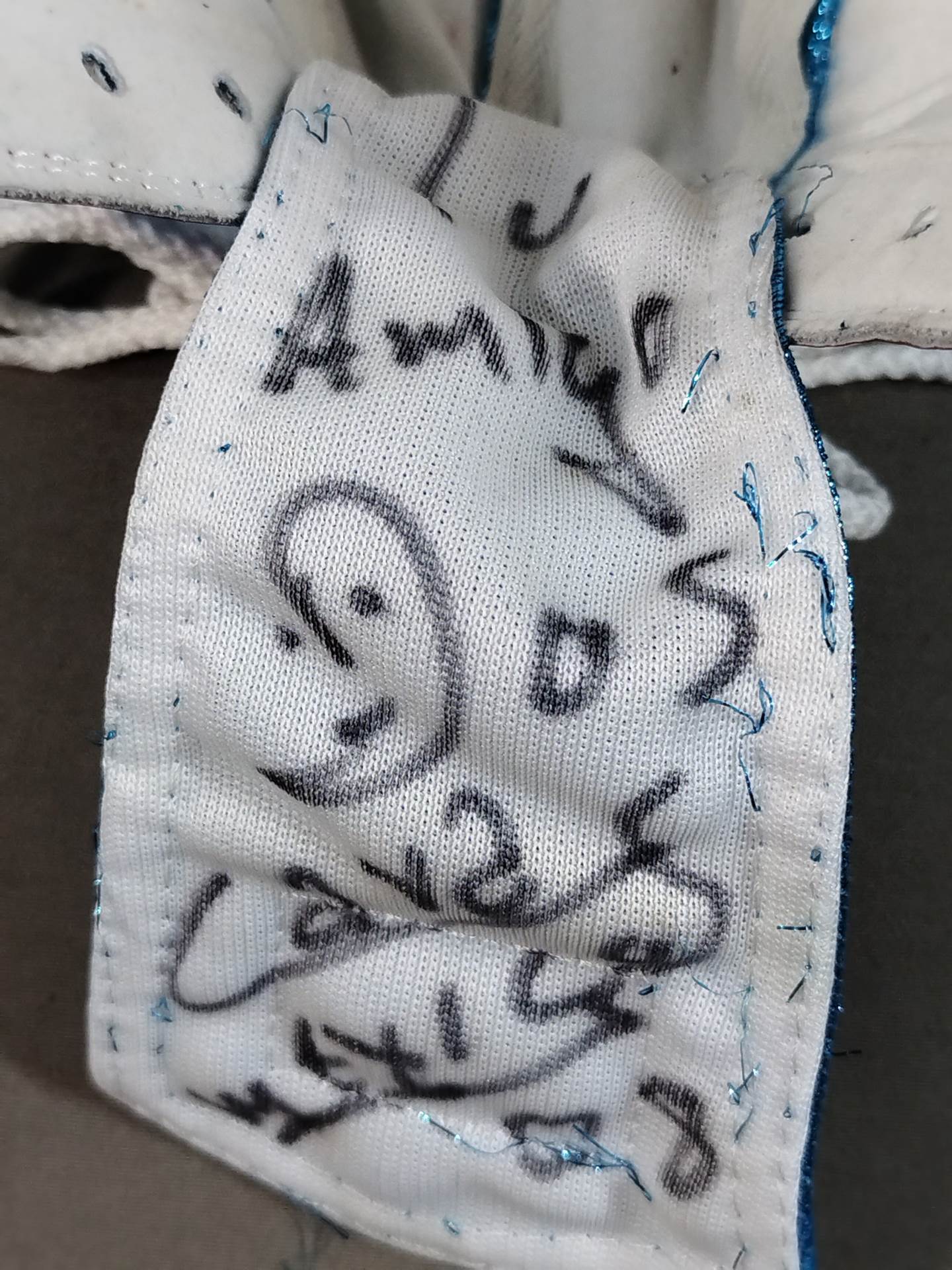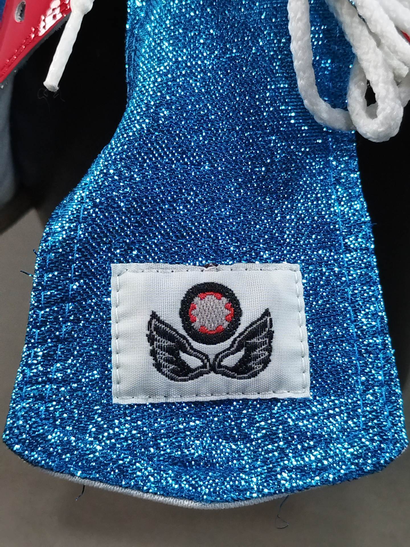 サイン入り(08) 水色ラメ2重生地 赤革地金革フチ